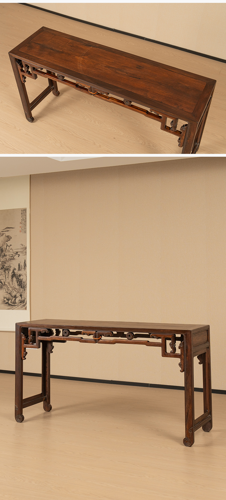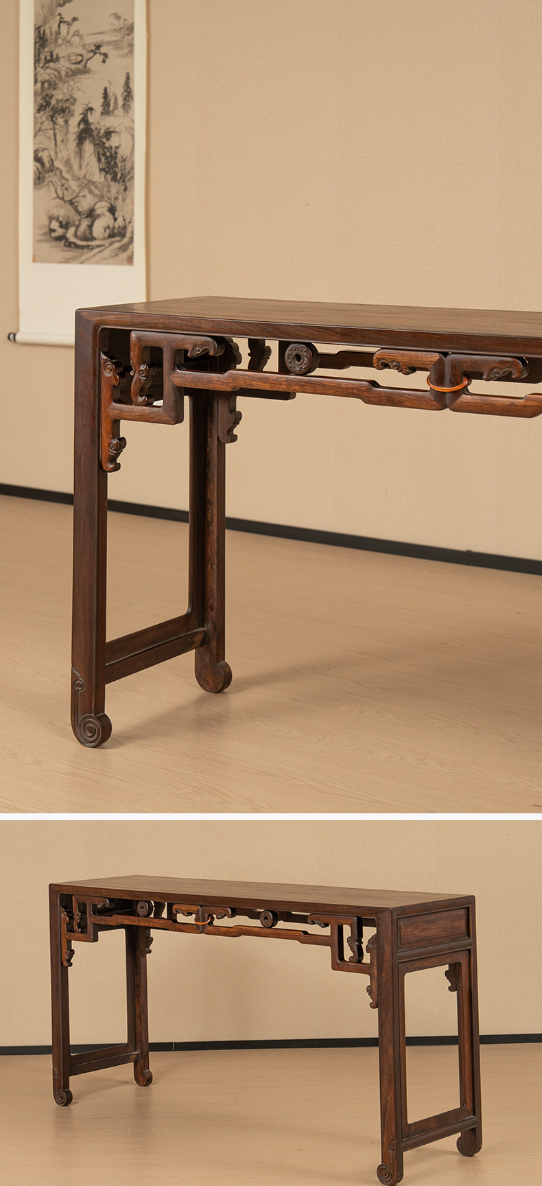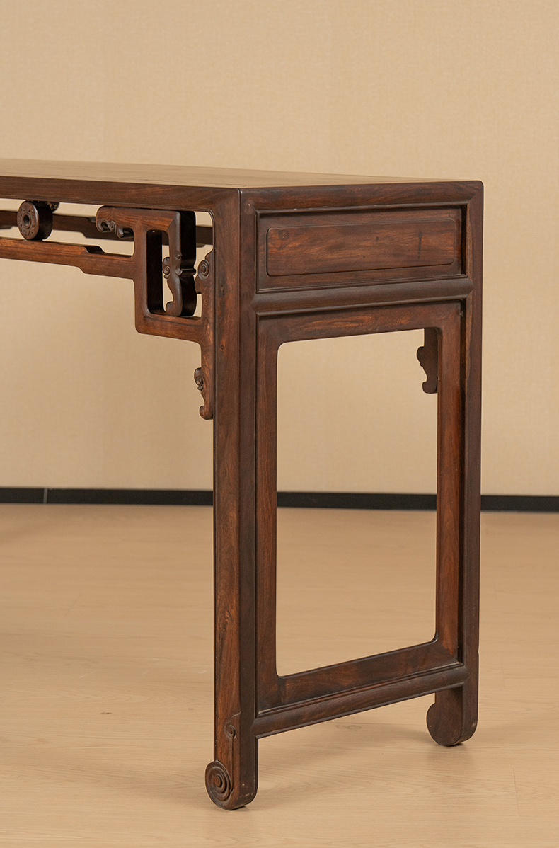 清 黄花梨束腰马蹄腿螭龙纹画桌