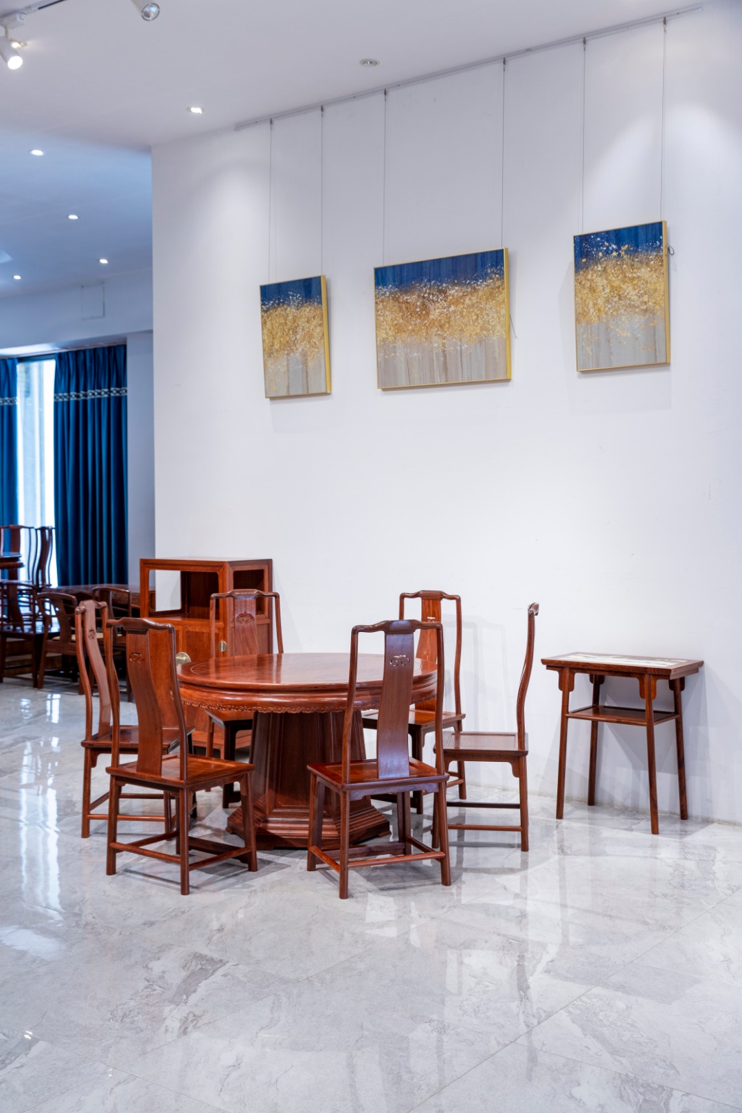 中国自古就有天圆地方的说法,圆形能聚集人气,一家人围坐在一起,显得亲密无间,圆餐桌也象征着圆满祥和团结,团团圆圆,加之座位之间临近,让人感觉亲切、温馨。