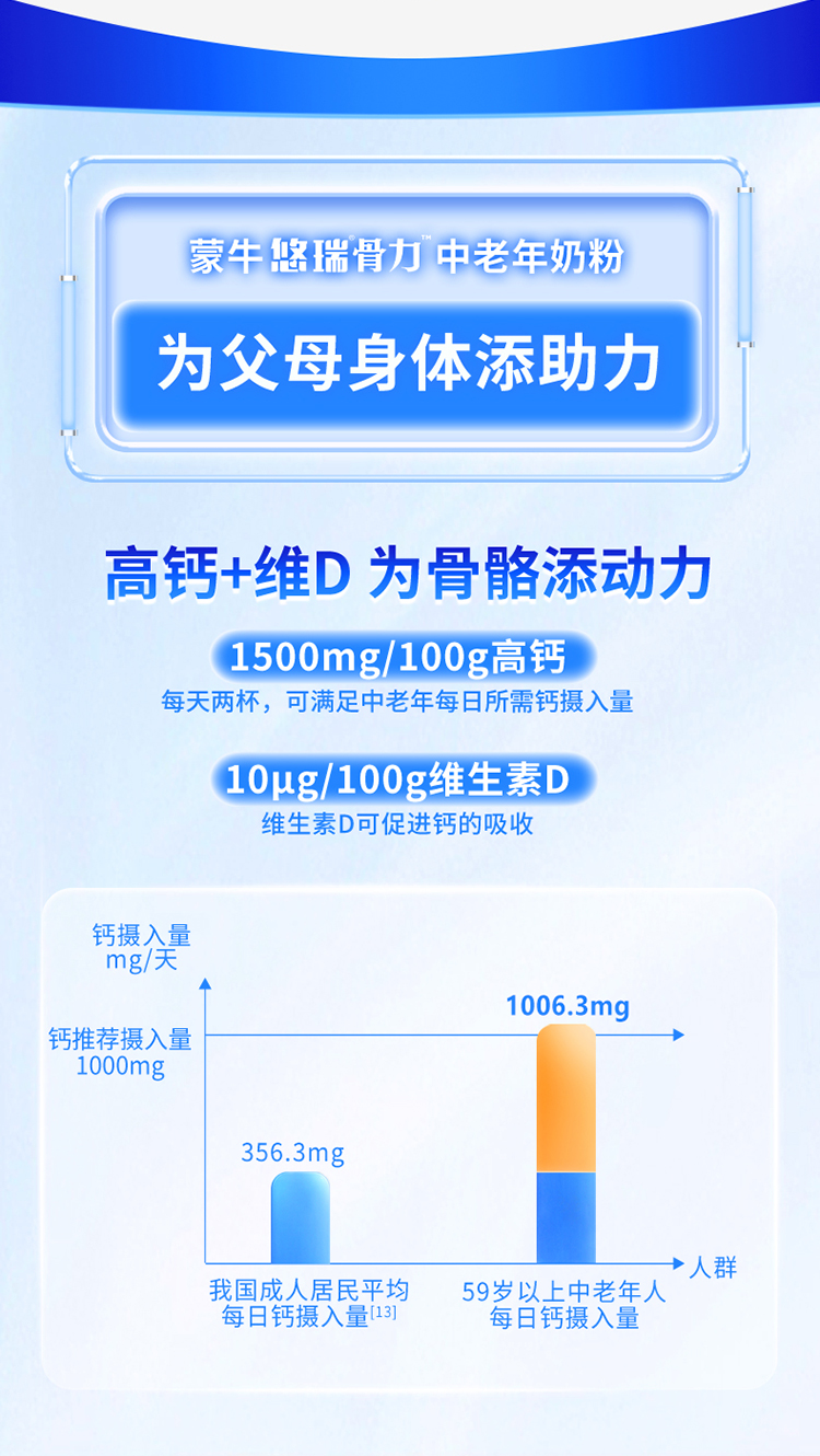 【全员营销】蒙牛悠瑞骨力中老年高钙营养奶粉800g*2罐(礼盒装)