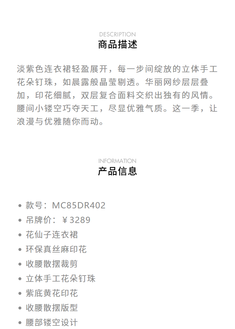 【浪漫度假-商场同款】MAXRIENY花仙子连衣裙仙女氛围感吊带长裙(货号:MC85DR402)