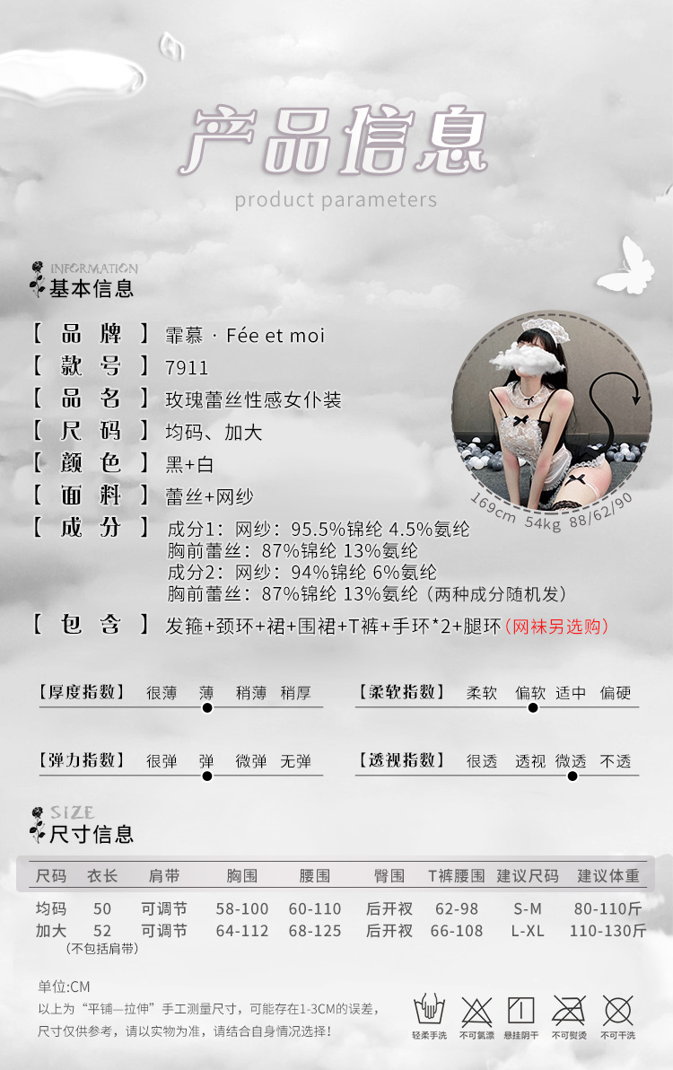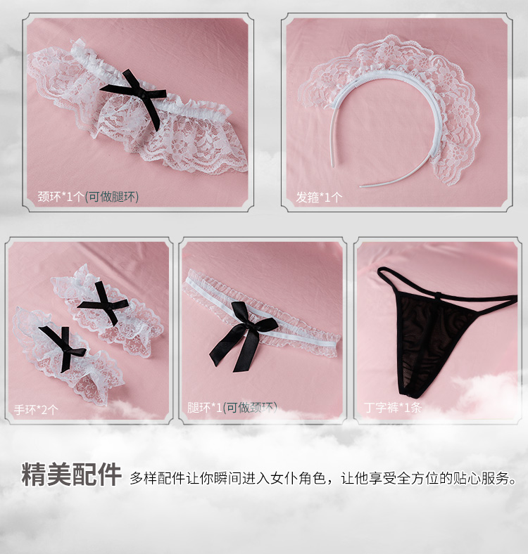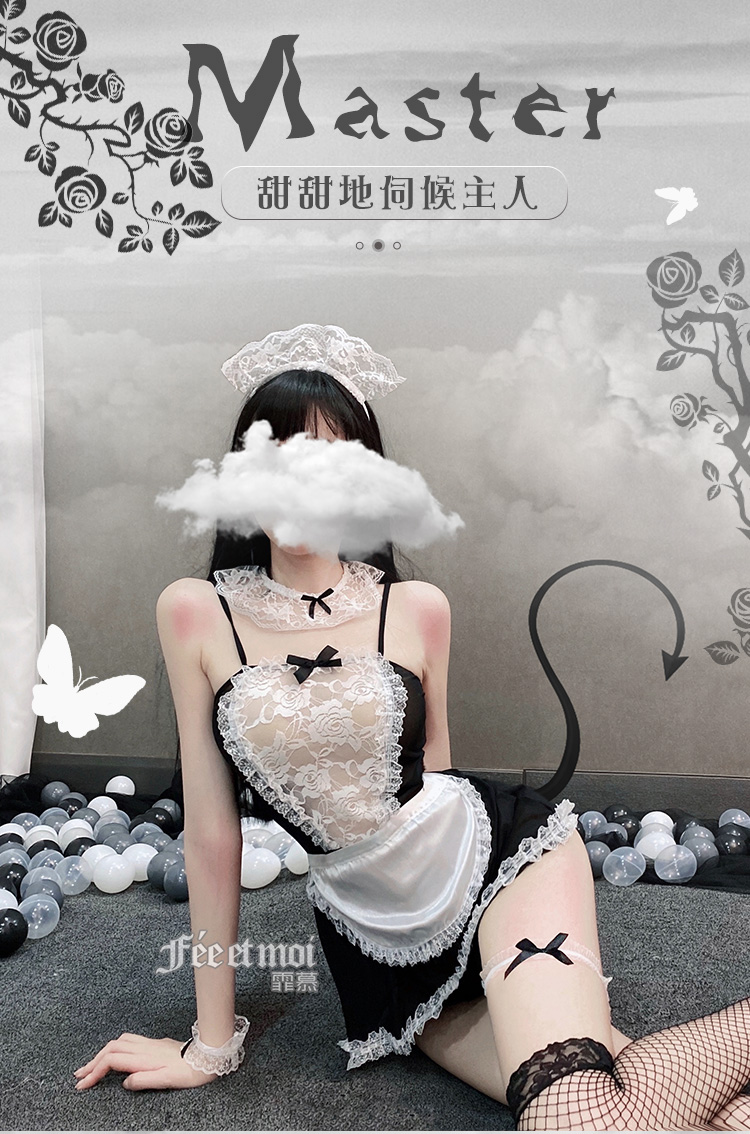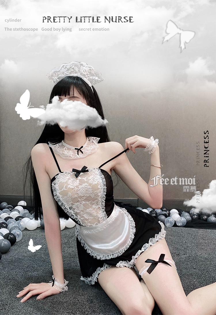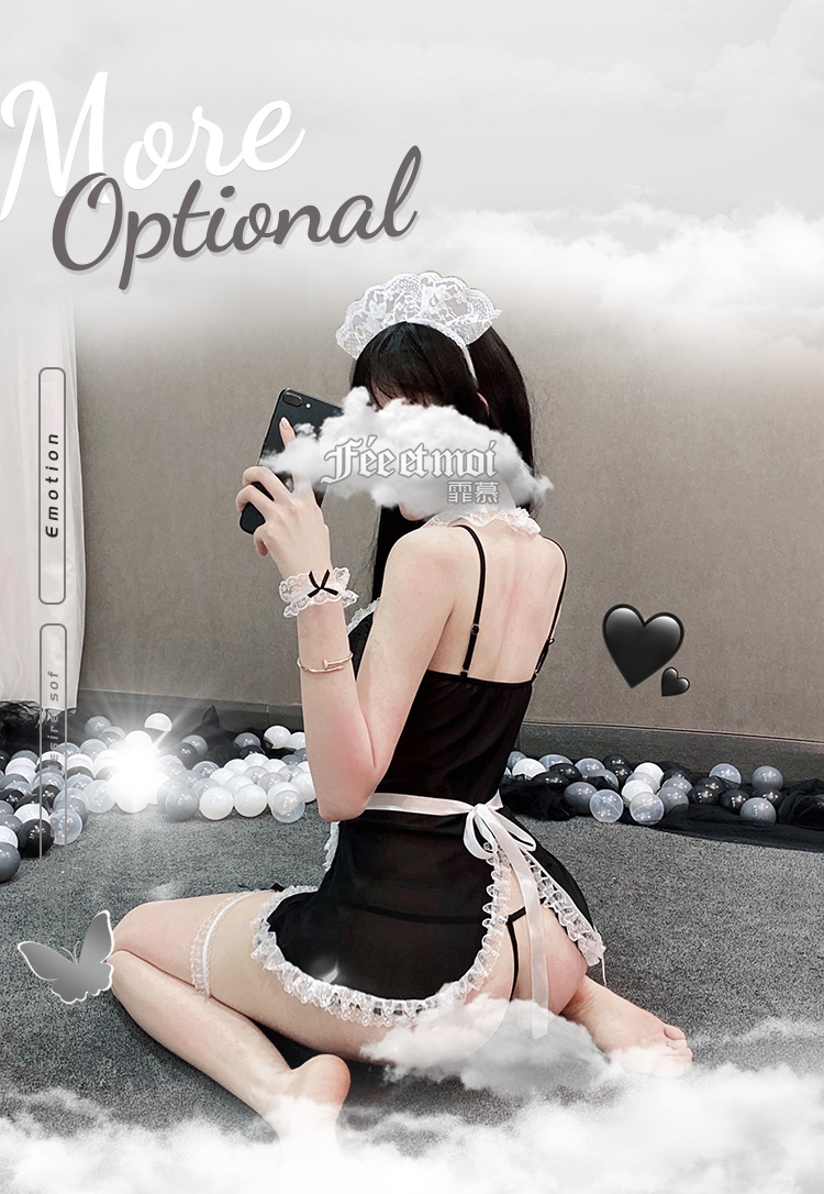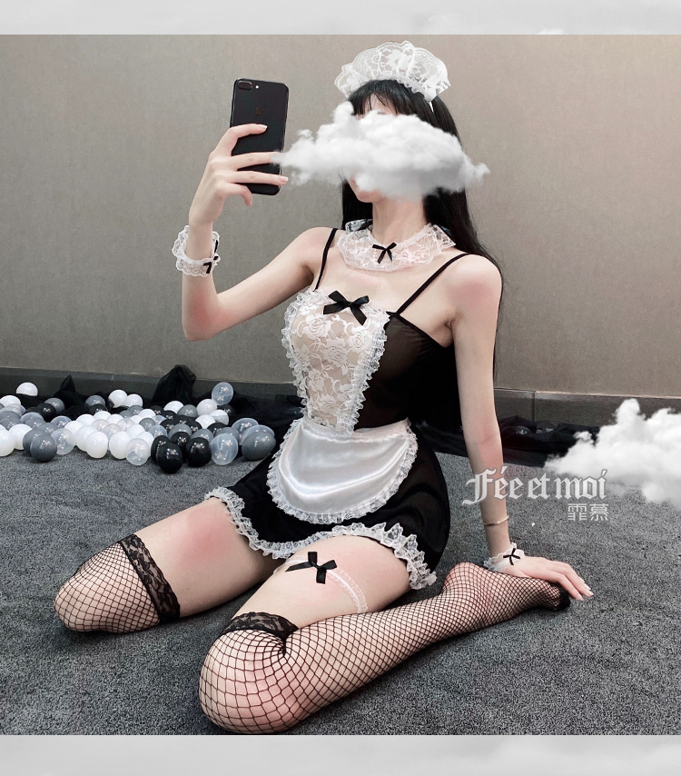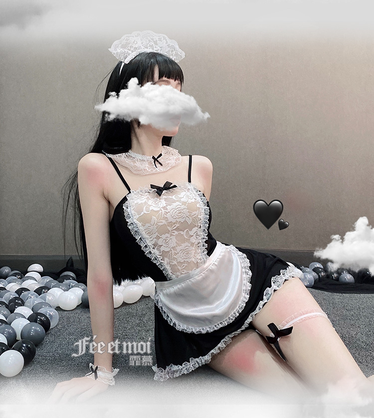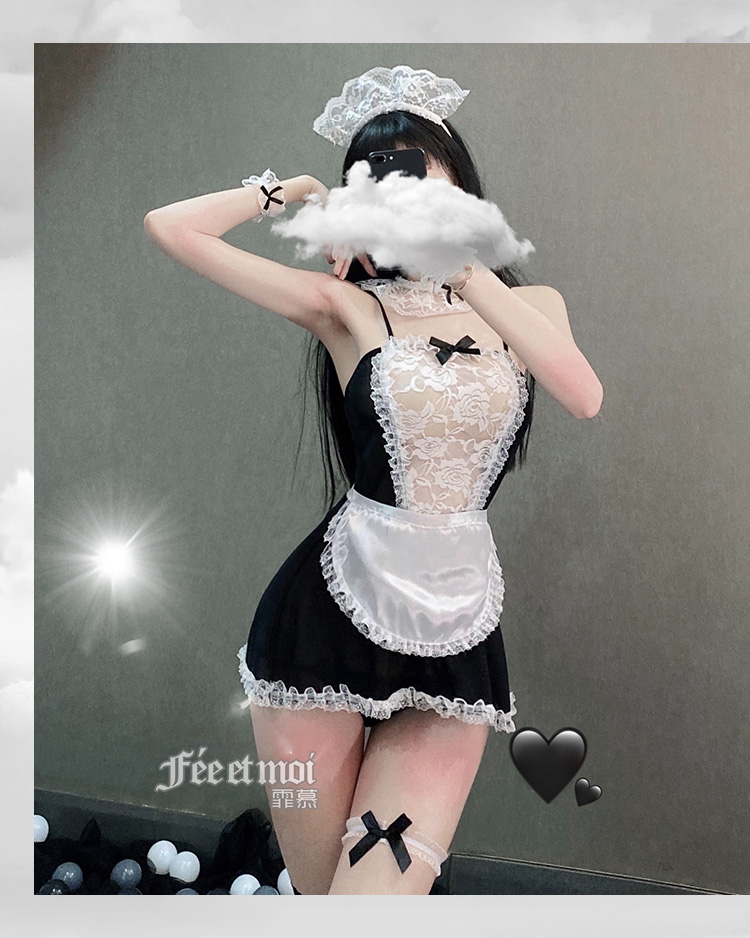 【爆款女佣装】霏慕蕾丝花边软纱女佣装7911黑【全套无丝袜】