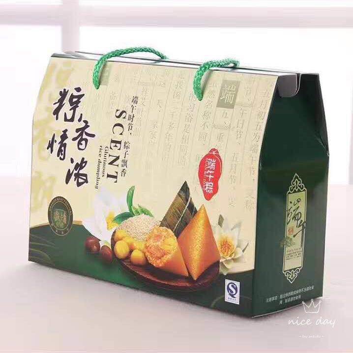 礼盒包含:蛋黄肉粽、鲜肉粽、红豆粽、蜜枣粽、白米粽各2只,咸鸭蛋10只。