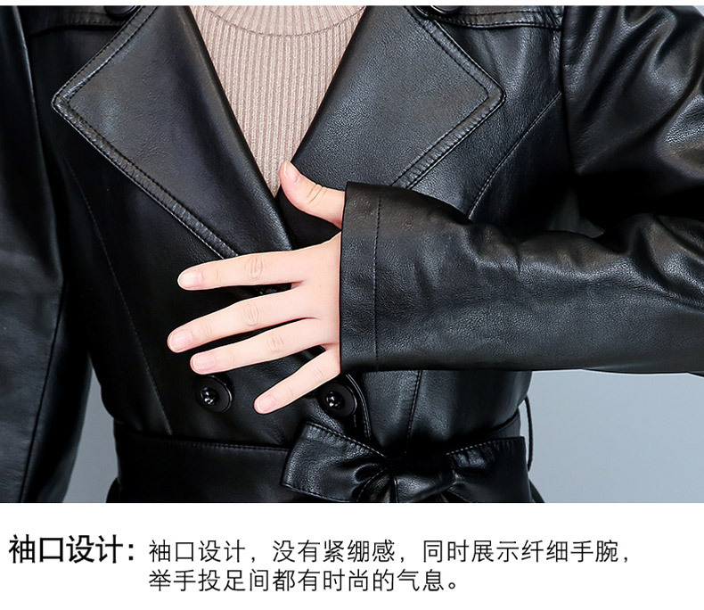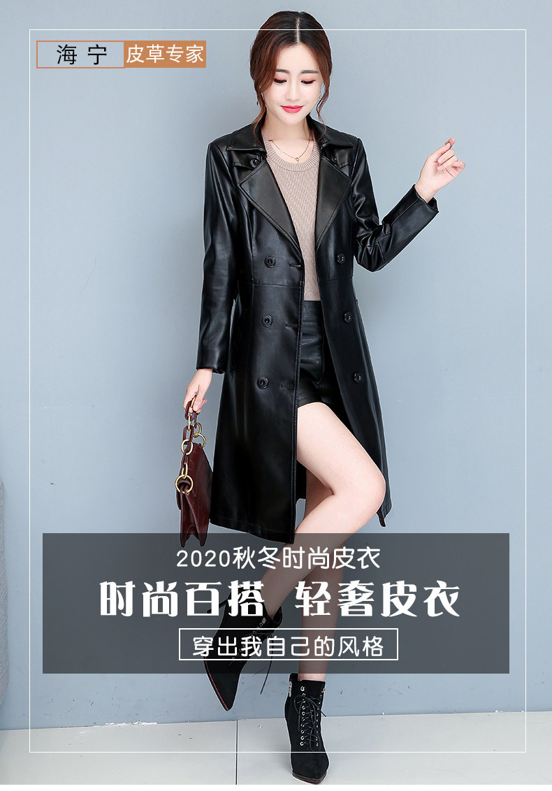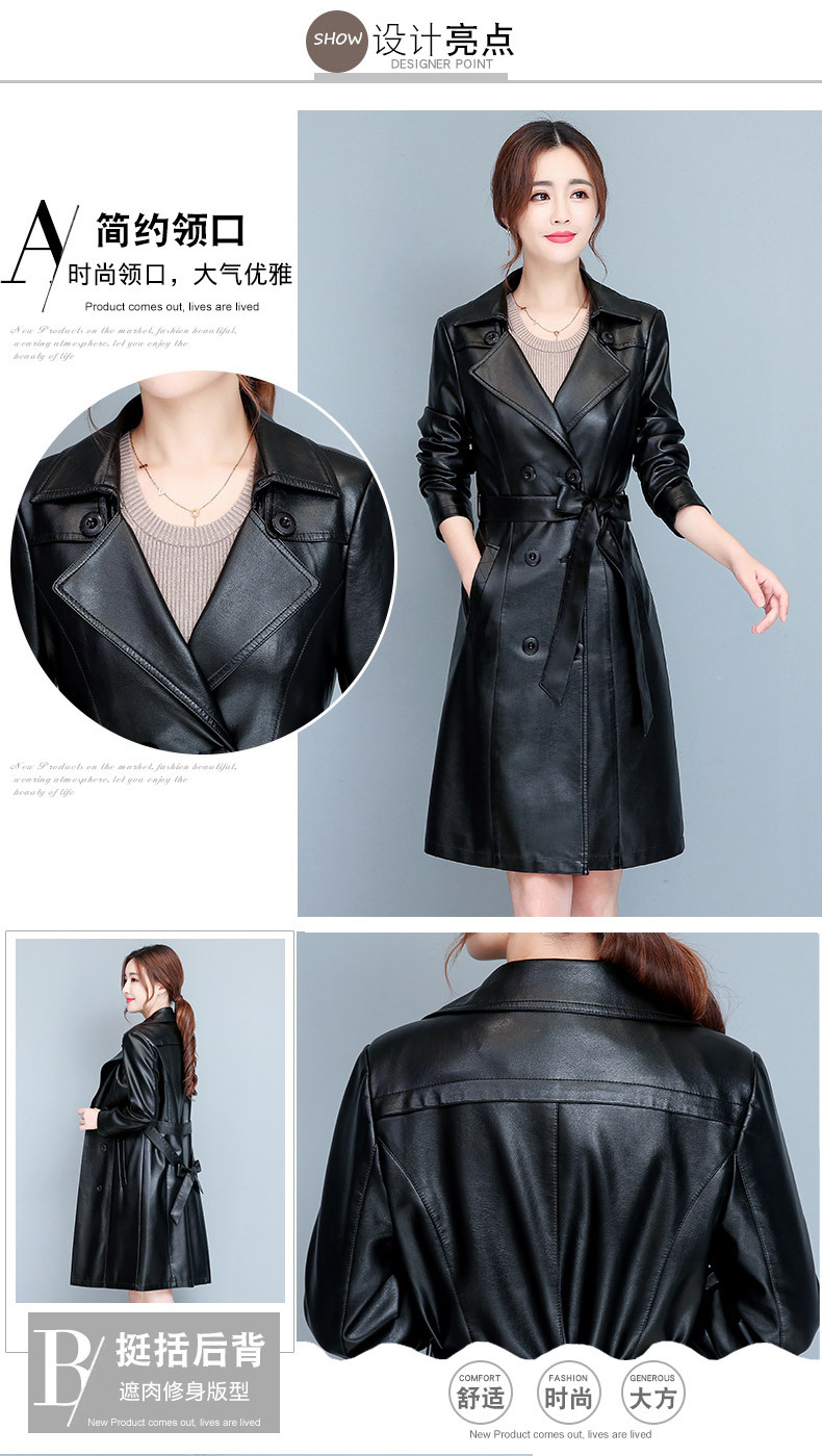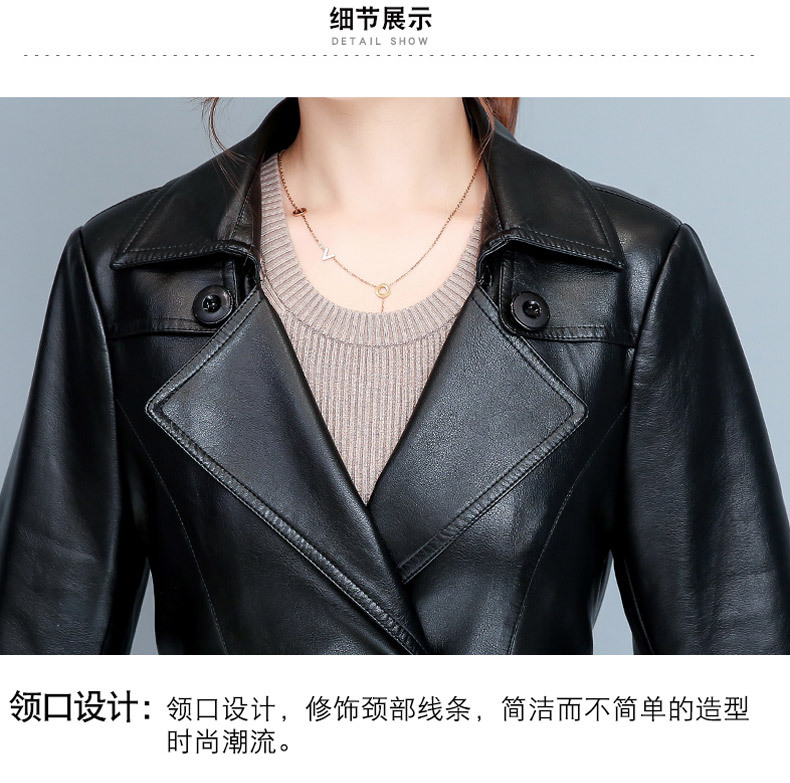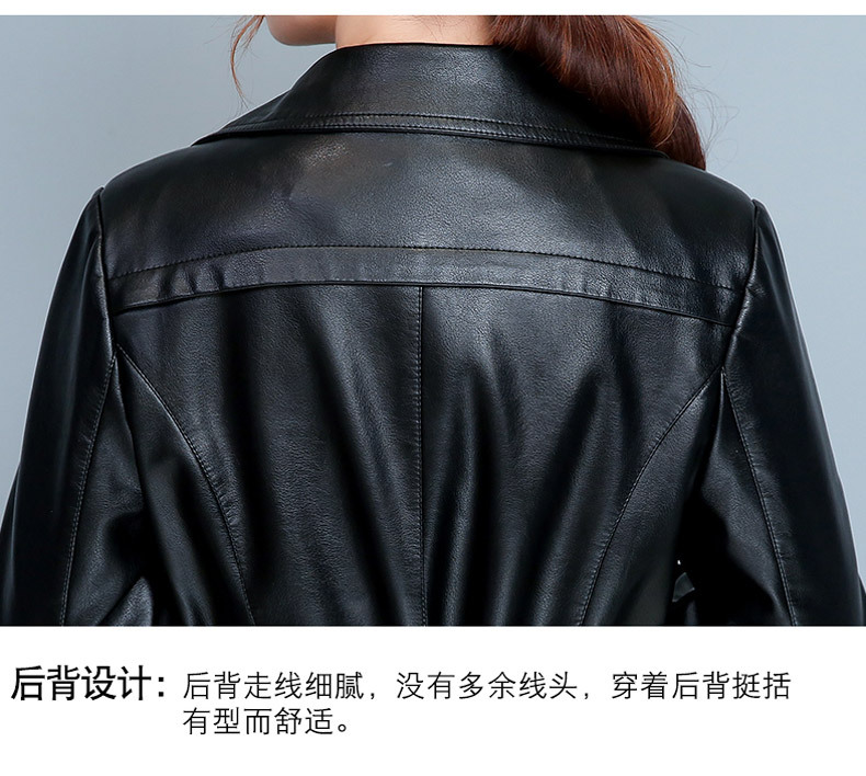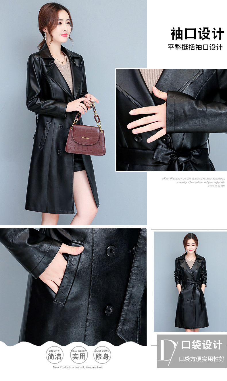 NQS2058新款时尚优雅气质修身中长款皮衣外套