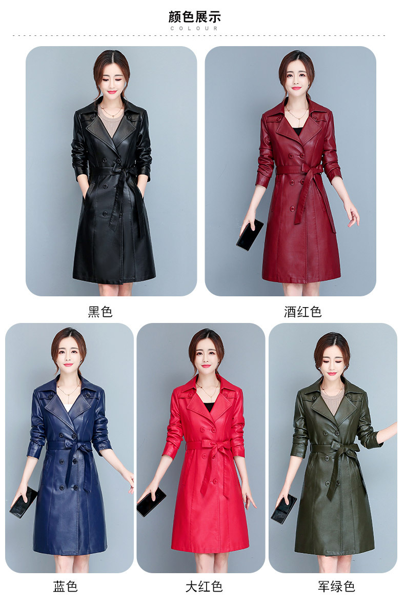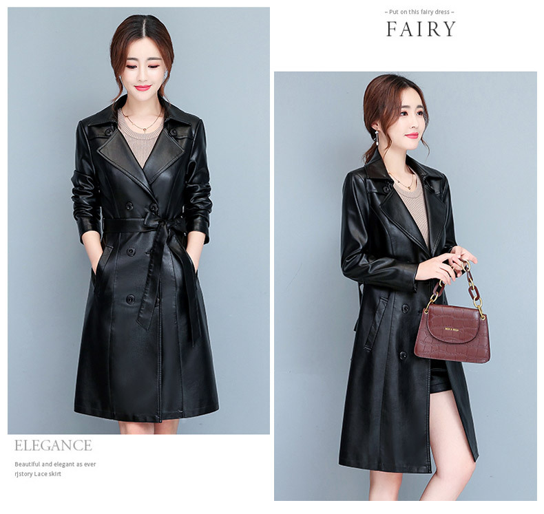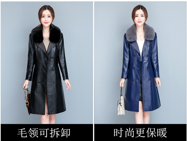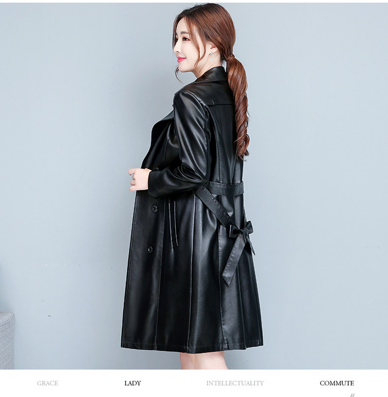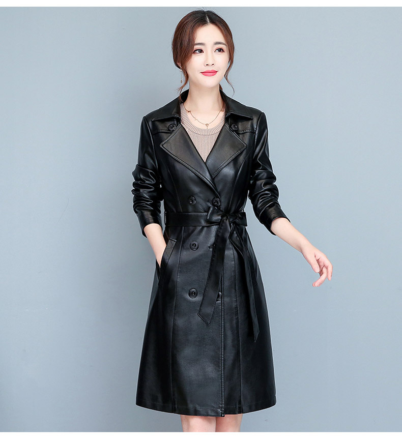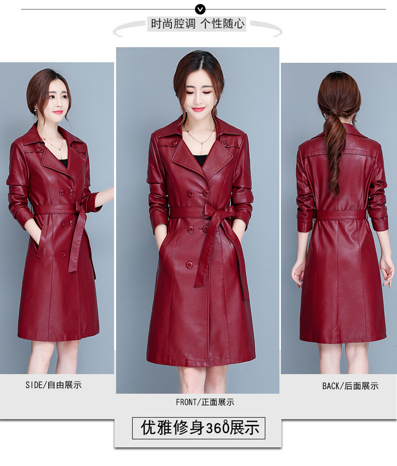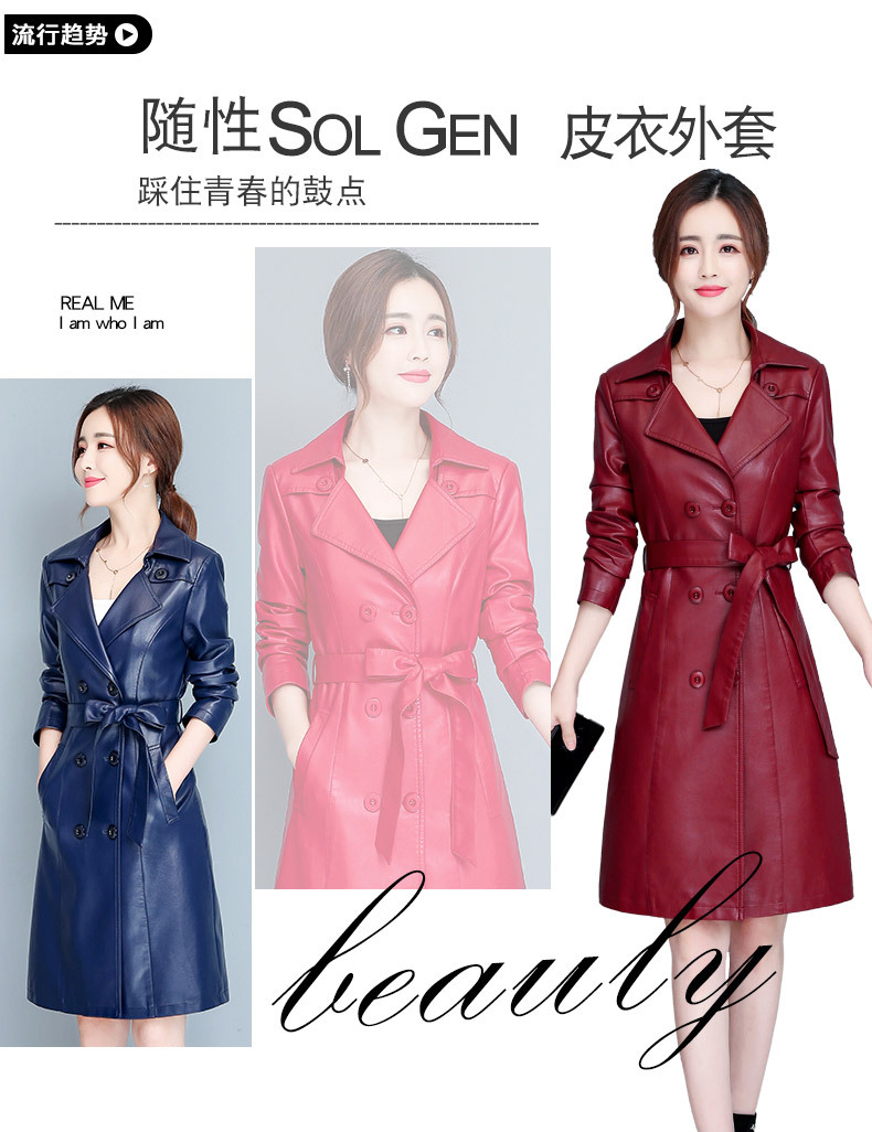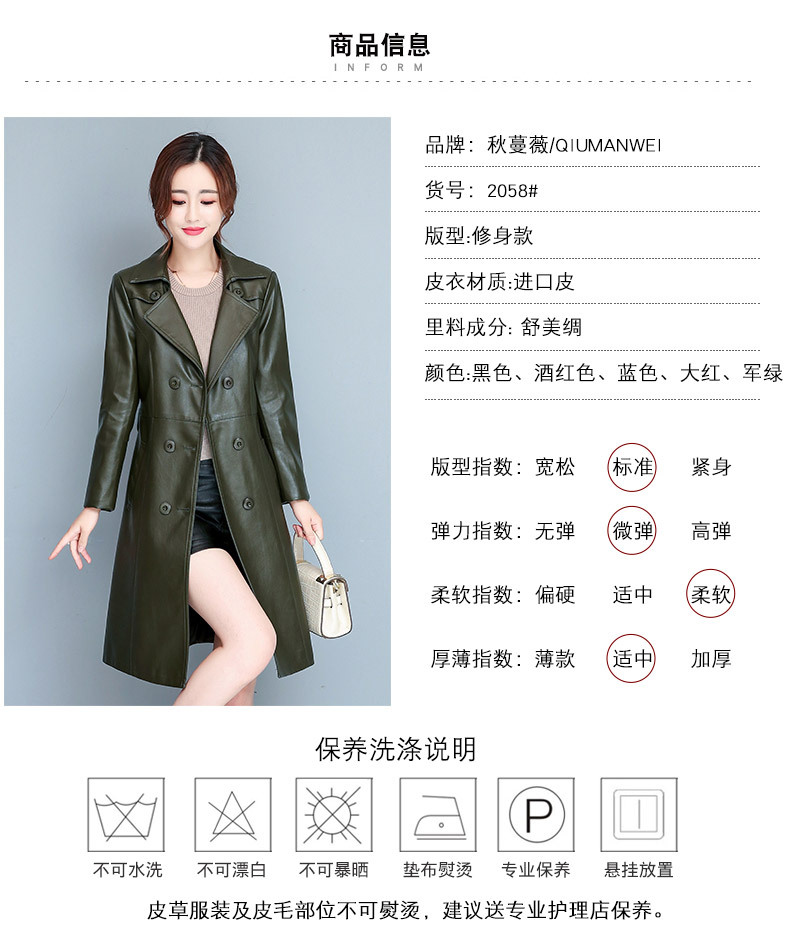 NQS2058新款时尚优雅气质修身中长款皮衣外套