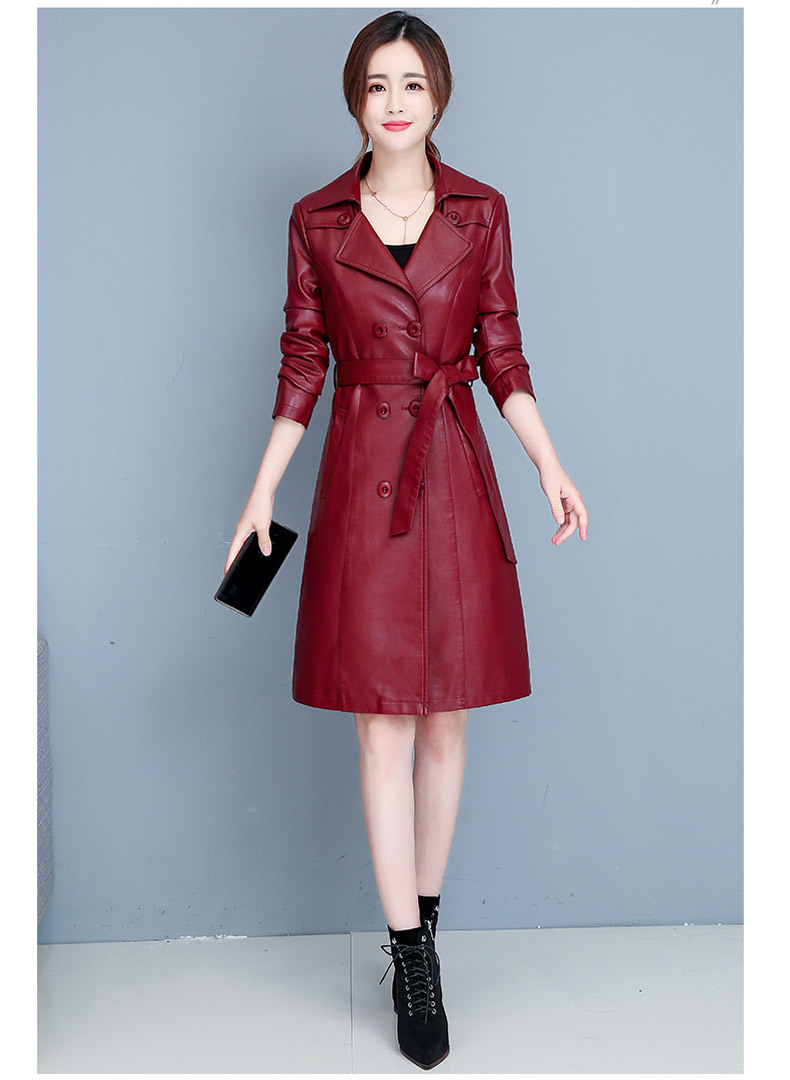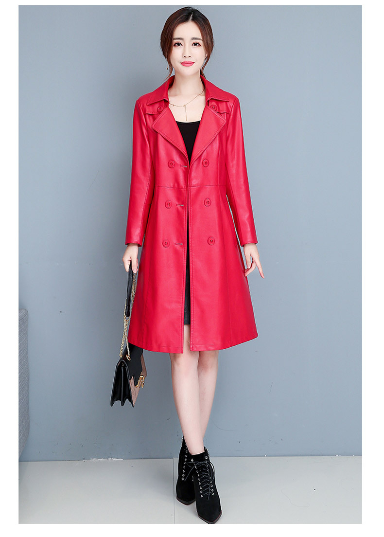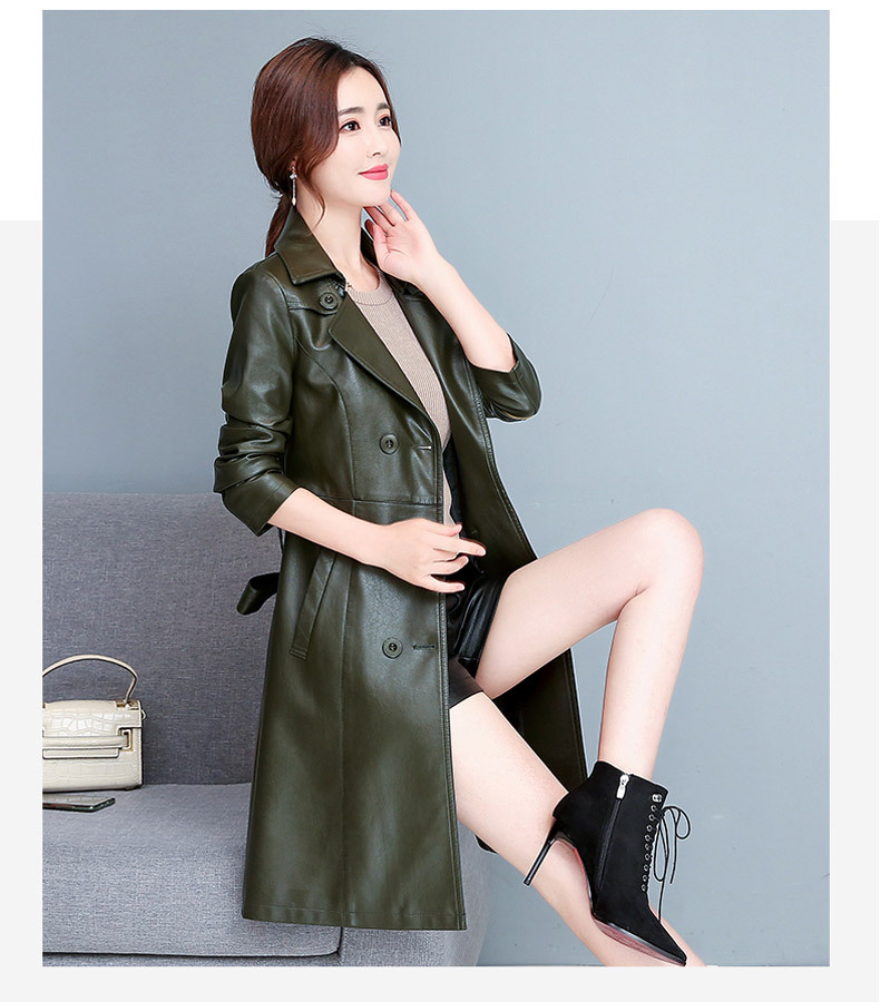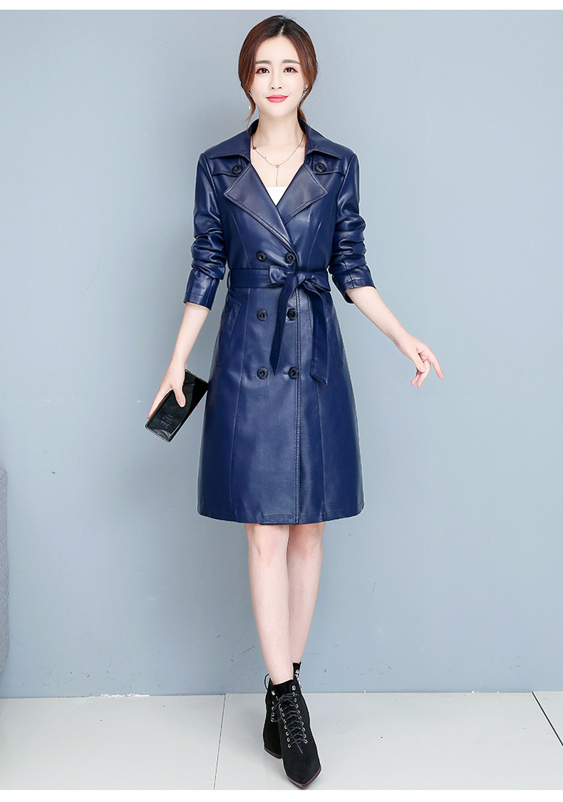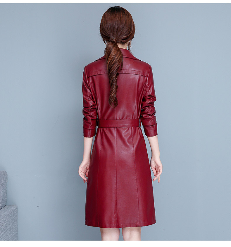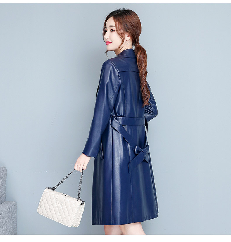 NQS2058新款时尚优雅气质修身中长款皮衣外套