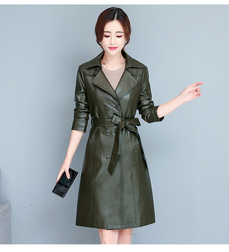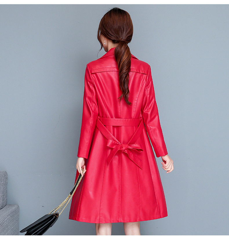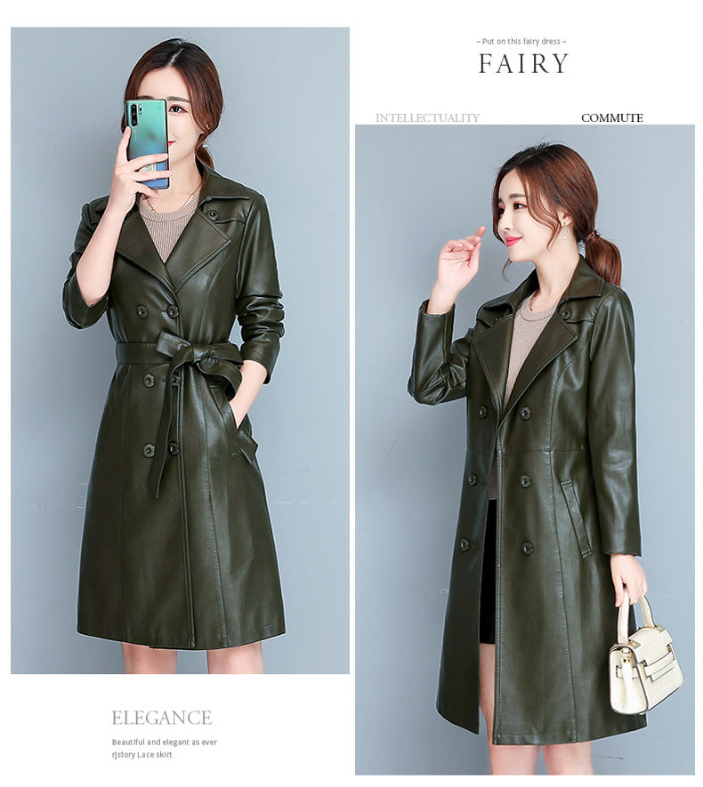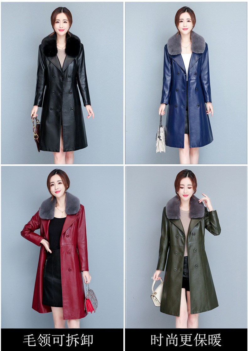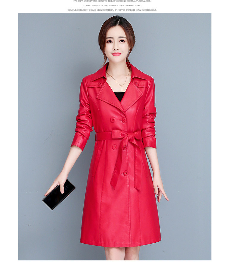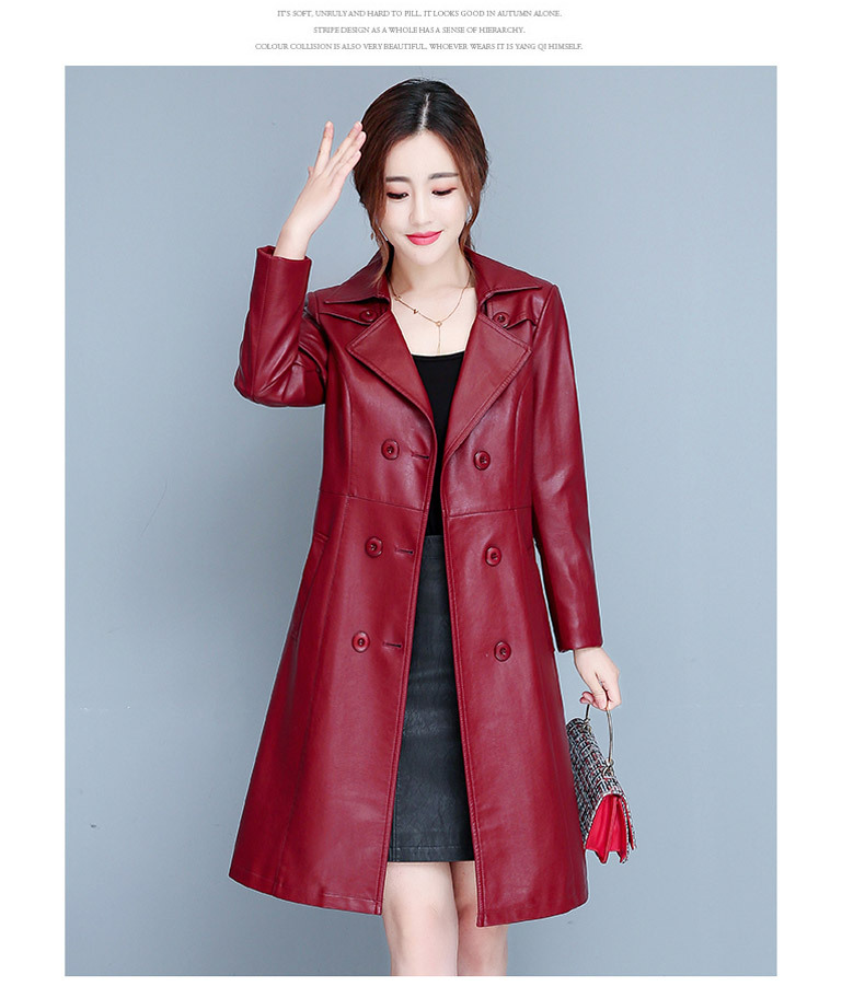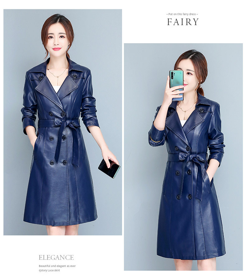 NQS2058新款时尚优雅气质修身中长款皮衣外套