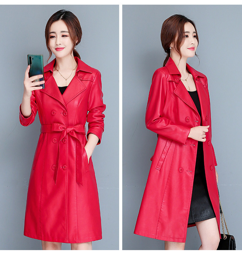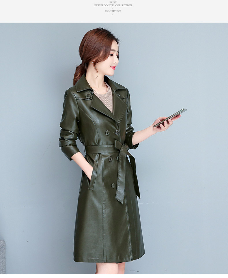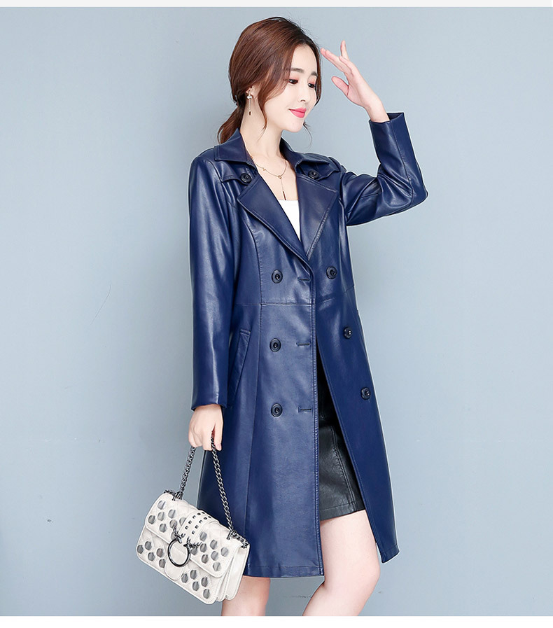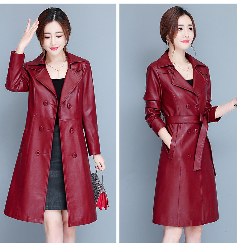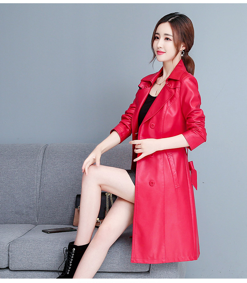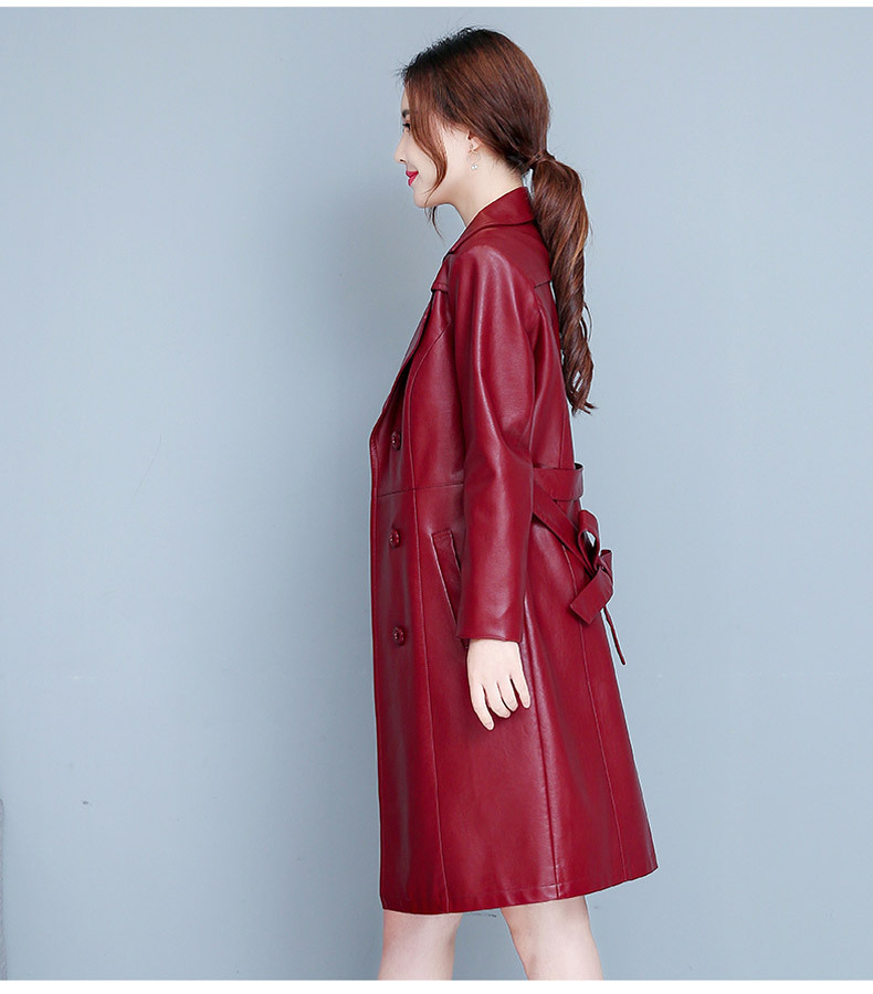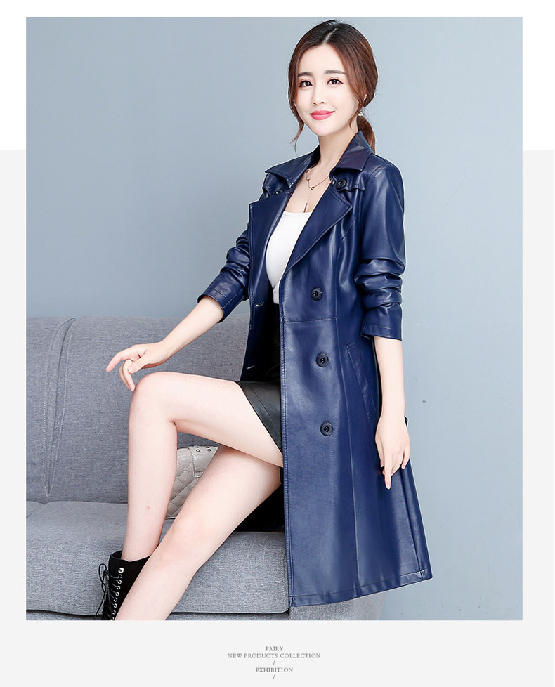 NQS2058新款时尚优雅气质修身中长款皮衣外套