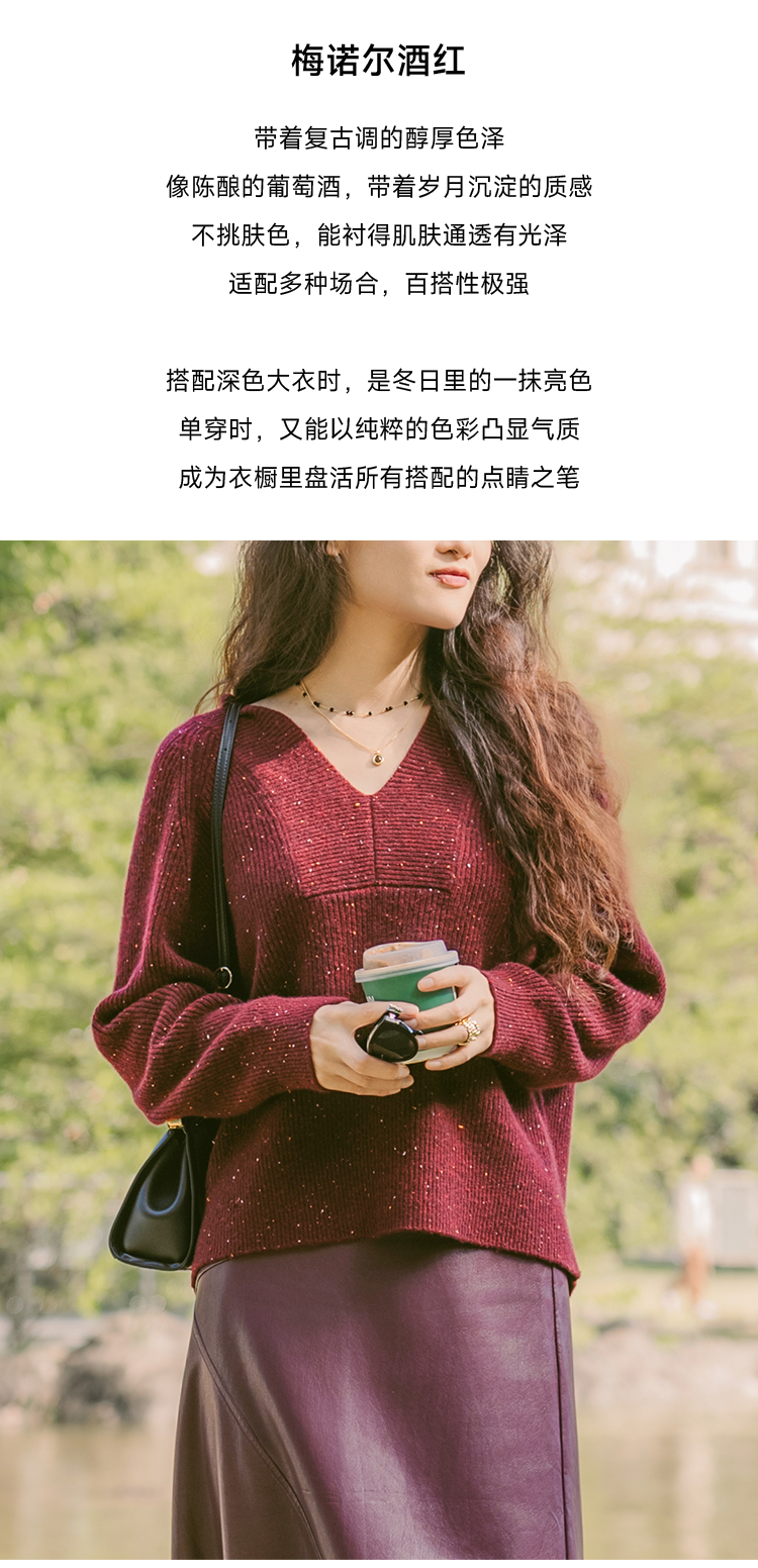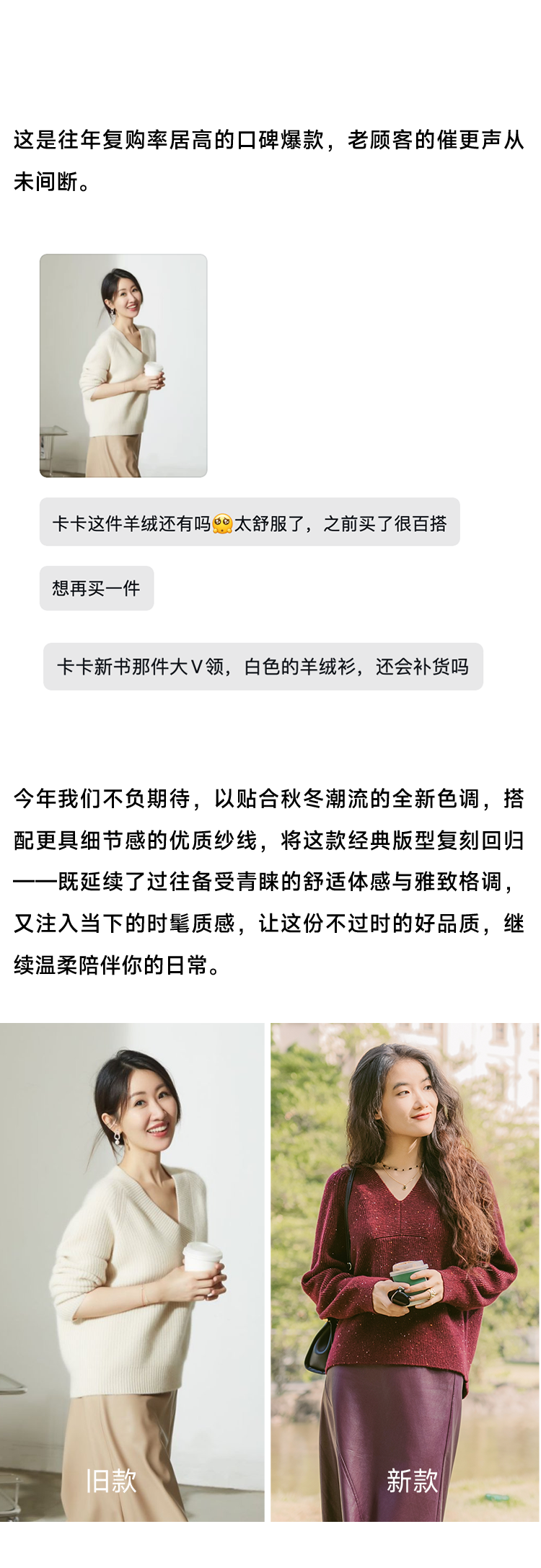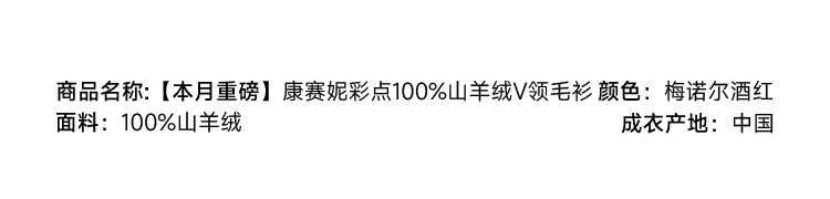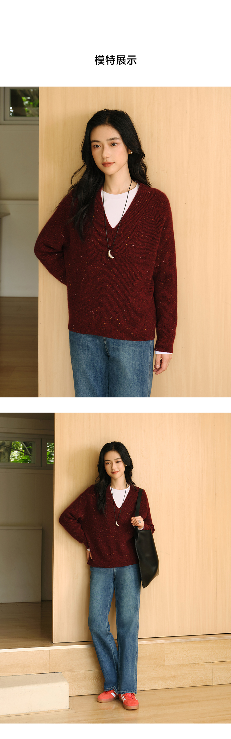 【本月重磅】康赛妮彩点100%山羊绒V领毛衫FCF3CST004