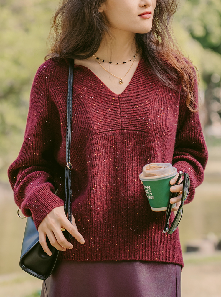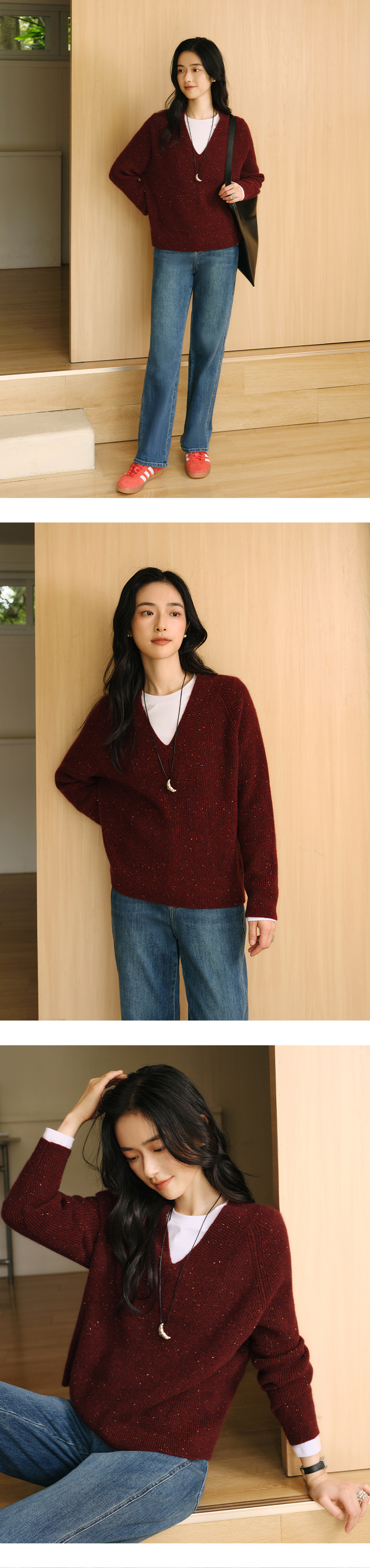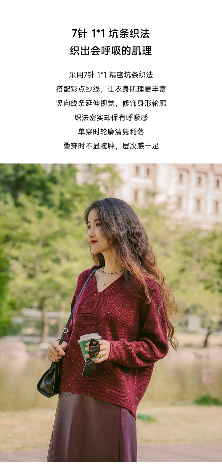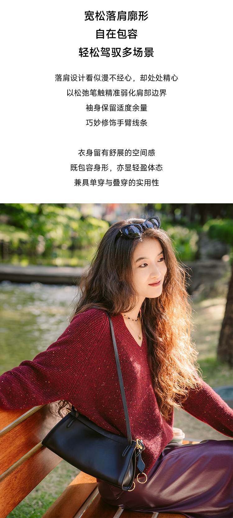 【本月重磅】康赛妮彩点100%山羊绒V领毛衫FCF3CST004