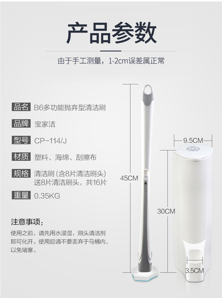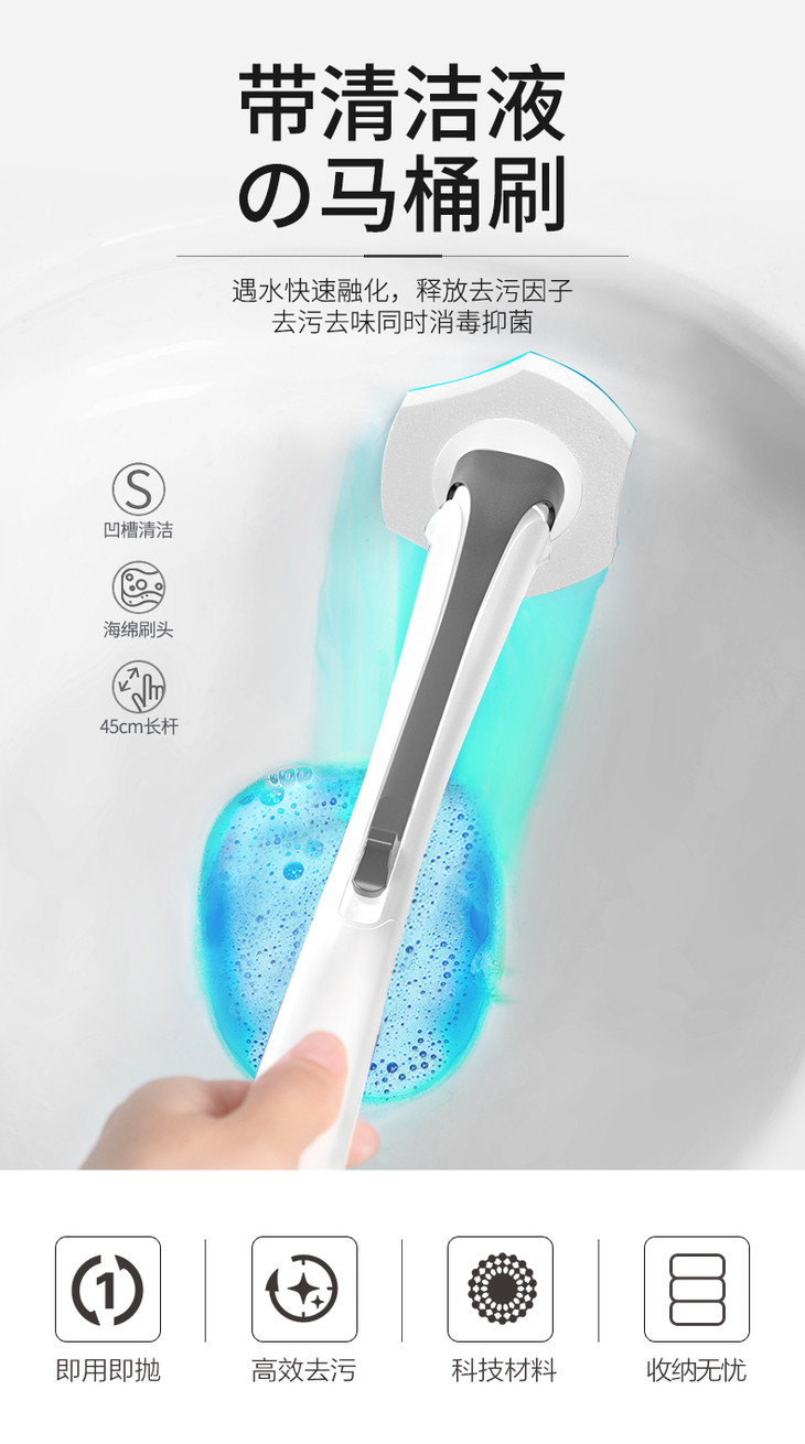 宝家洁一次性多功能马桶刷 | 即用即抛、干净又方便、自带清洁液、去残污还抑菌