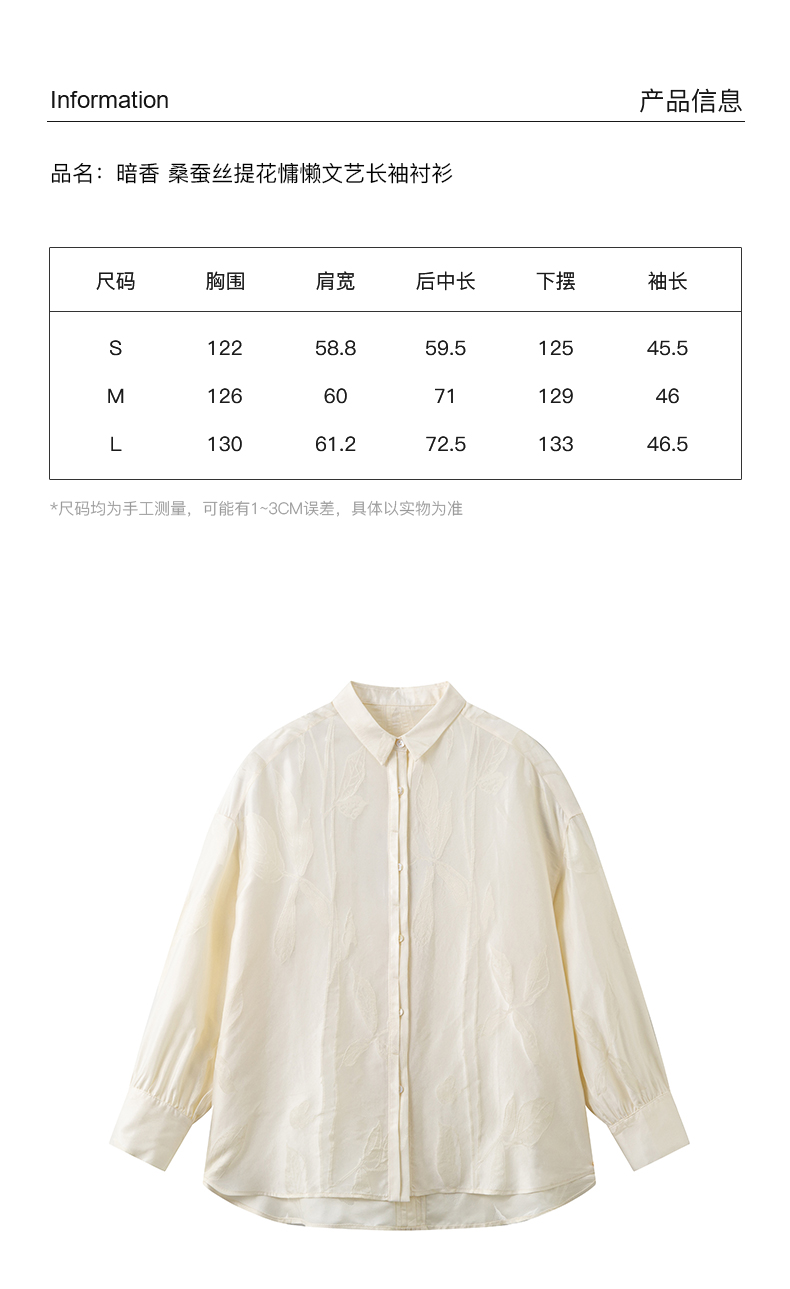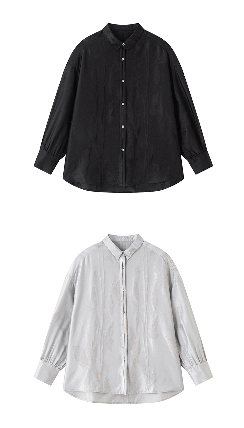 璞宿PUSU 暗香 桑蚕丝提花慵懒文艺长袖衬衫 55196