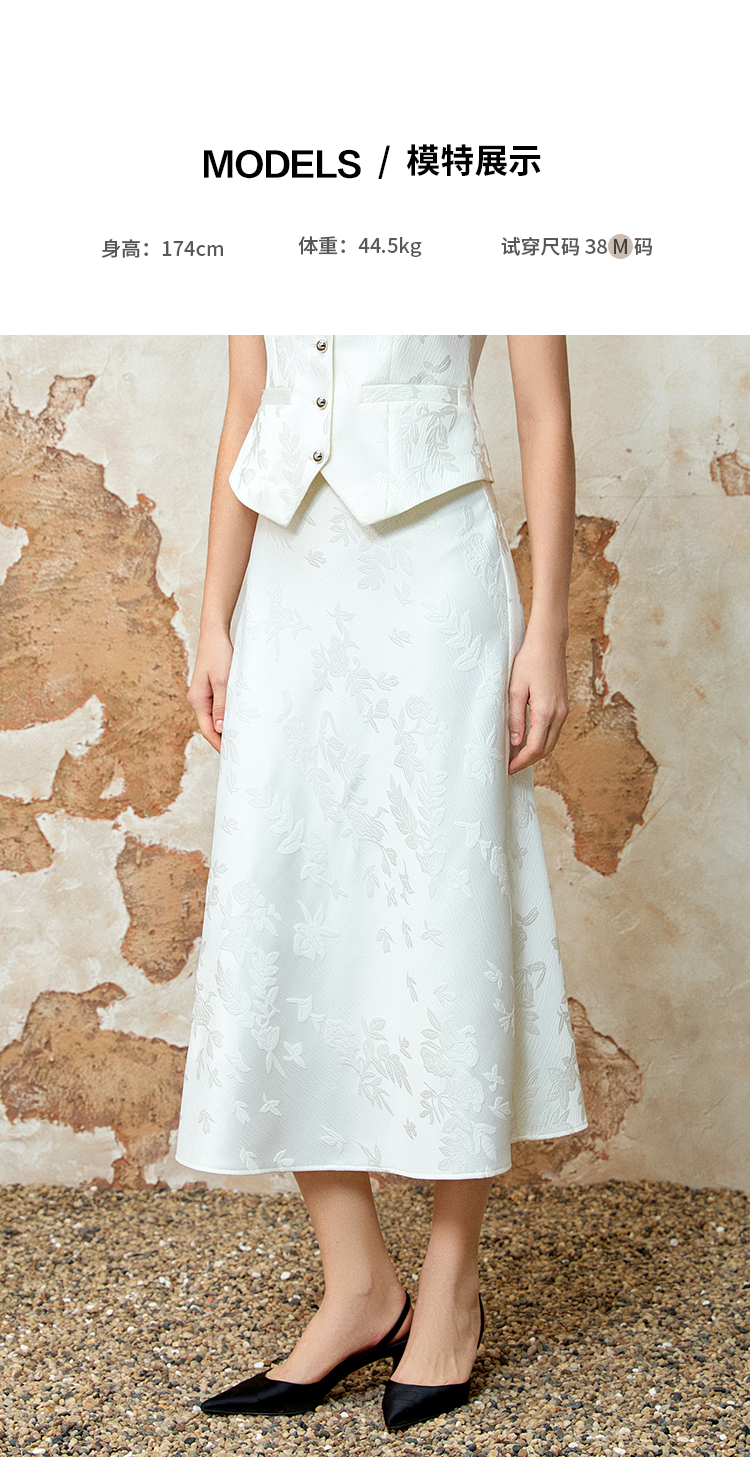 EITIE爱特爱气质高腰垂坠显瘦优雅暗纹长裙半身裙春季新款8106807