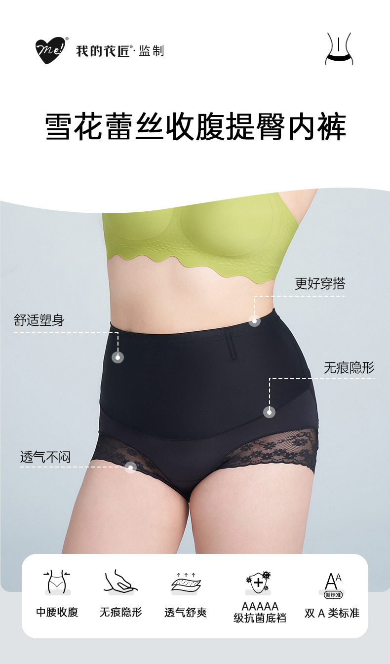 我的花匠监制 me!列 雪花蕾丝提臀光面 中腰收腹内裤 2条/盒
