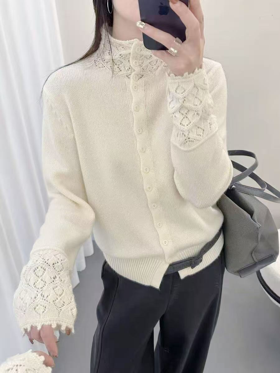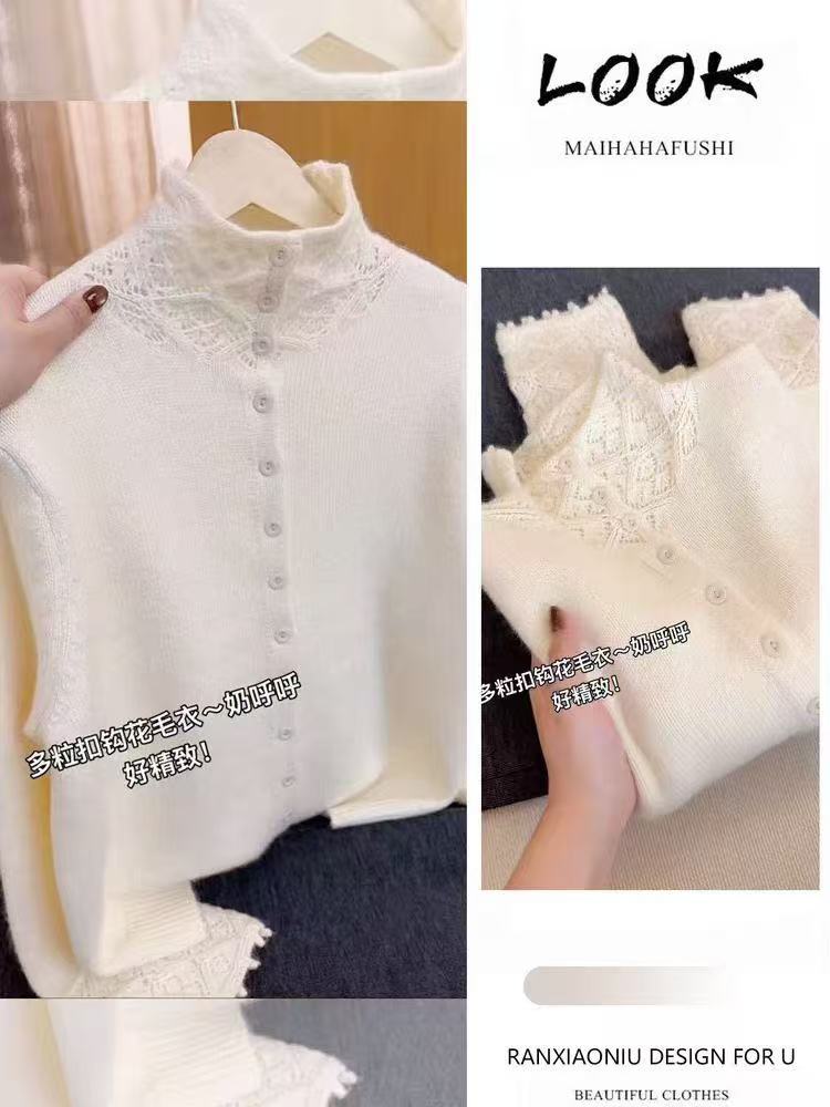 自营【超美针织衫】M04韩系减龄钩花~半高领针织毛衣-喜出