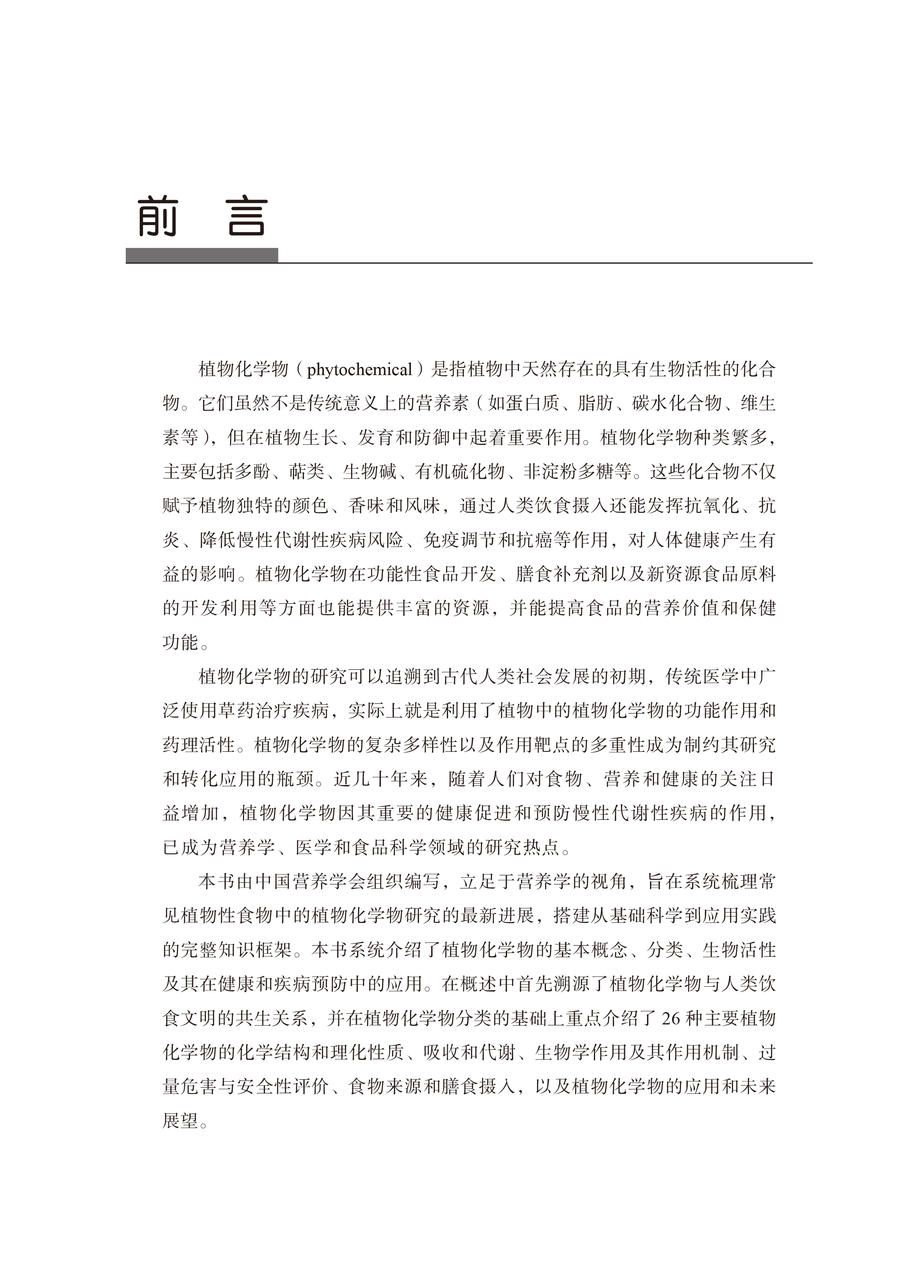 食物植物化学物与人类健康概论 编著:中国营养学会 北医社