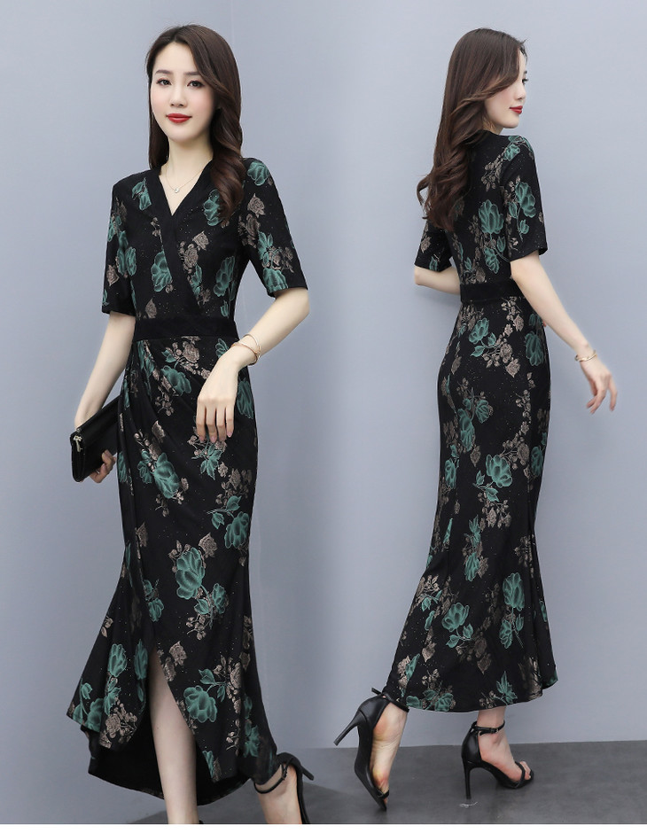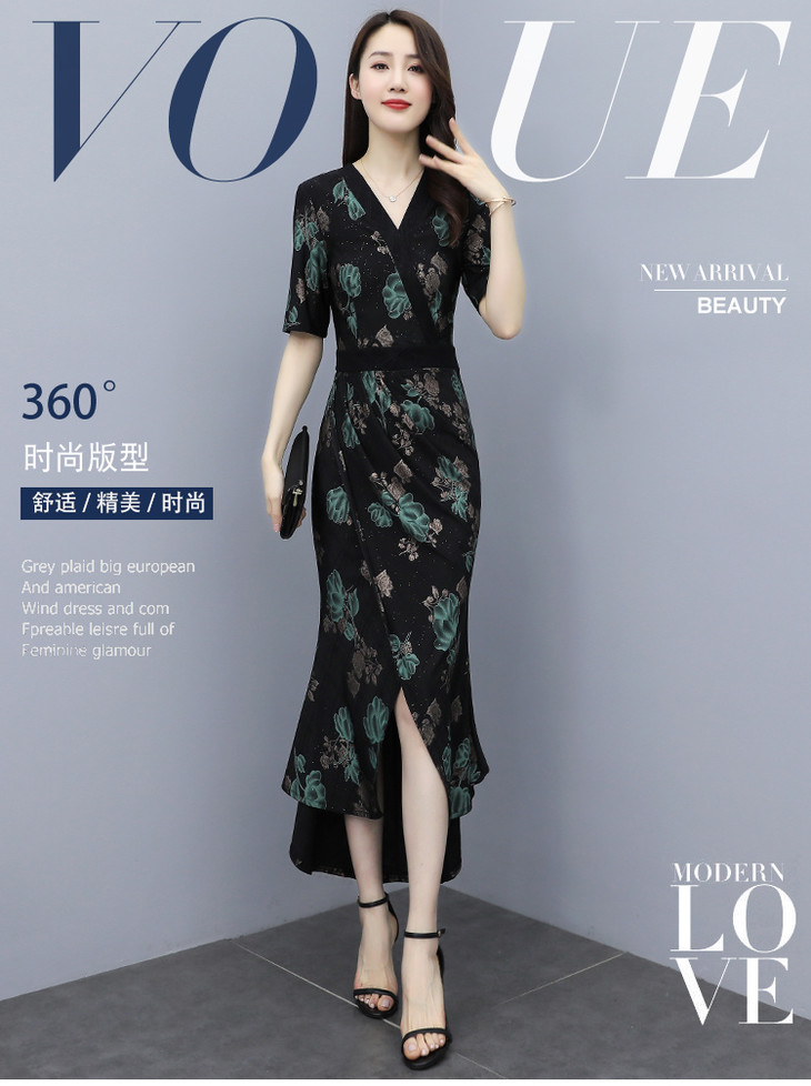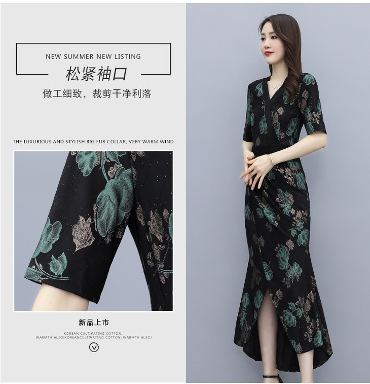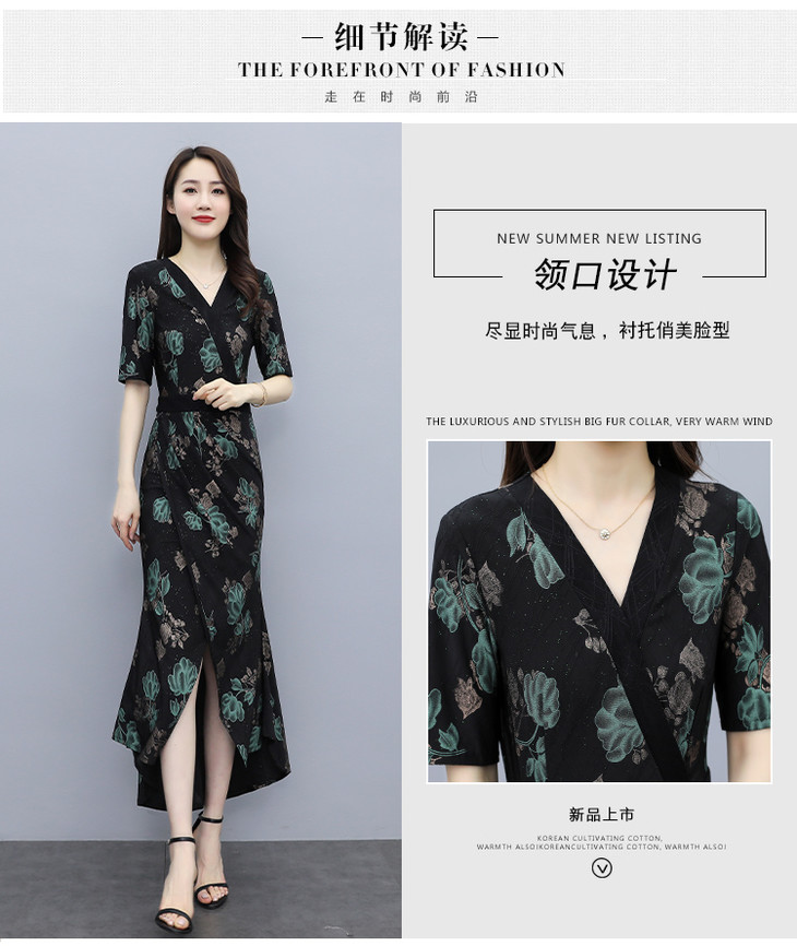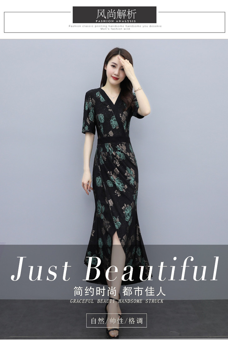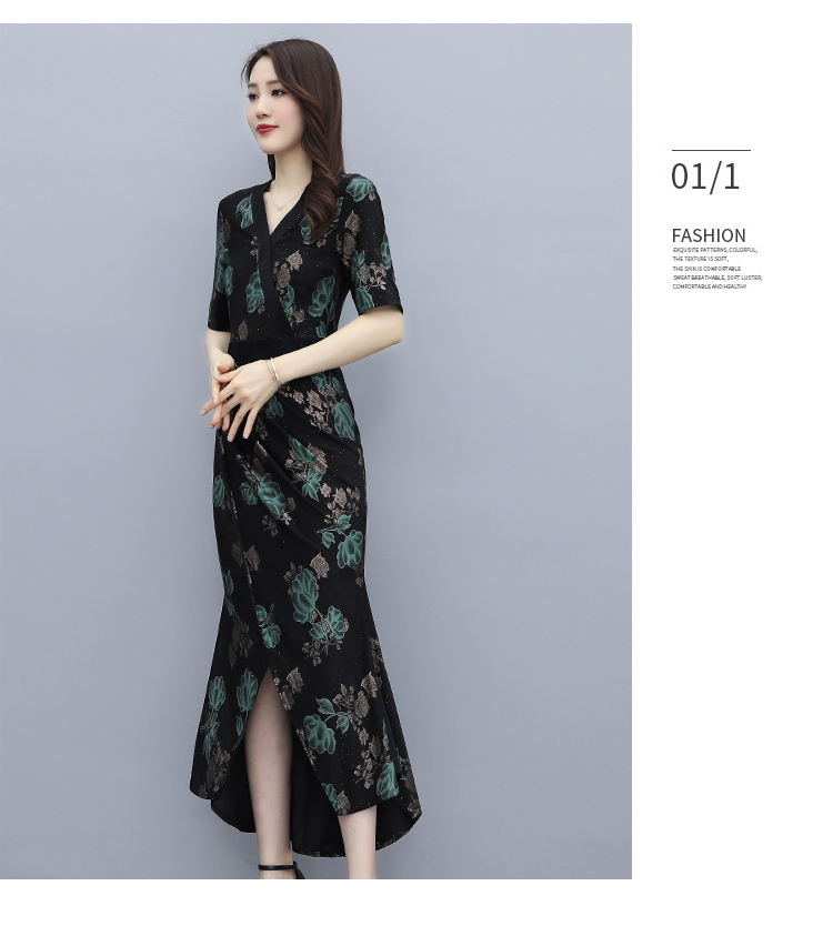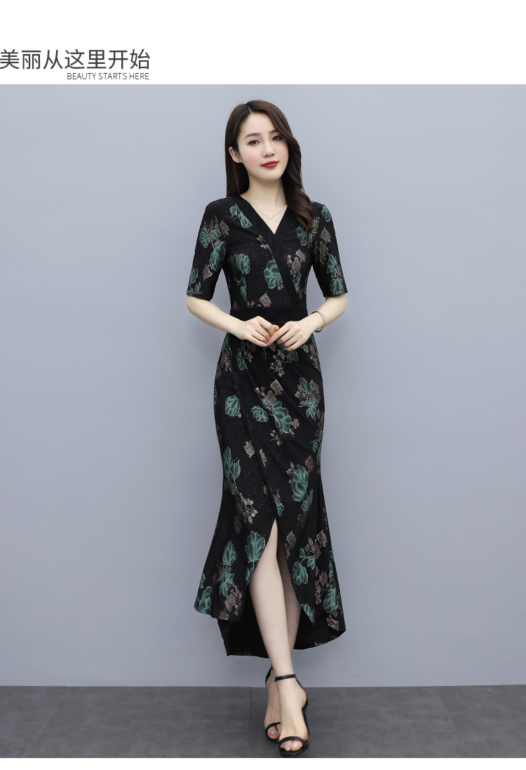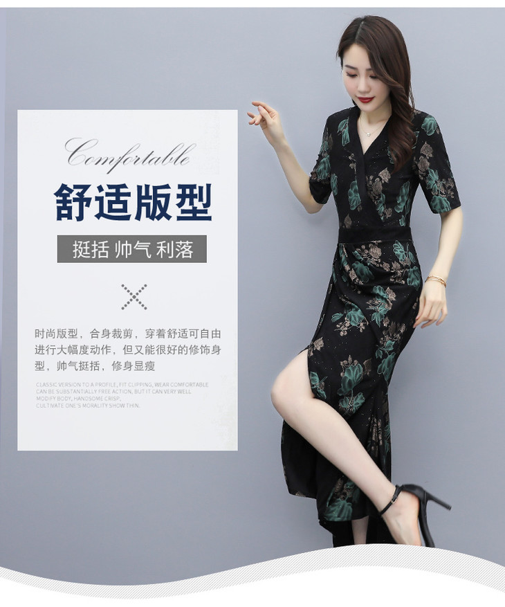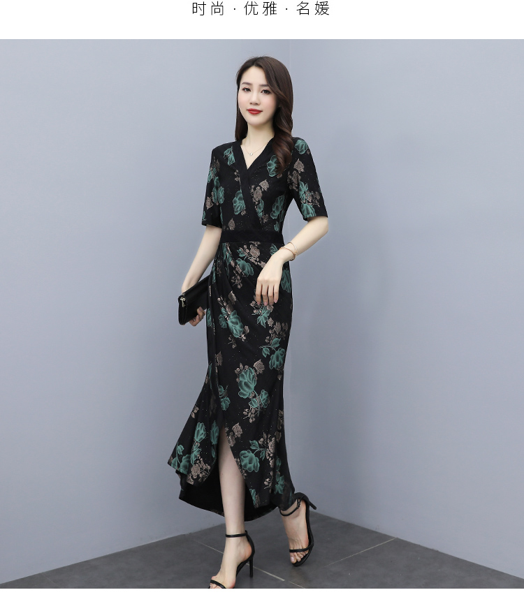 HRFS-QY21310新款简约优雅气质V领连衣裙