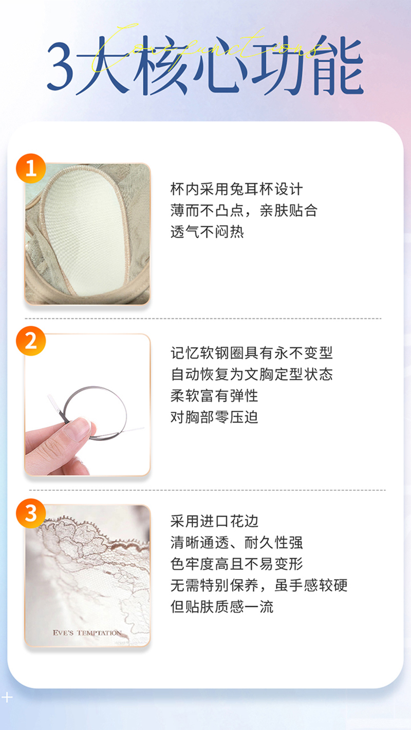 QC-Y1319 轻薄兔耳水晶杯记忆软圈调整聚拢美型文胸(单件)