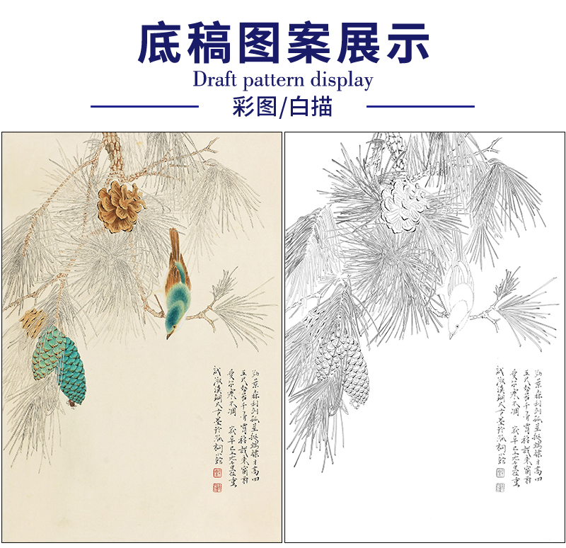 任重花鸟工笔画白描底稿《寒松小鸟》临摹勾线高清打印稿RD43