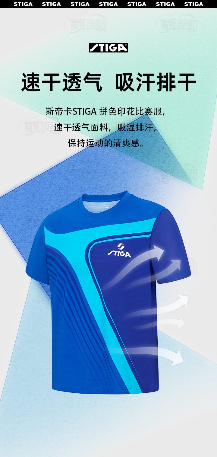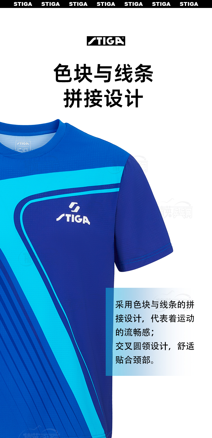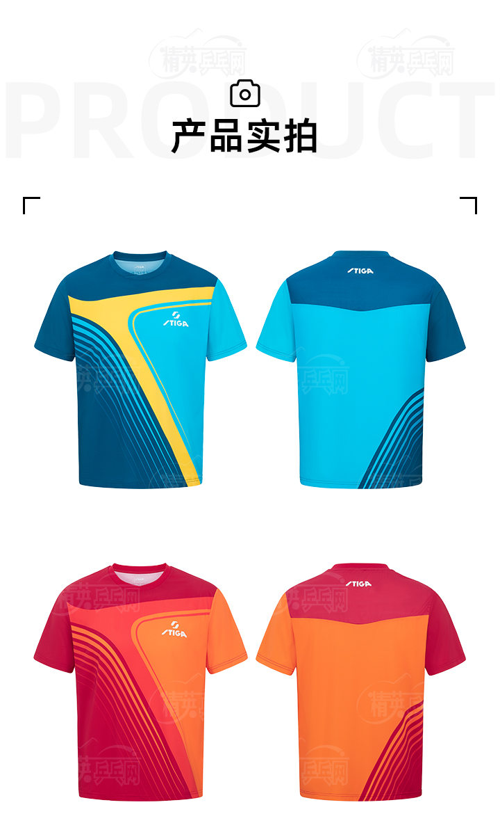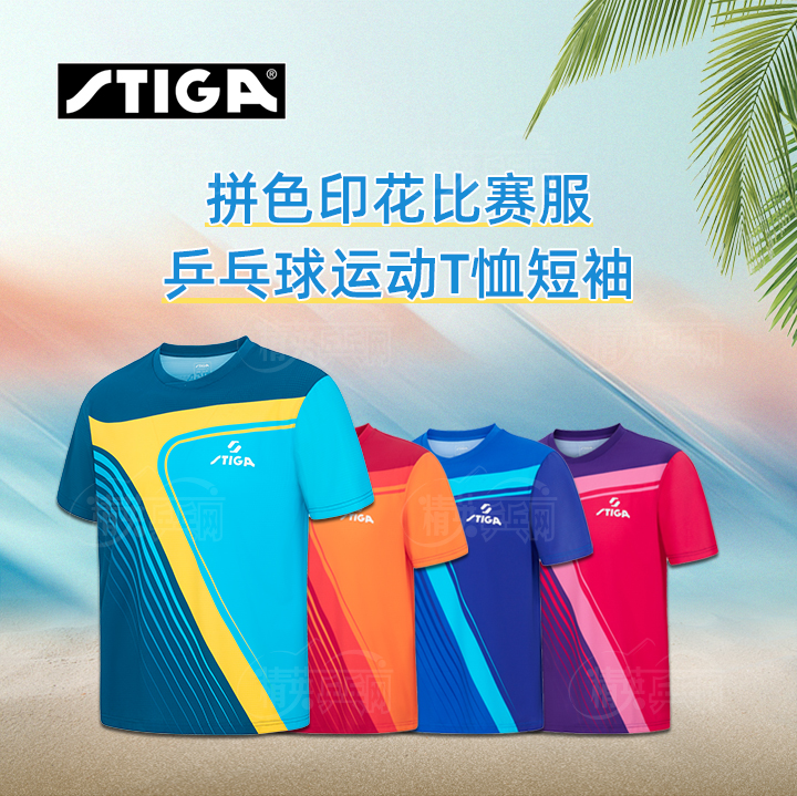 Stiga斯帝卡乒乓球服CA-131A斯蒂卡乒乓球服拼色印花款运动T恤吸湿排汗速干透气乒乓球衣比赛服 4色可选