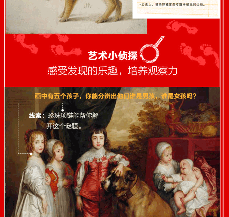 小艺术侦探们,现在是你们的主场了!邀请你们的父母或者老师记录以下的小贴士,然后和你们一起阅读这本书,希望你们对伟大艺术的兴趣能够得以激发,因为我们需要一起探索的还有很多。艺术大师的作品太棒了!