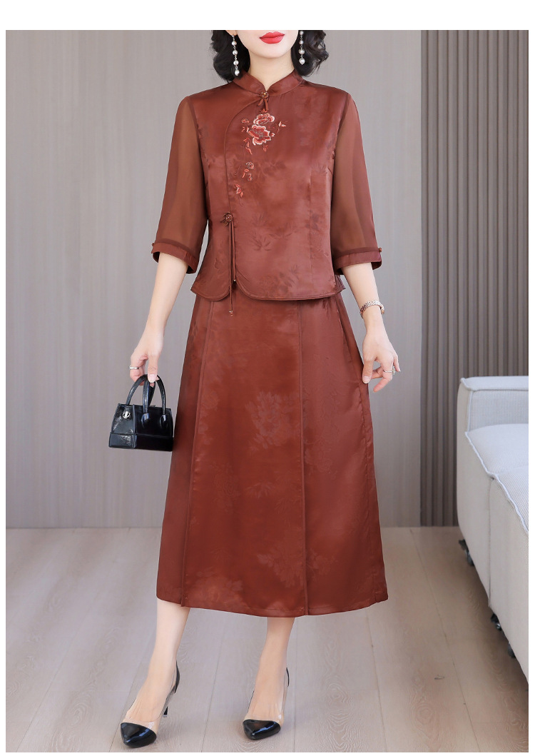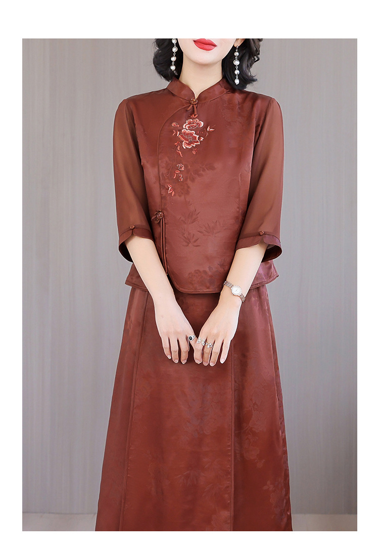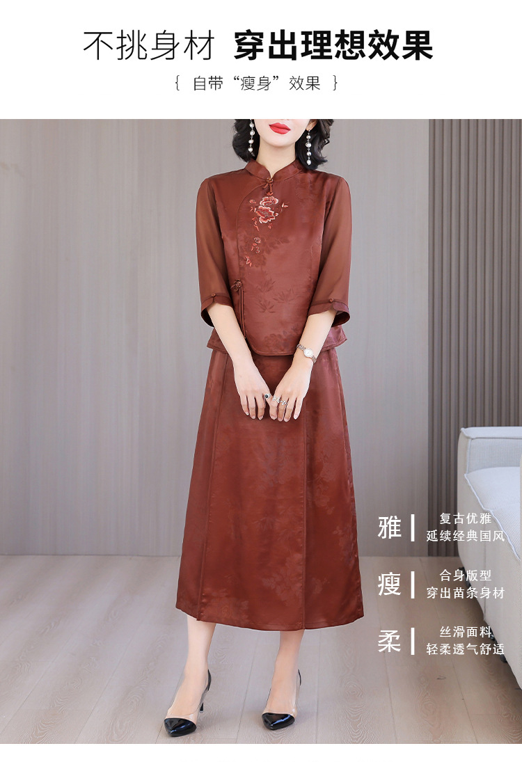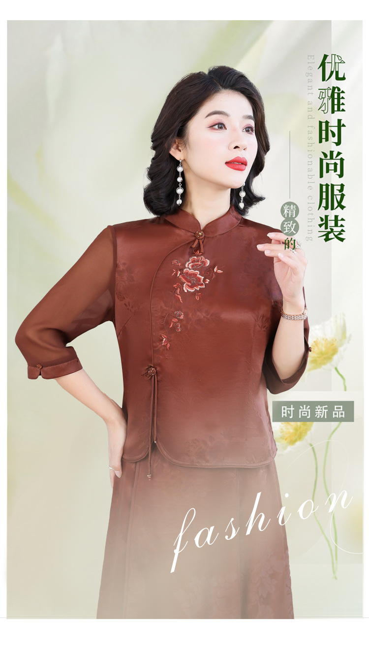 AHM yqwl5612优雅时尚套装复古立领衬衫半身裙两件套 商品图3