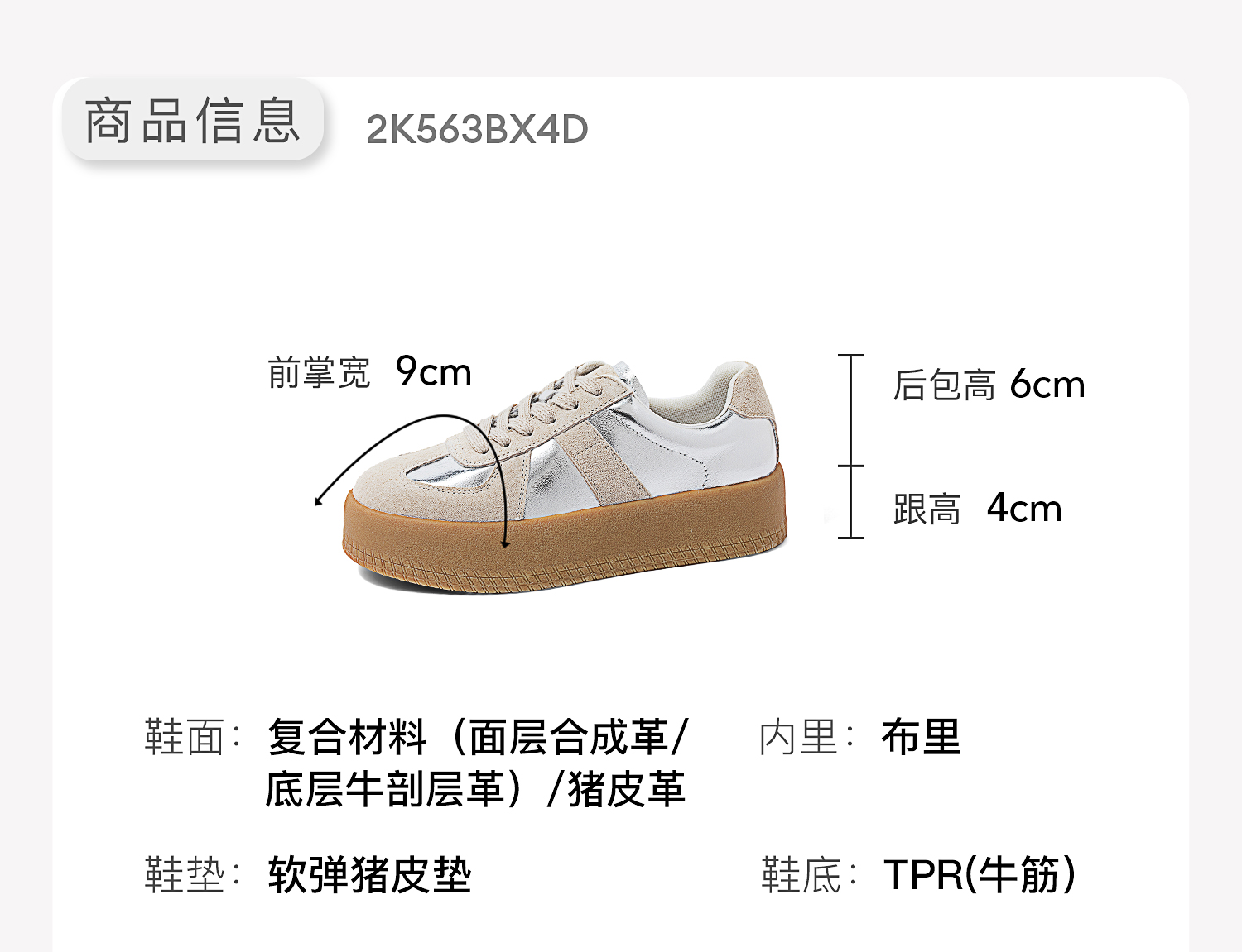 康莉KBH2K563厚底德训鞋春秋新款复古拼色增高圆头时尚休闲运动鞋