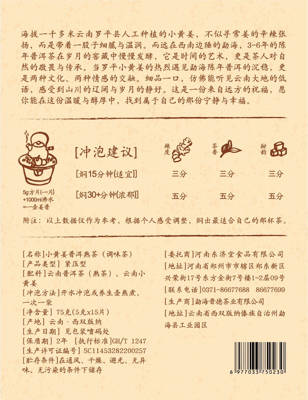 东济堂小黄姜普洱茶 茶香与姜香交融 微辣而回甘,暖上心头,可焖可煮可泡