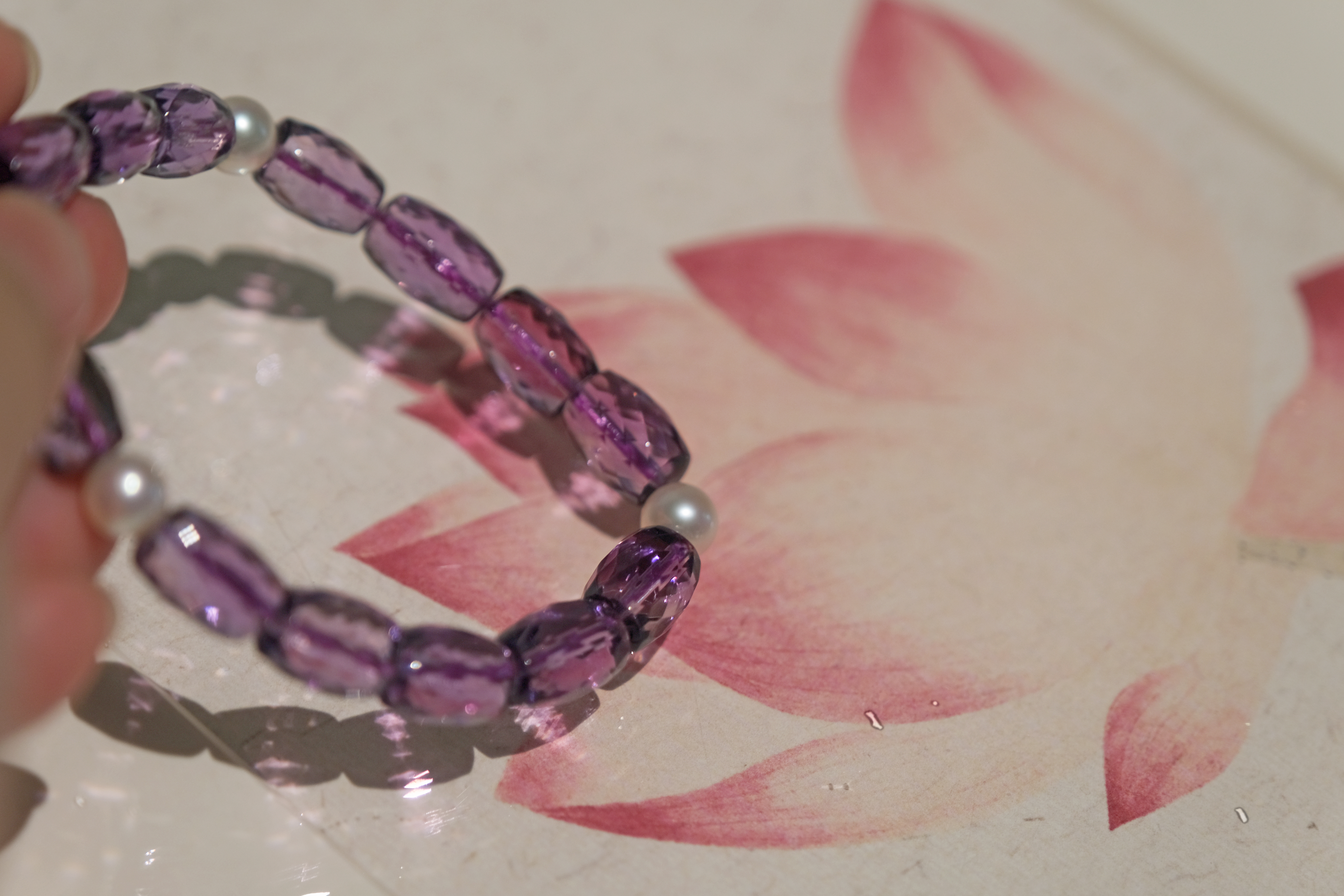 材质:天然紫水晶、6-7mm akoya淡水珍珠