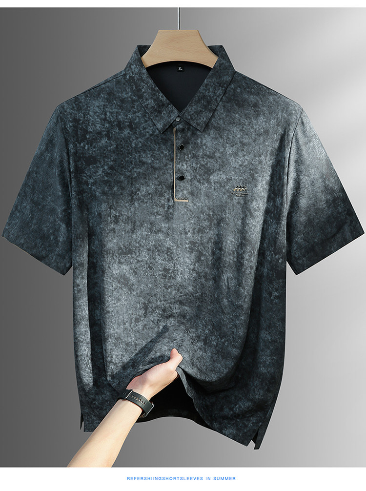 【DPF】大依优型大码男装夏季冰丝翻领短袖POLO衫扎染潮流时尚上衣T恤