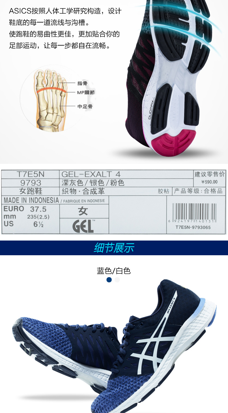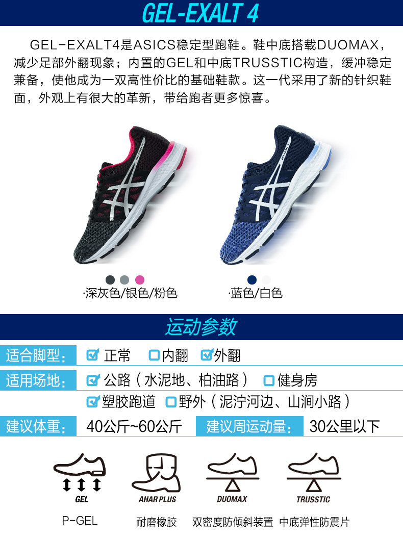 ASICS亚瑟士GEL-EXALT 4女款透气稳定跑鞋跑步鞋T7E5N