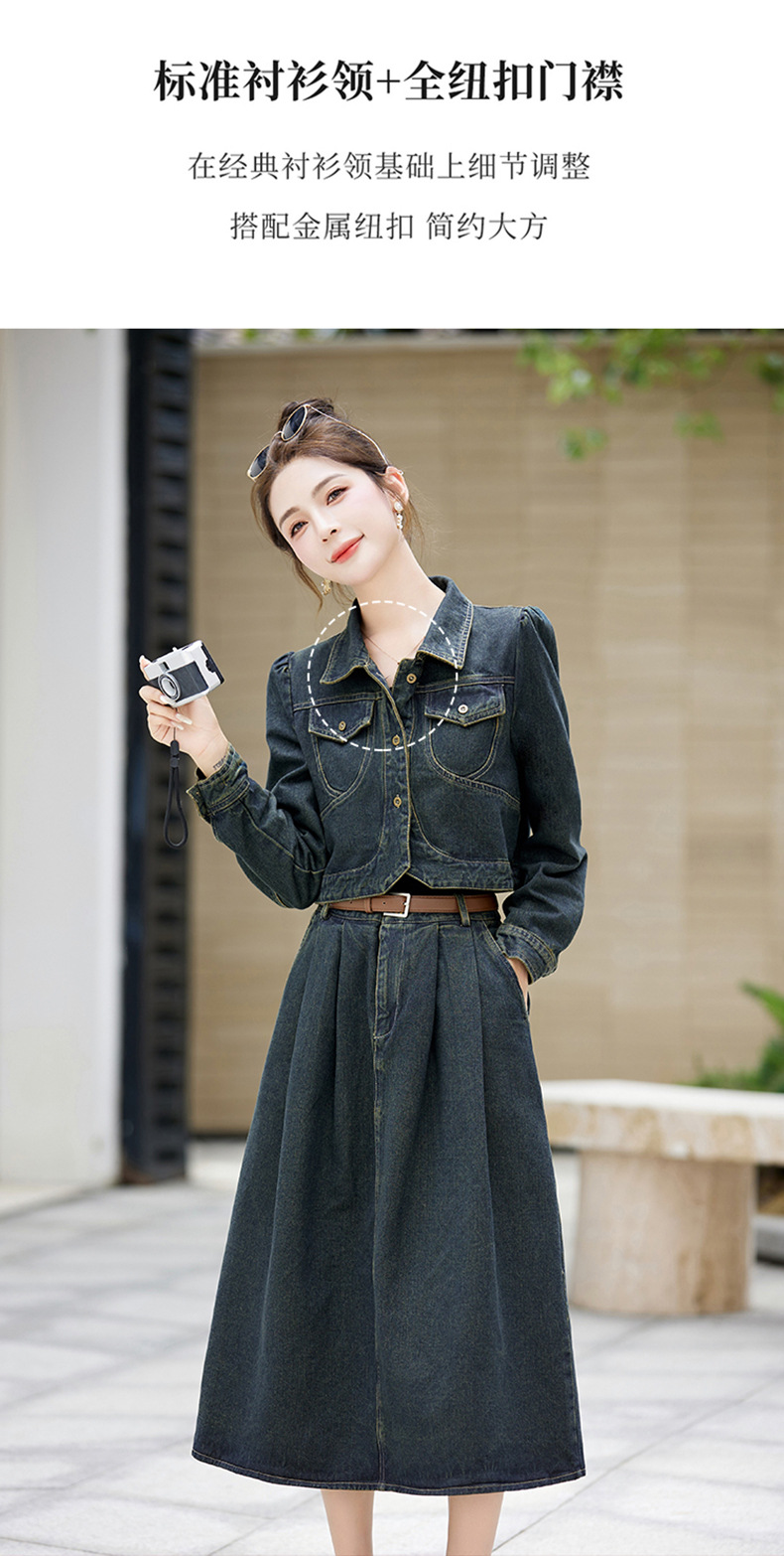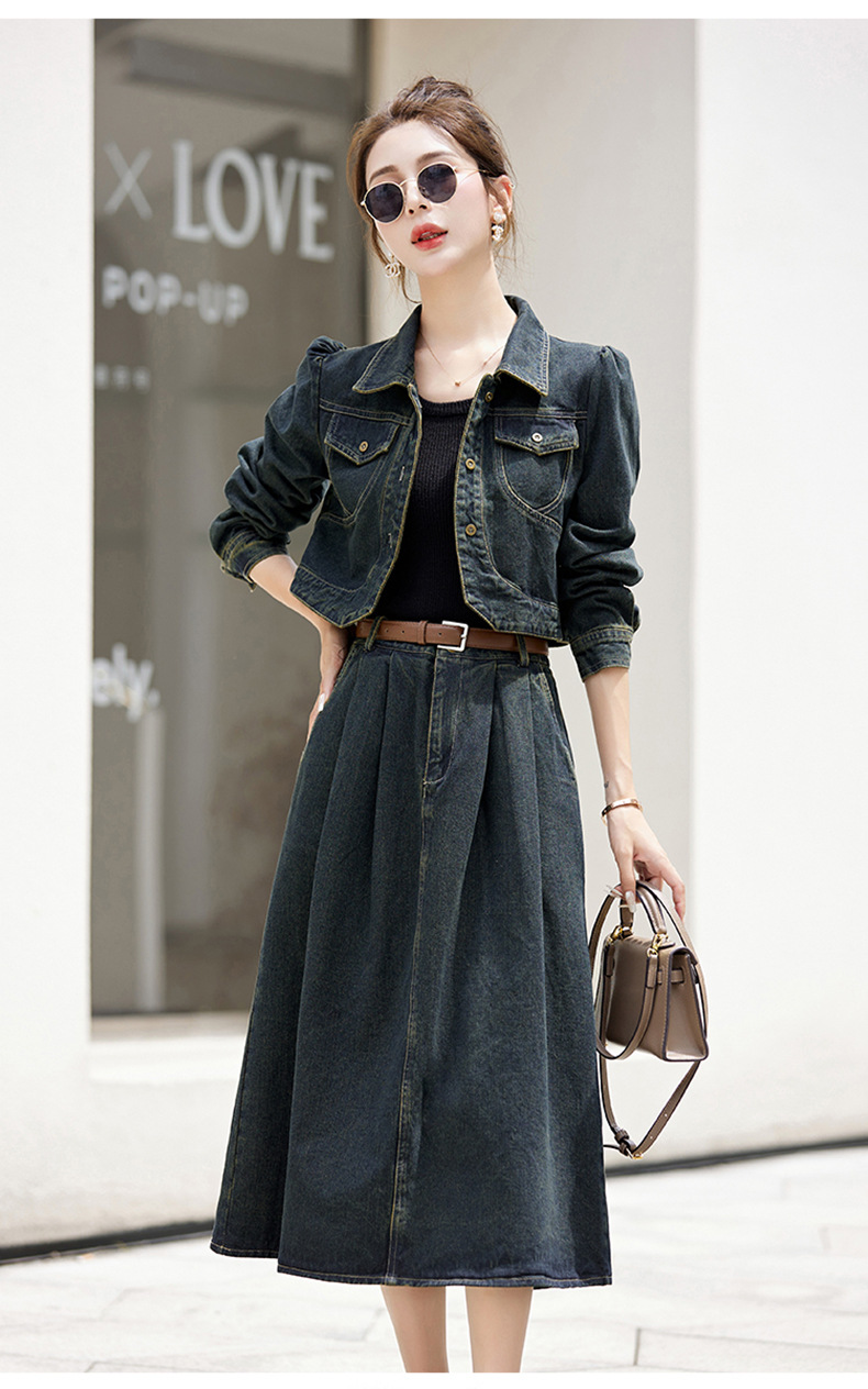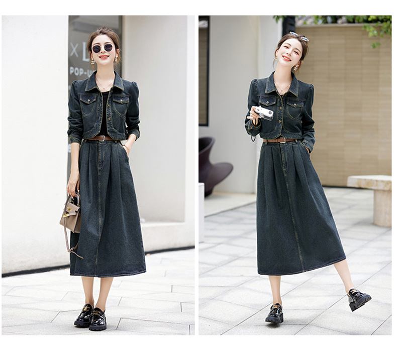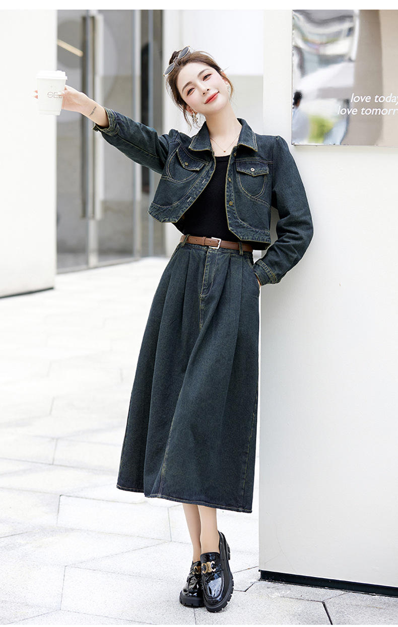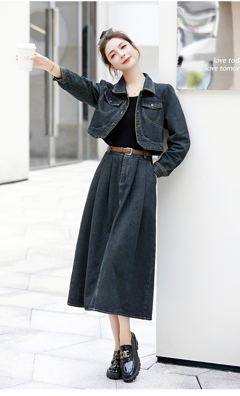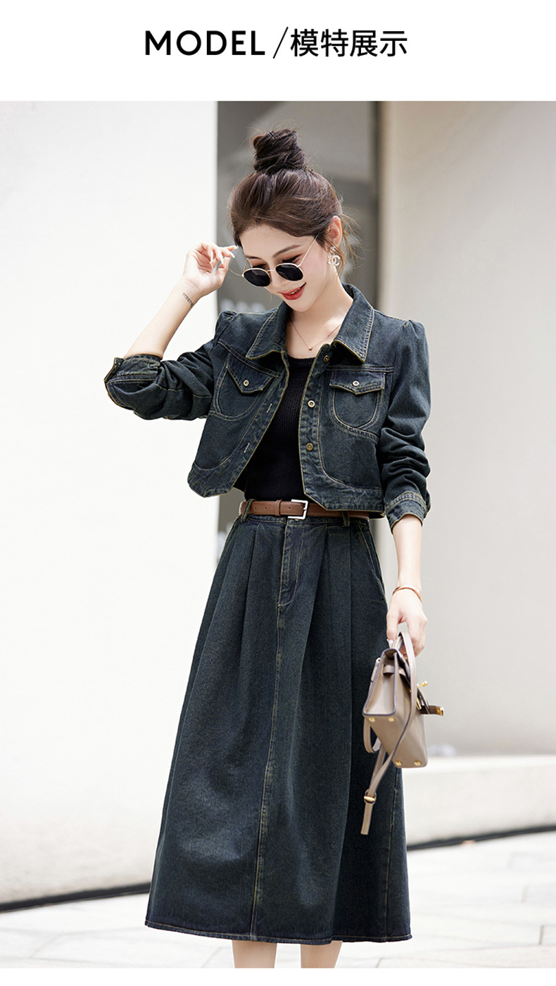 尚套装休闲复古牛仔外套+半身裙显瘦两件套LNS9656