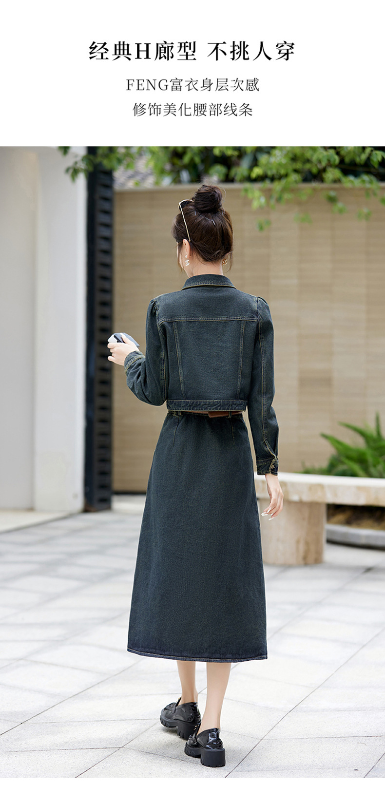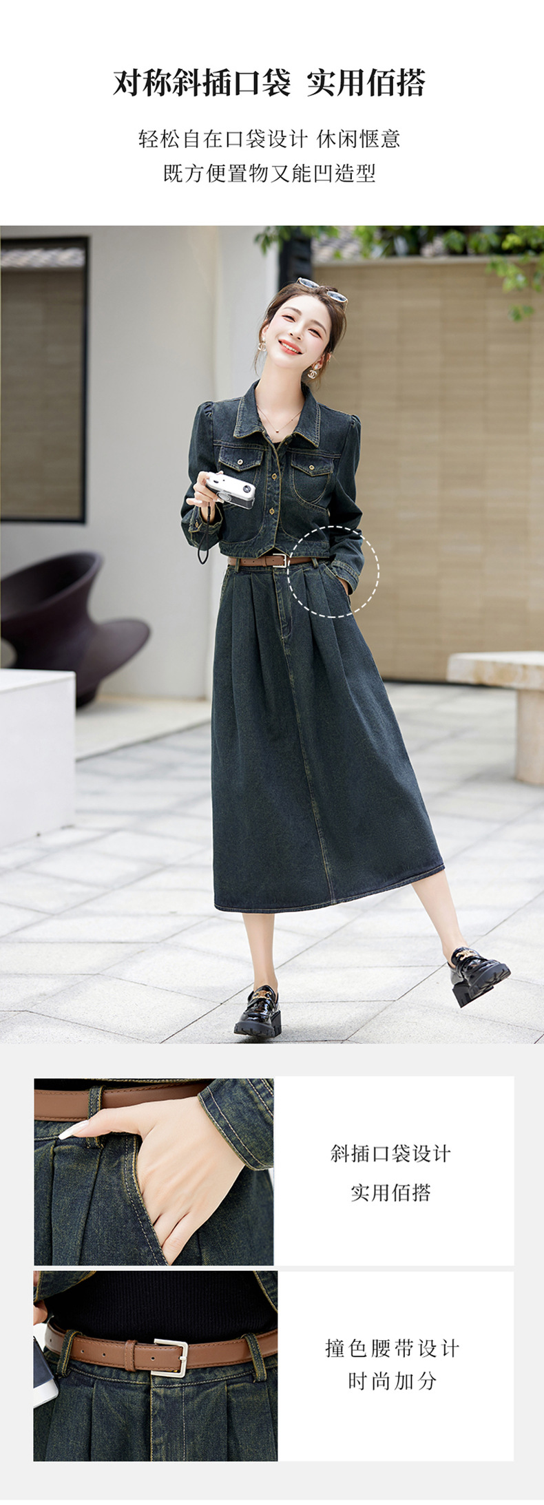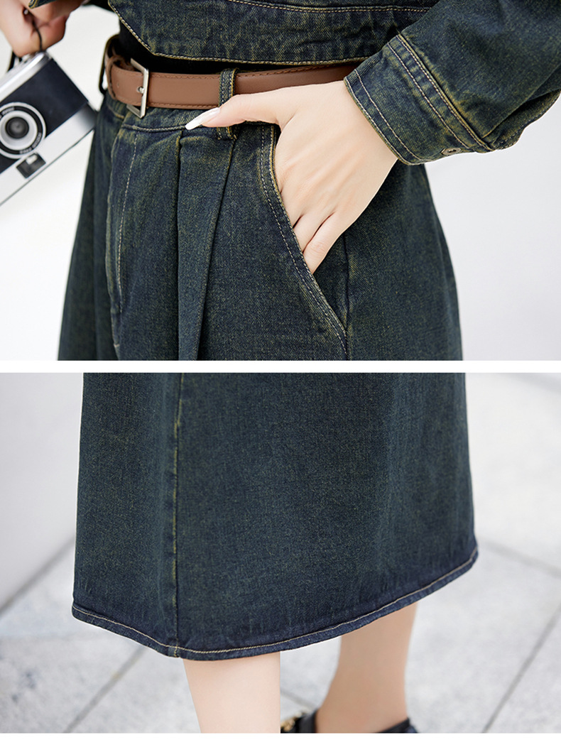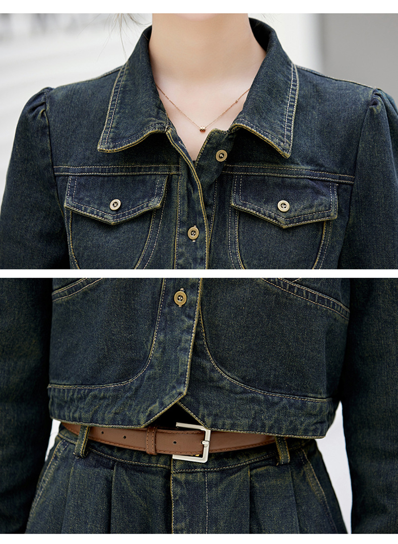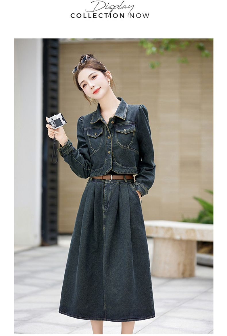 尚套装休闲复古牛仔外套+半身裙显瘦两件套LNS9656