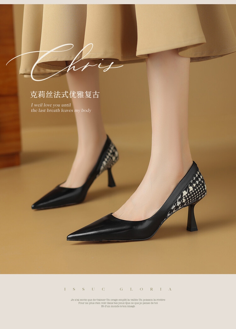 【预售5天】春秋季新款女鞋,尖头细高跟鞋拼接名媛正装辣妈单鞋子YS&9557