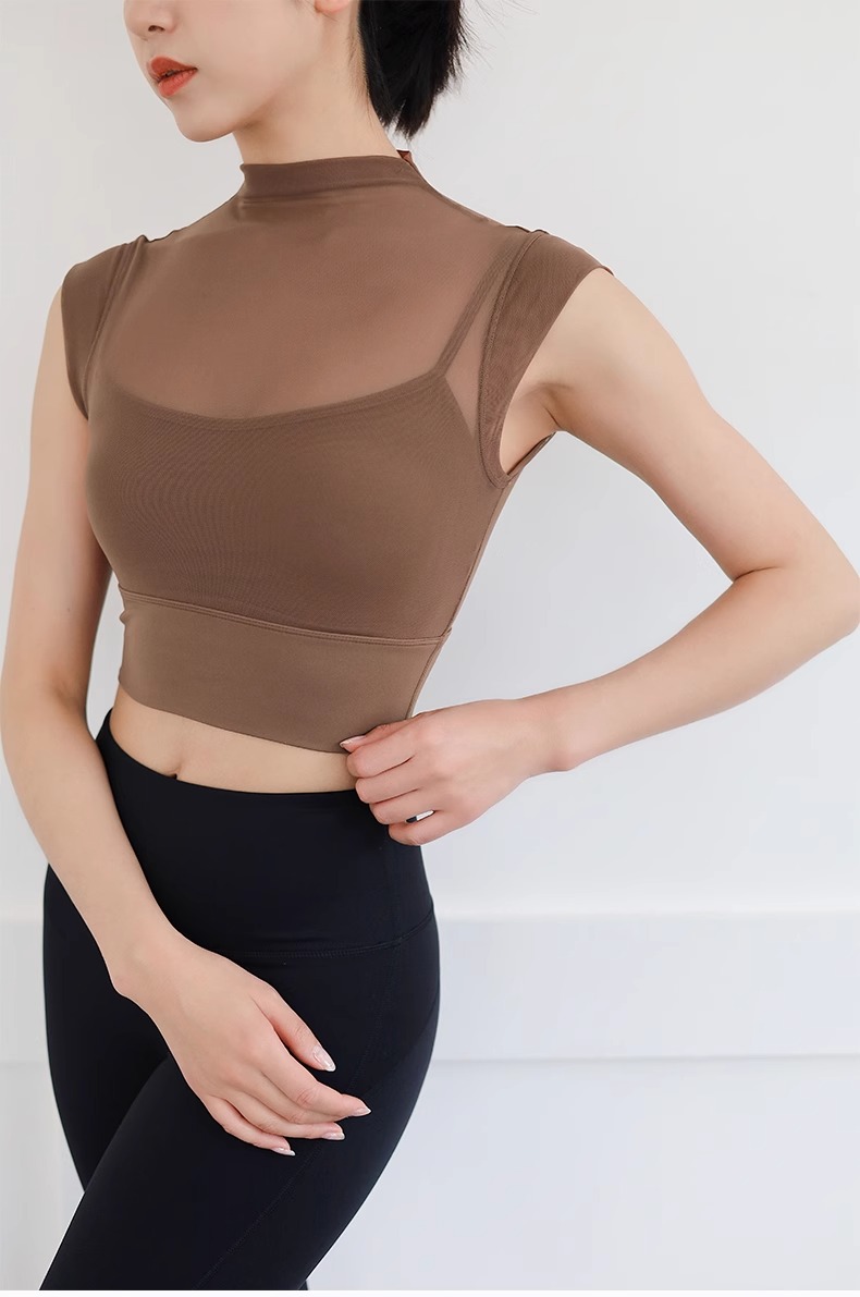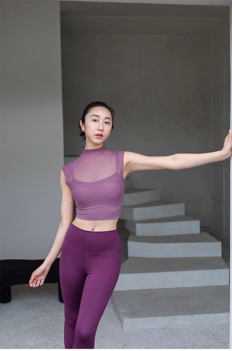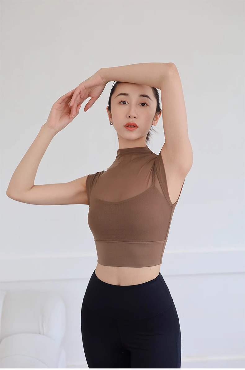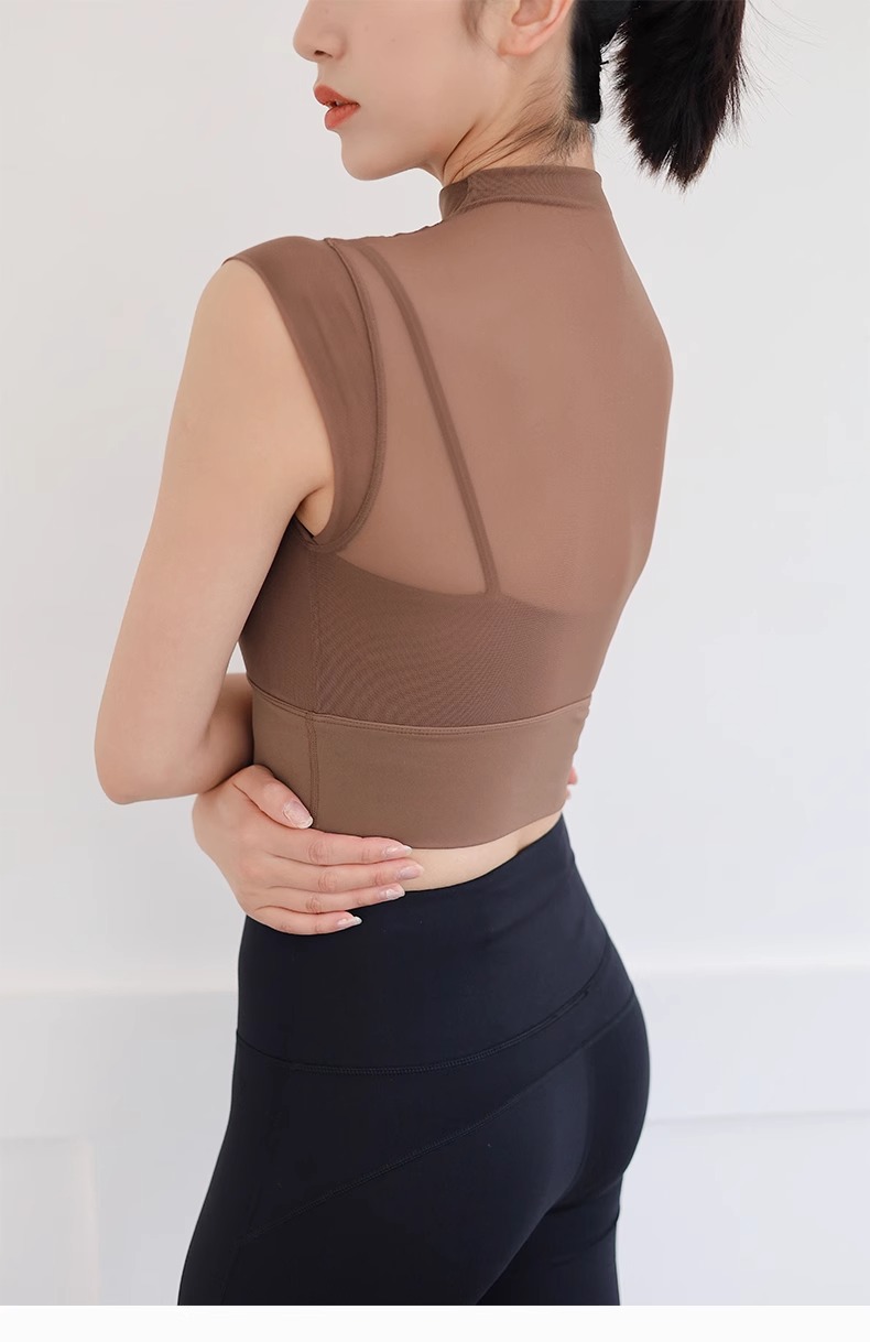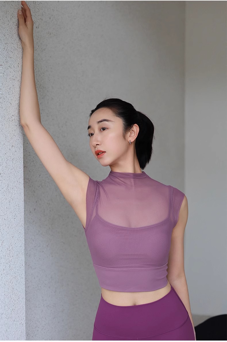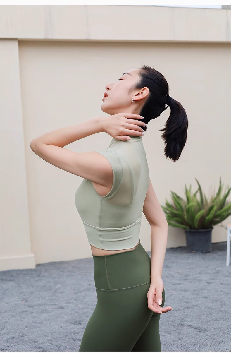 跃牌【禅语梵心】性感网纱瑜伽服飞袖带胸垫跑步速干运动文胸DX2555
