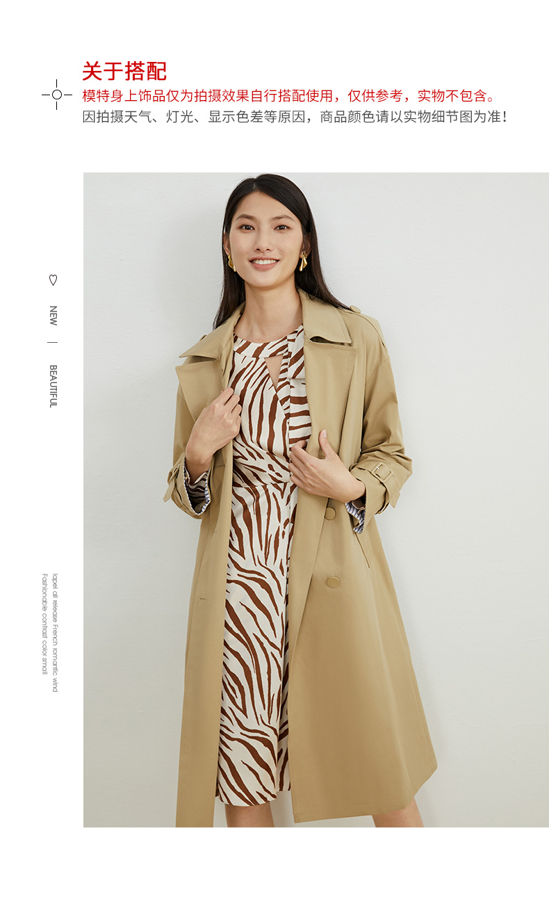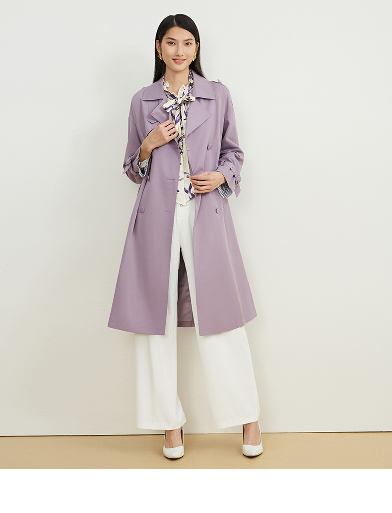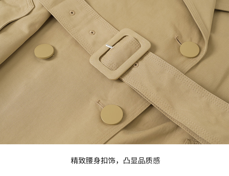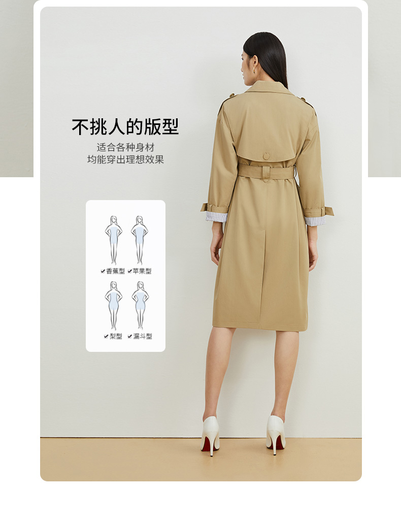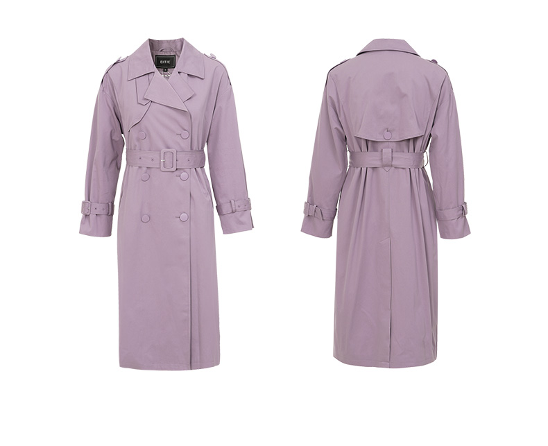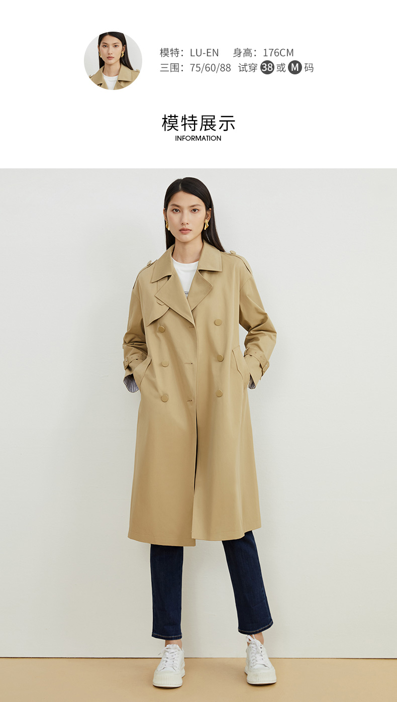 EITIE爱特爱秋新款经典双排扣纯色显瘦百搭纯棉长款风衣外套C2204008