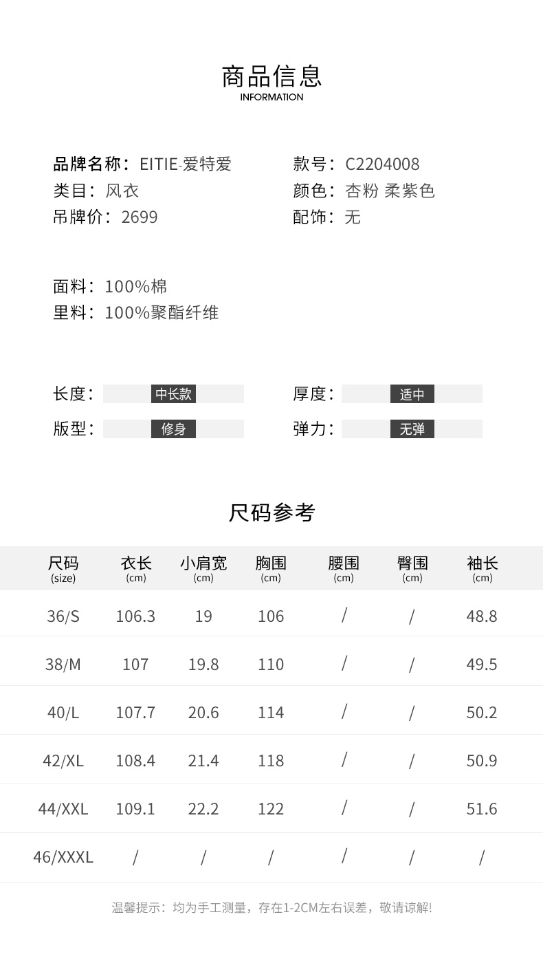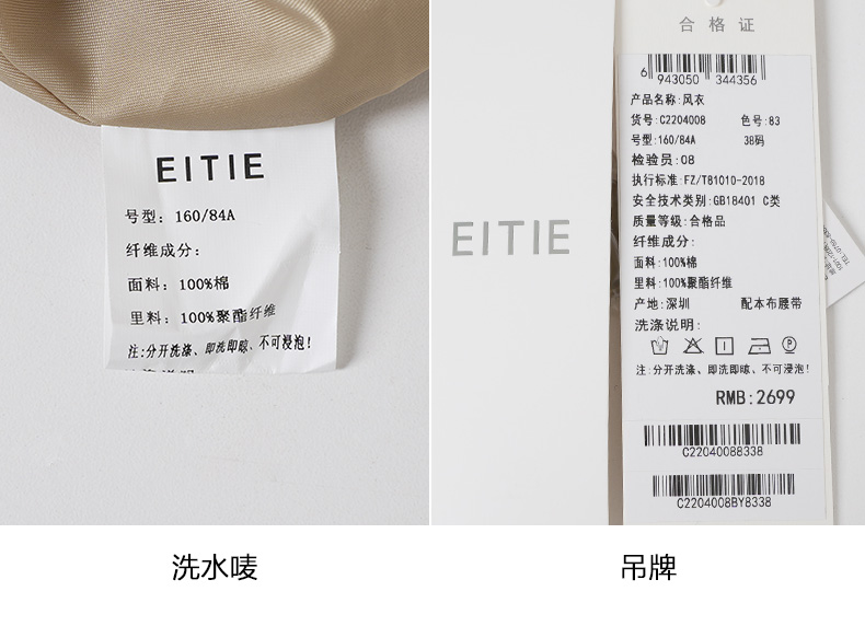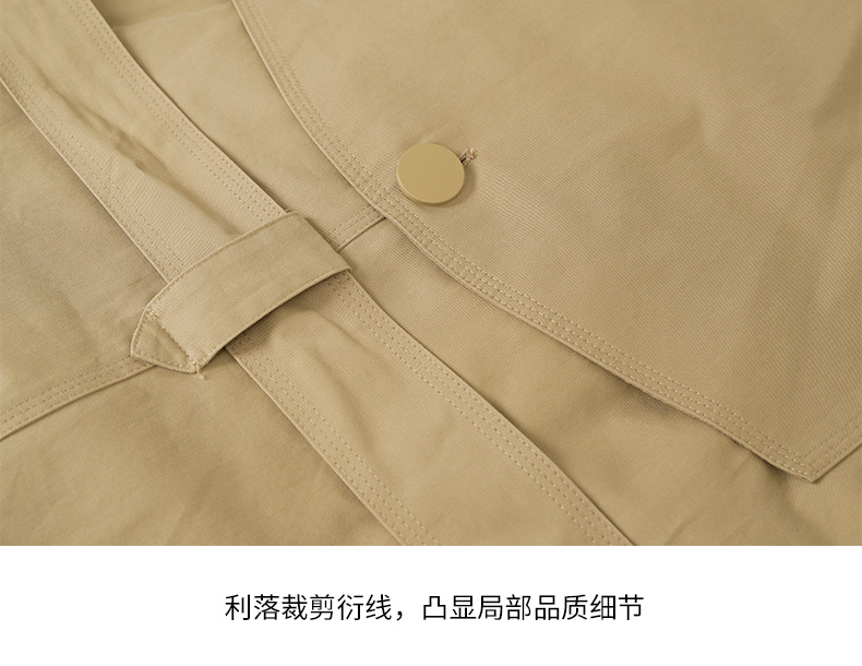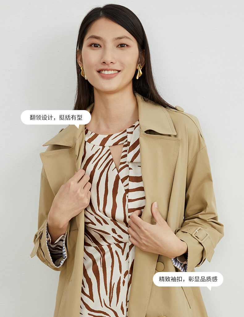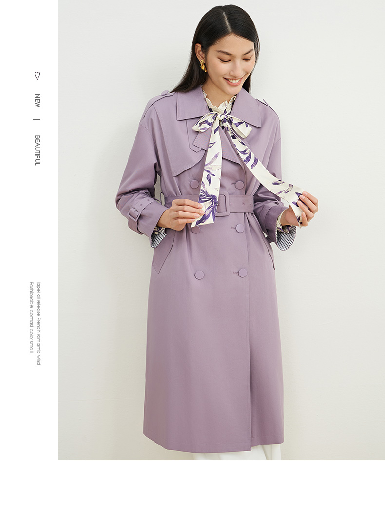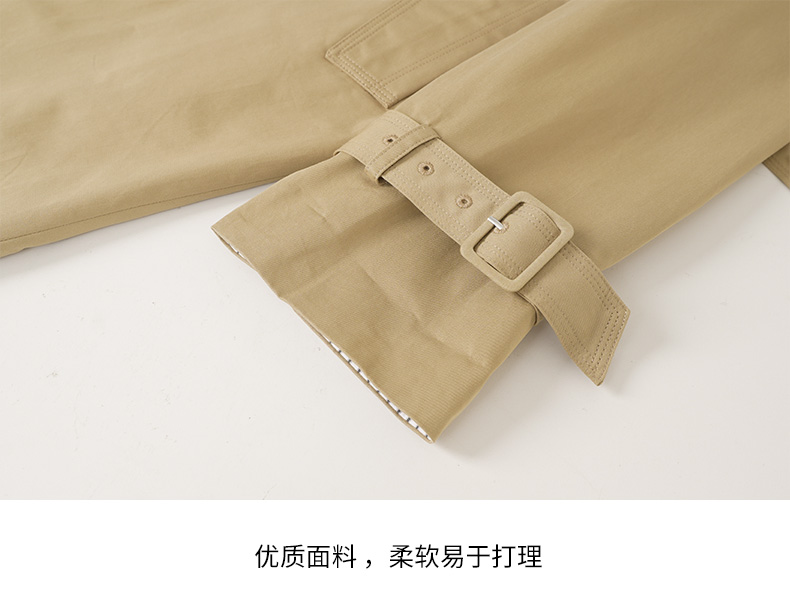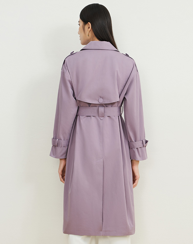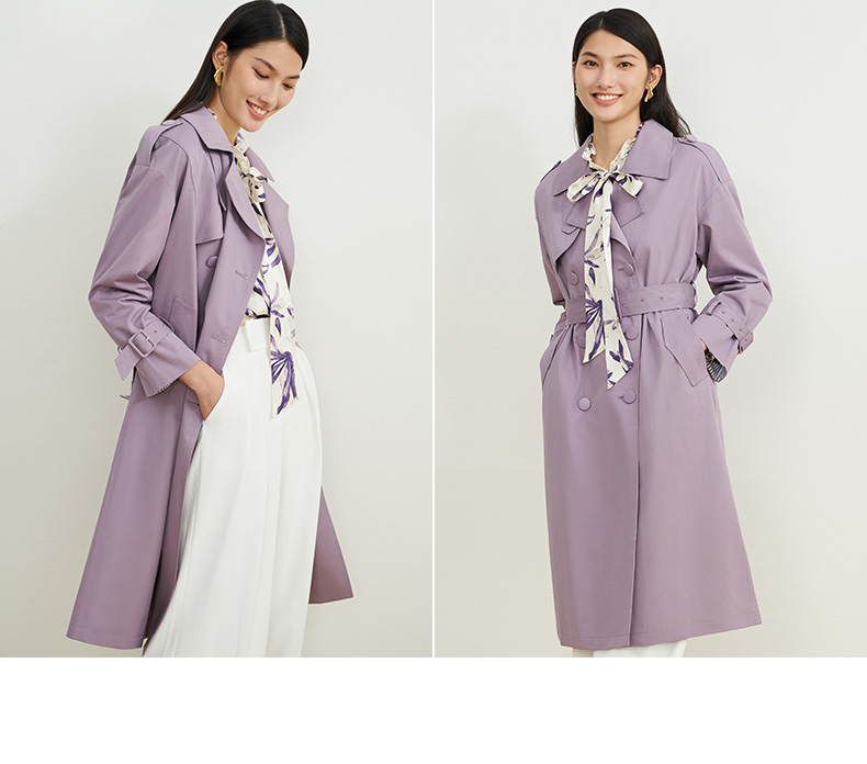 EITIE爱特爱秋新款经典双排扣纯色显瘦百搭纯棉长款风衣外套C2204008