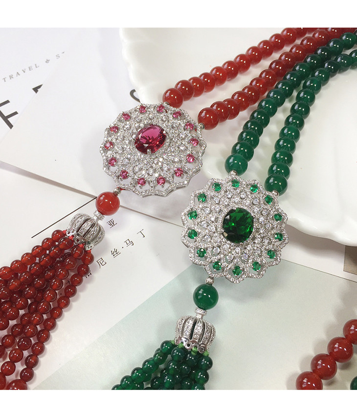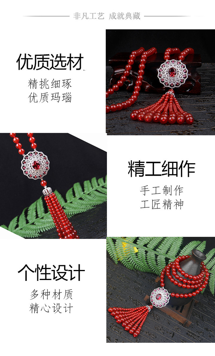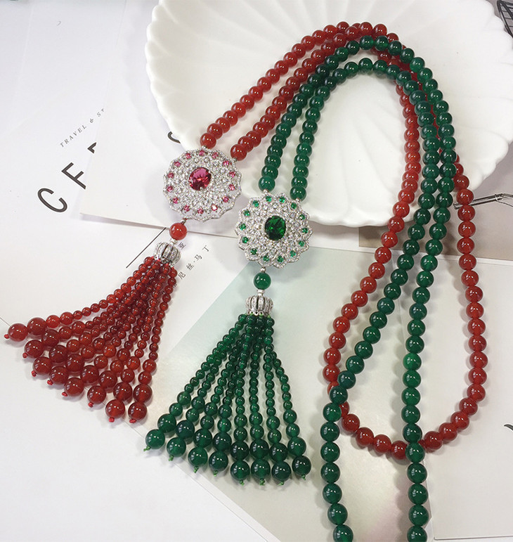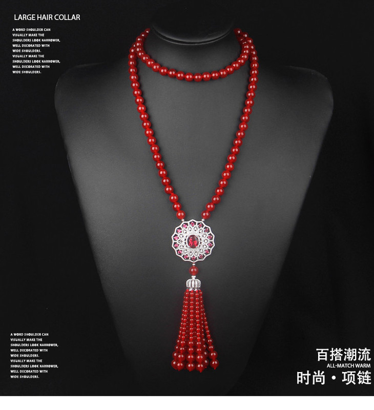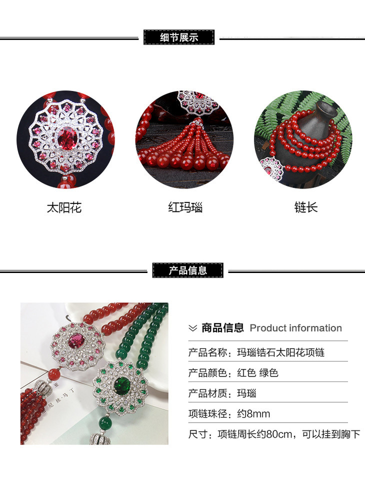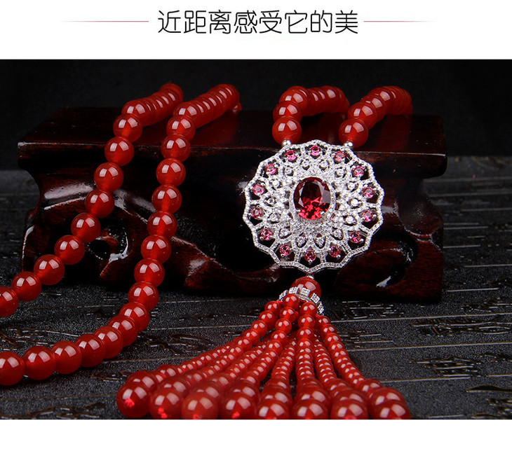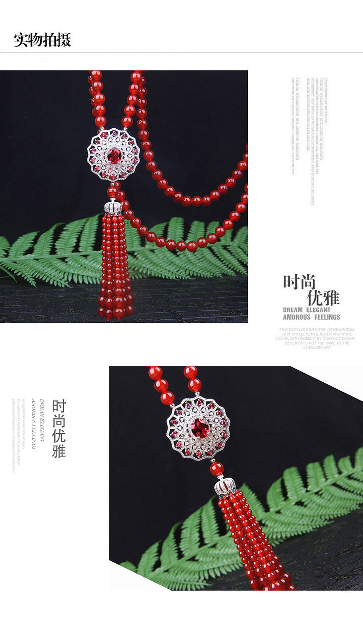 天然红玛瑙,锆石镶嵌,太阳花毛衣链NM10267