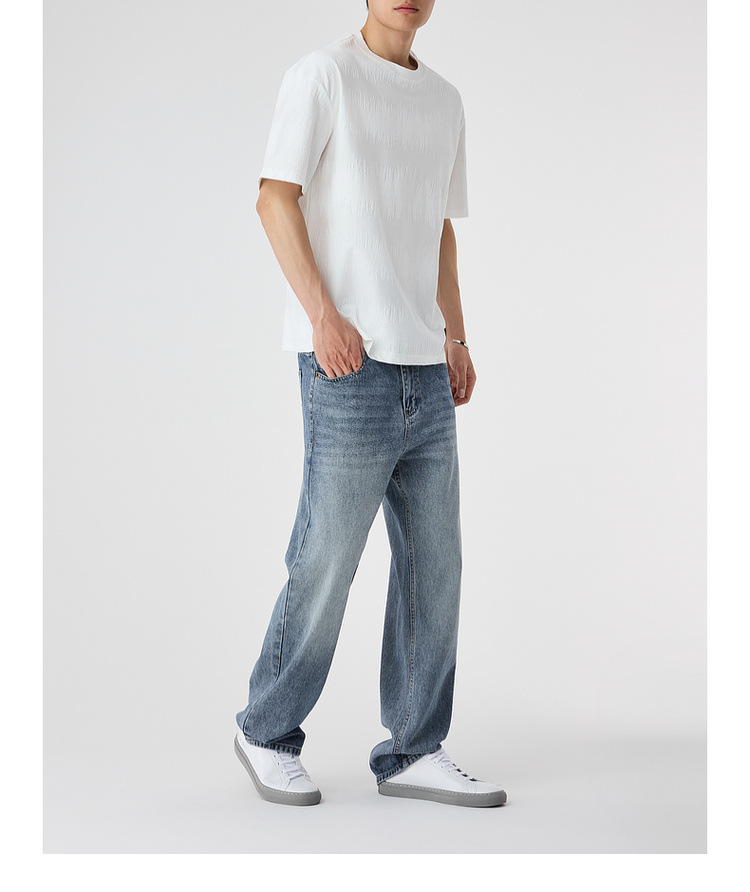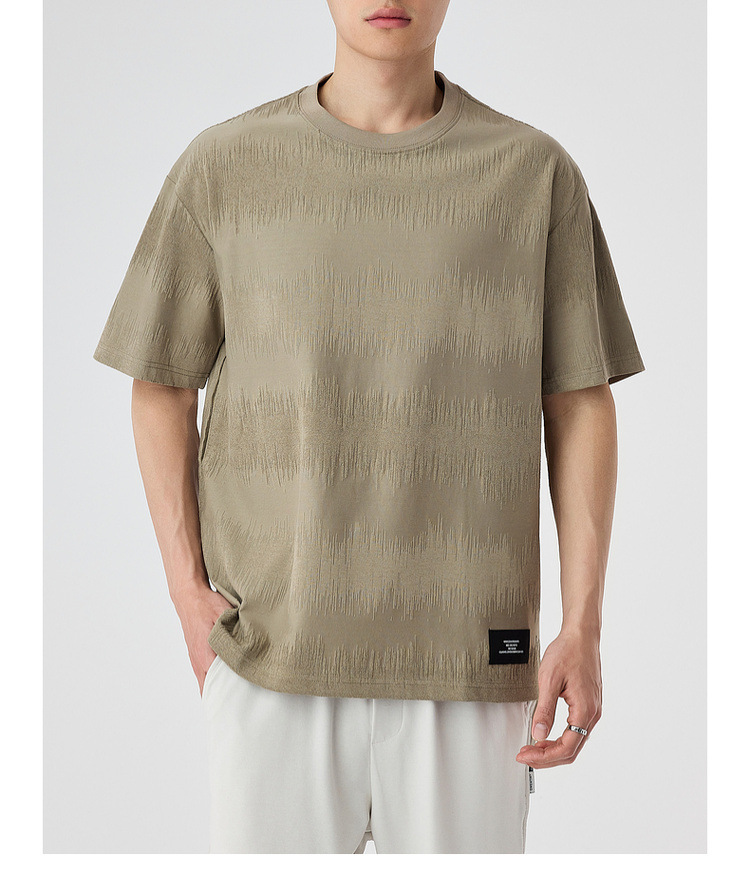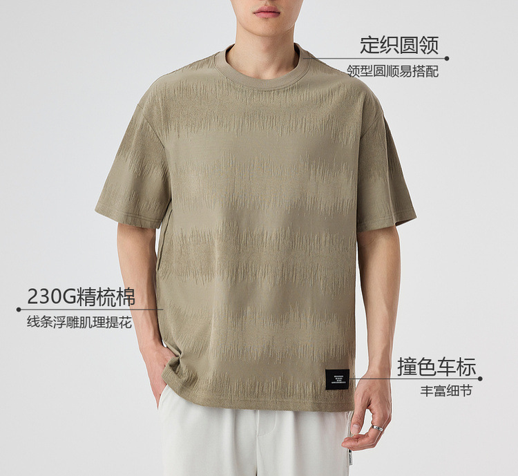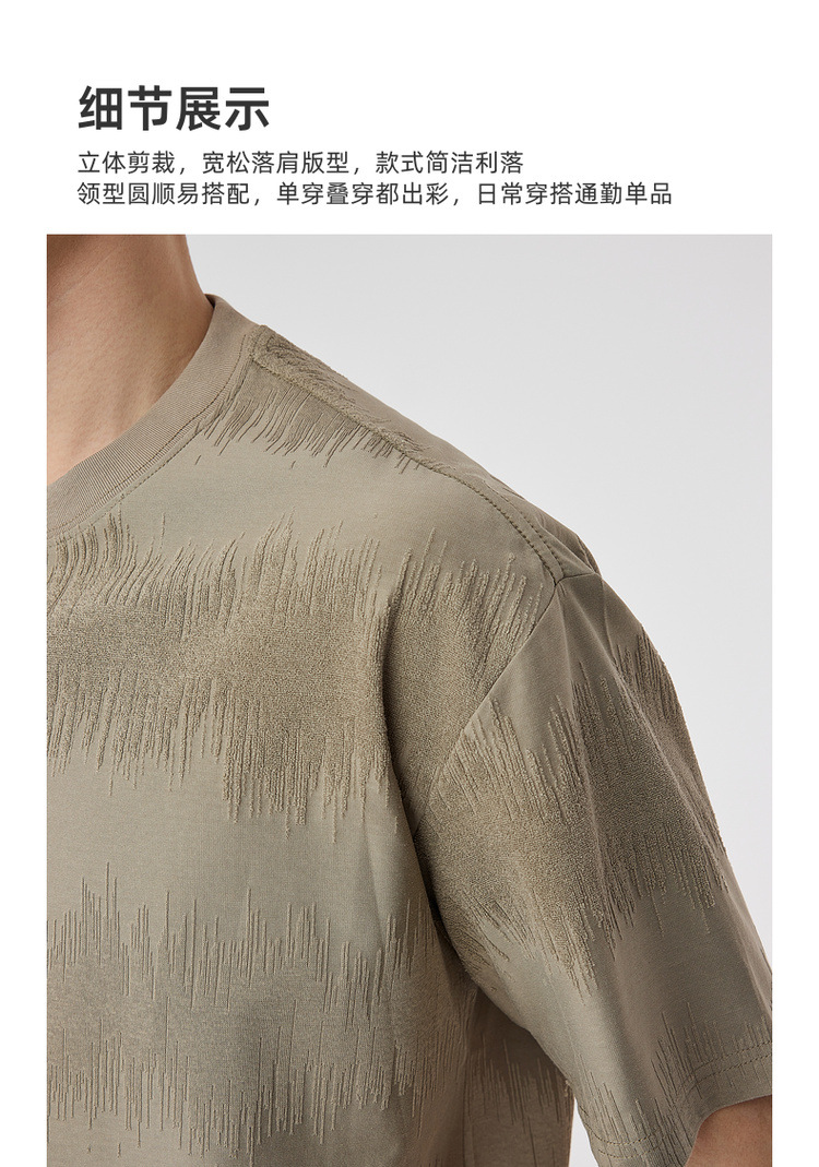 红览 男装浮雕肌理提花短袖t恤男2夏款时尚宽松男士T恤5ZF-71838