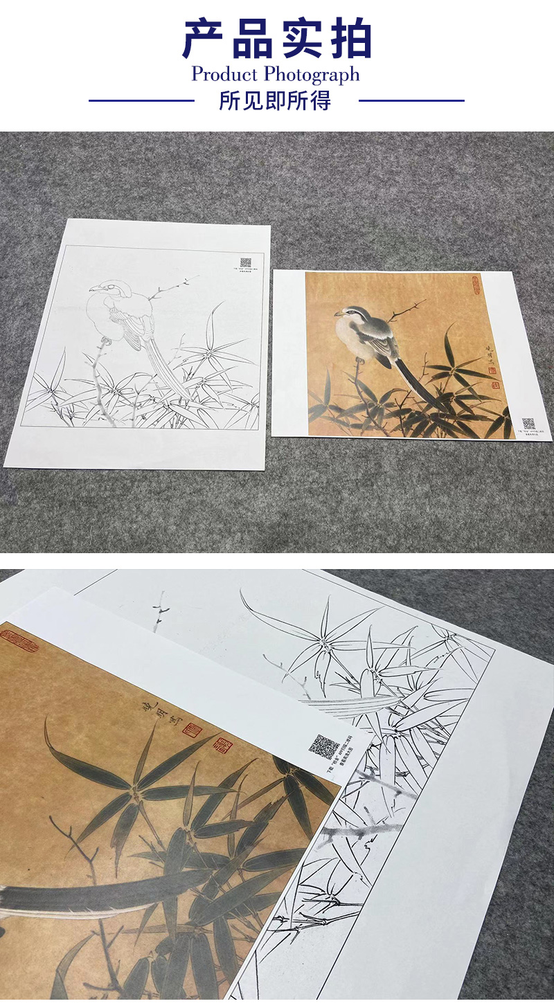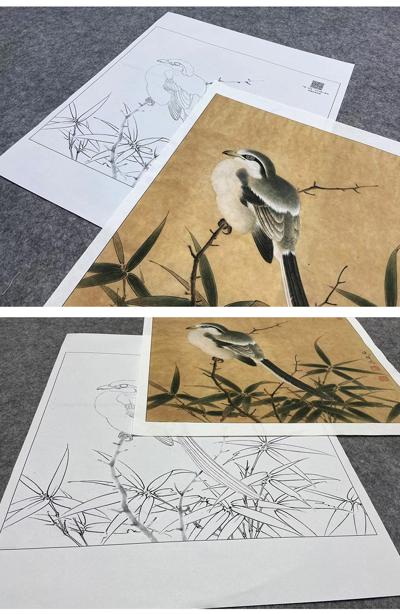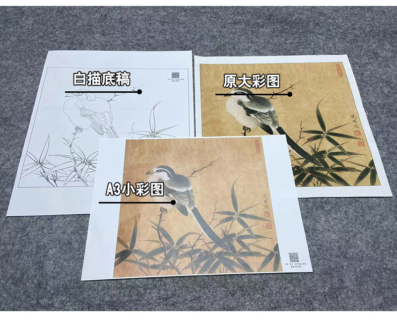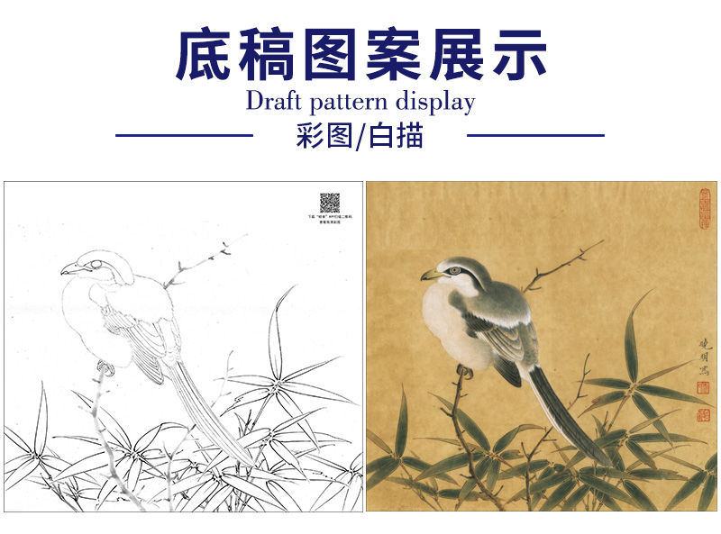 【大彩图】李晓明工笔画白描底稿小品《临宋竹鸠图》临摹勾线花鸟线稿K060