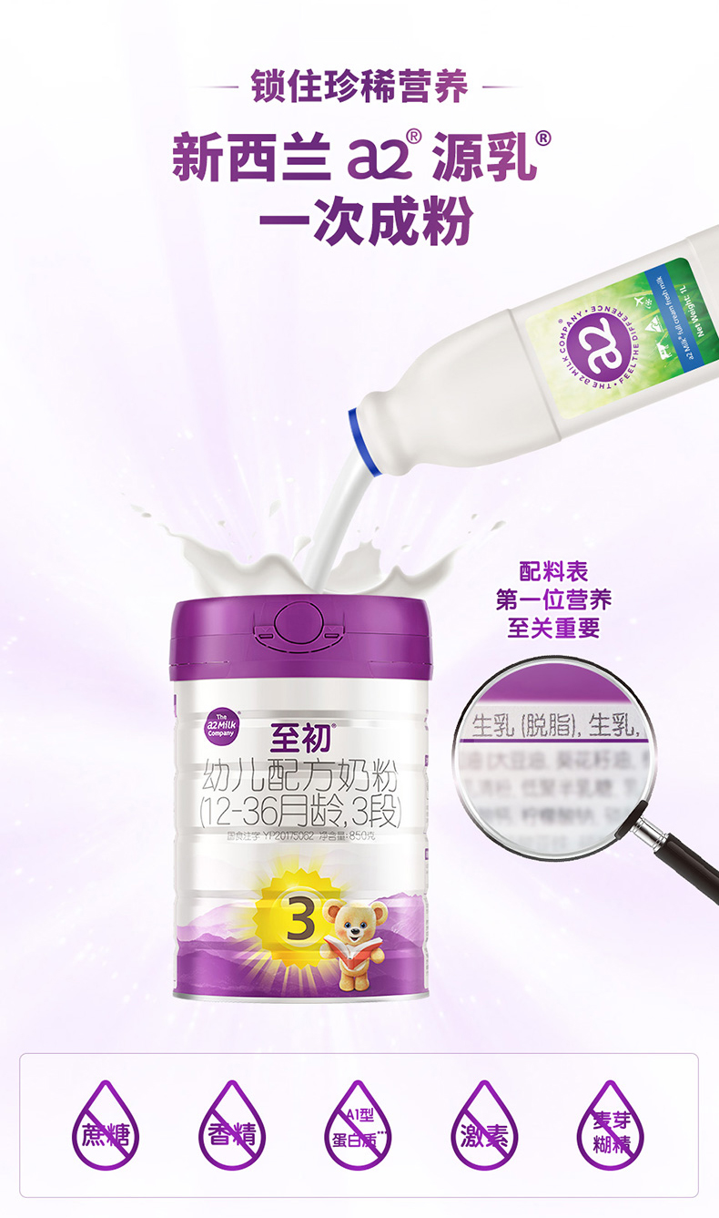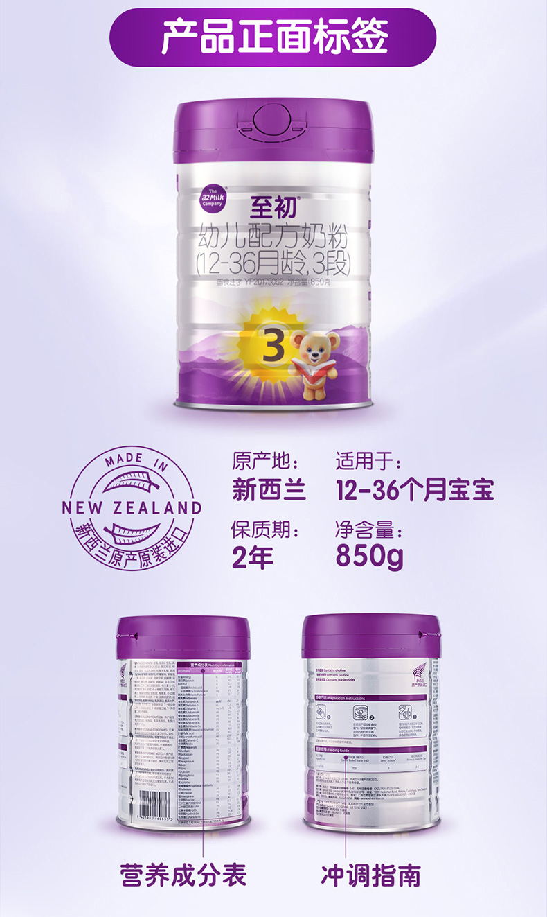 a2至初3段幼儿配方进口奶粉(12-36月龄)大罐850g 新西兰原产原装进口【孕味专属】