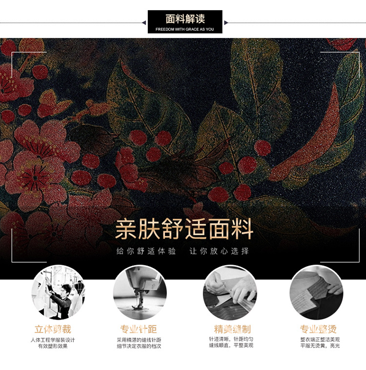ZA梨花落 新款复古改良中式丝绸长款旗袍