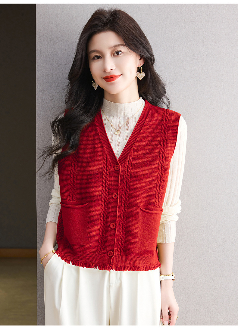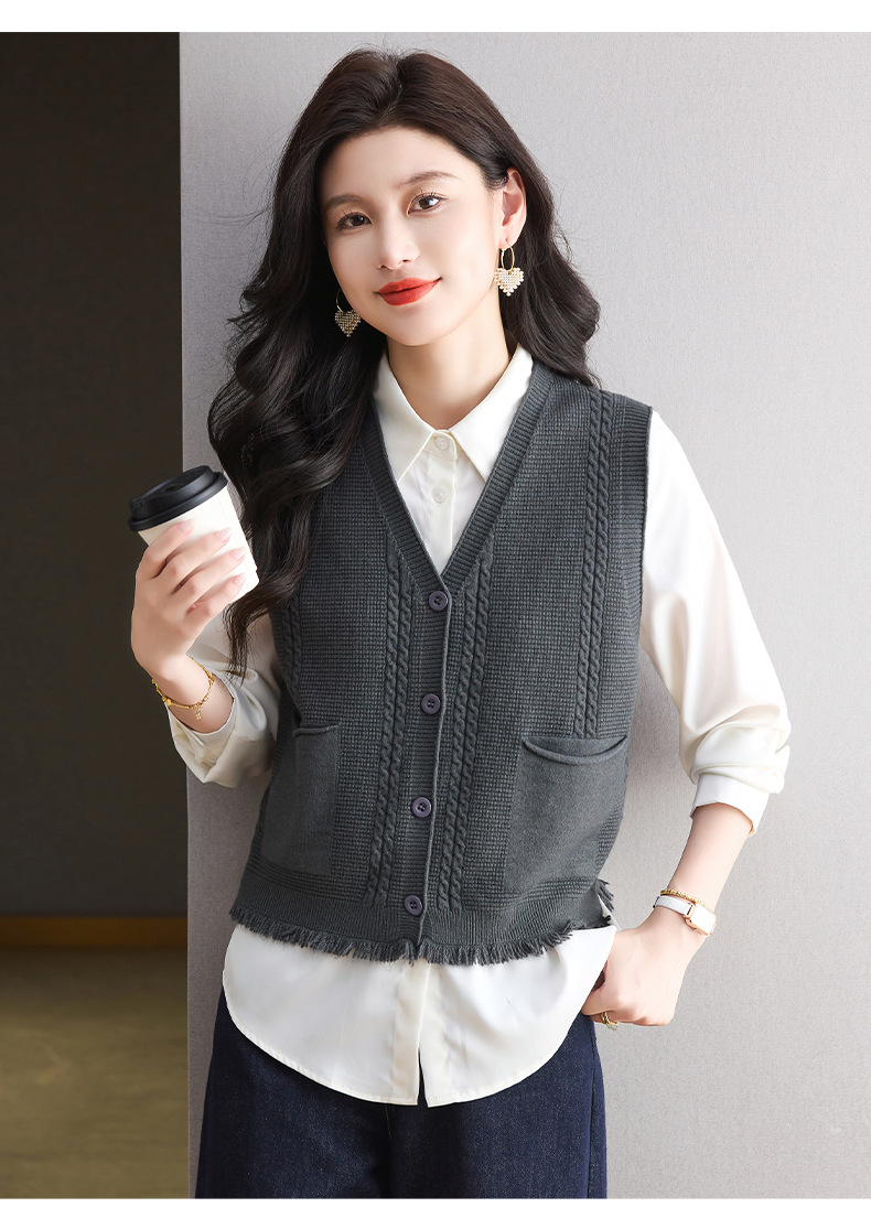 CC针织马甲女2025秋季新款时尚背心小坎肩宽松外穿气质文艺开衫上衣