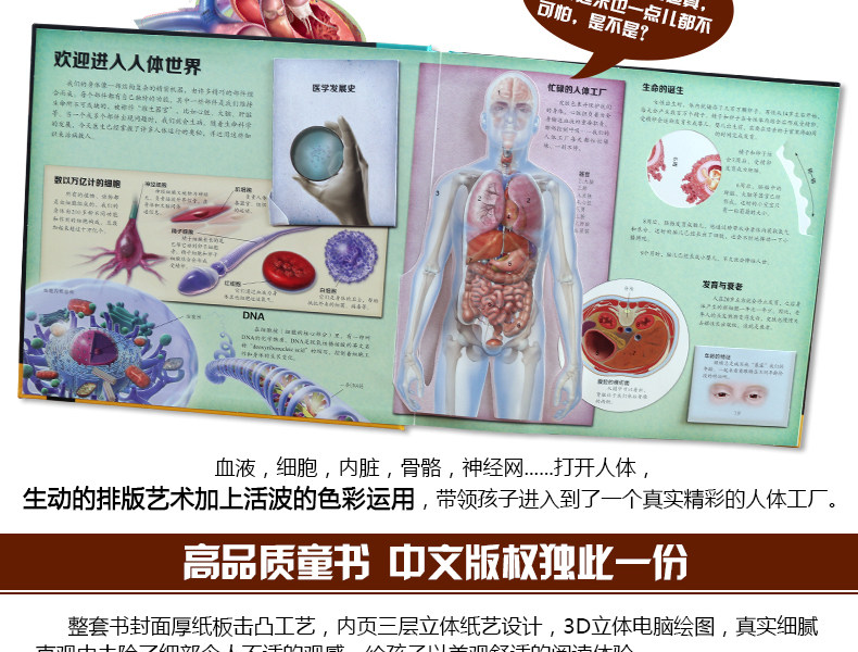 大揭秘 最酷3D儿童立体百科《人体的奥秘》,带你了解我们的身体。丰富有趣的互动设计,带你从外到内,从宏观到微观认识人体的构造、器官的功能,感官的工作原理……揭开生命的奥秘。