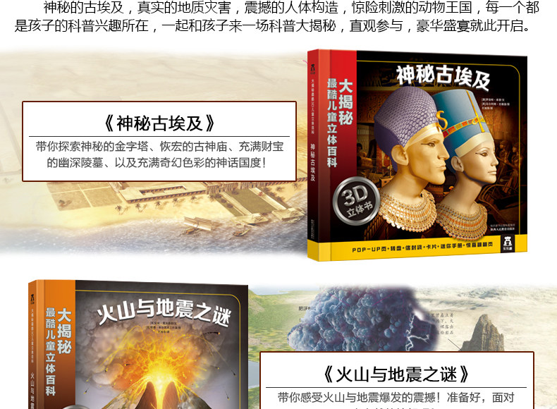 大揭秘 最酷3D儿童立体百科《火山与地震之谜》,带你认识火山和地震背后的奥秘。丰富有趣的互动设计,带你感受火山与地震爆发的震撼!准备好,面对大自然的愤怒吧!