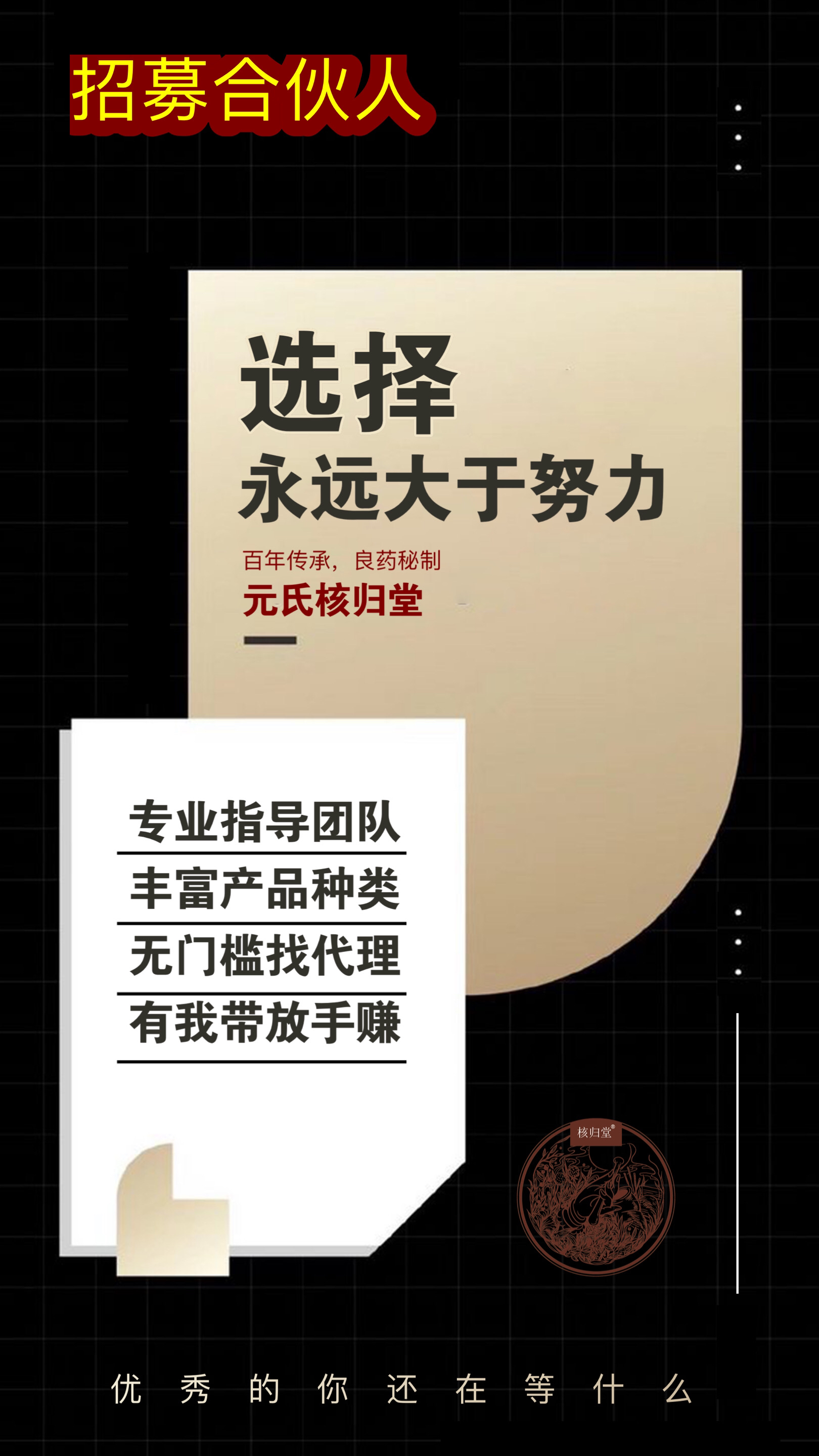 ①给与代理足够大的平台和空间去展示自己的才华,在这里每位伙伴都是平等的!