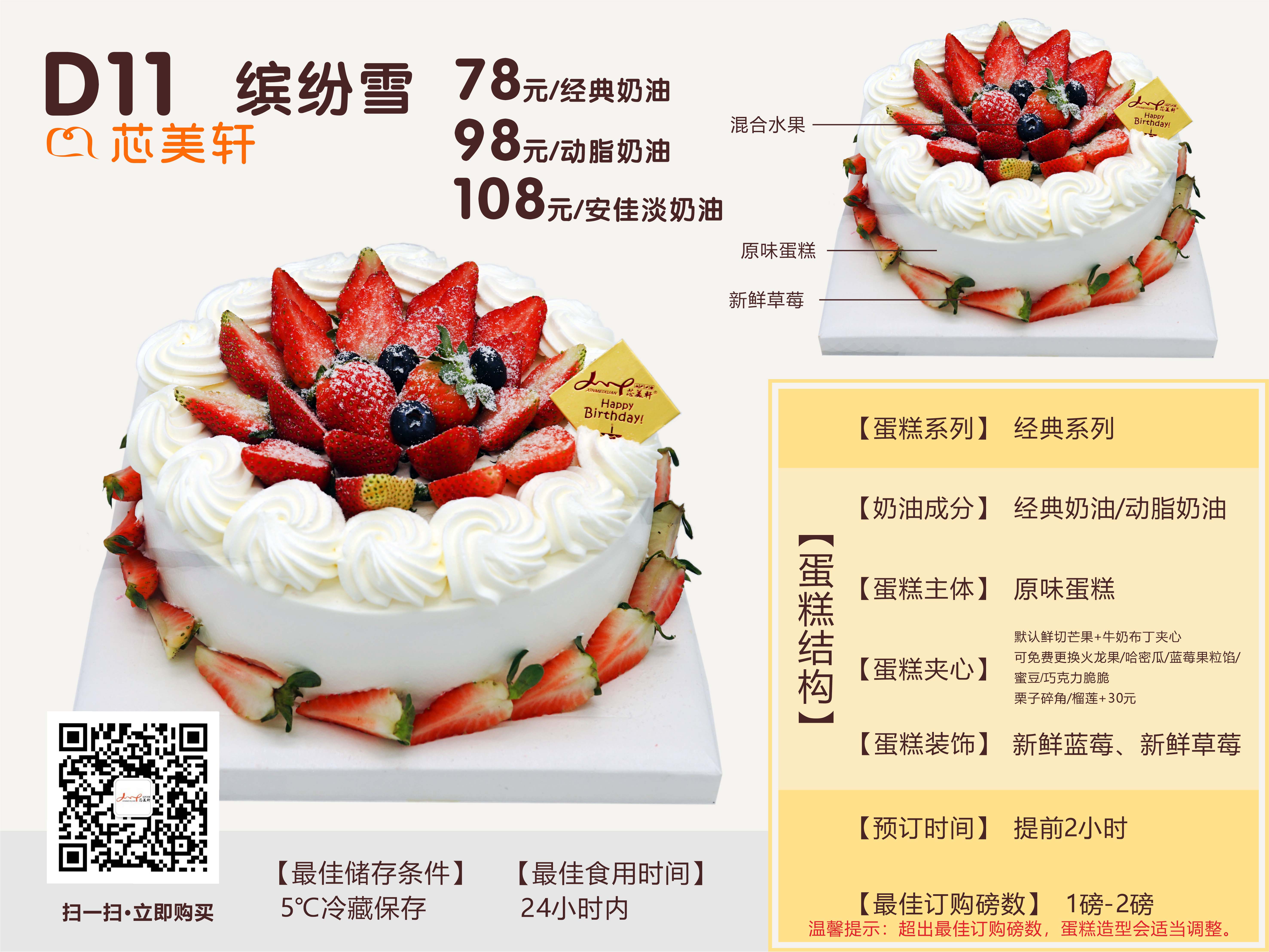 5寸网红多巴胺精美颜值鲜果100%动物奶油蛋糕(4选1)