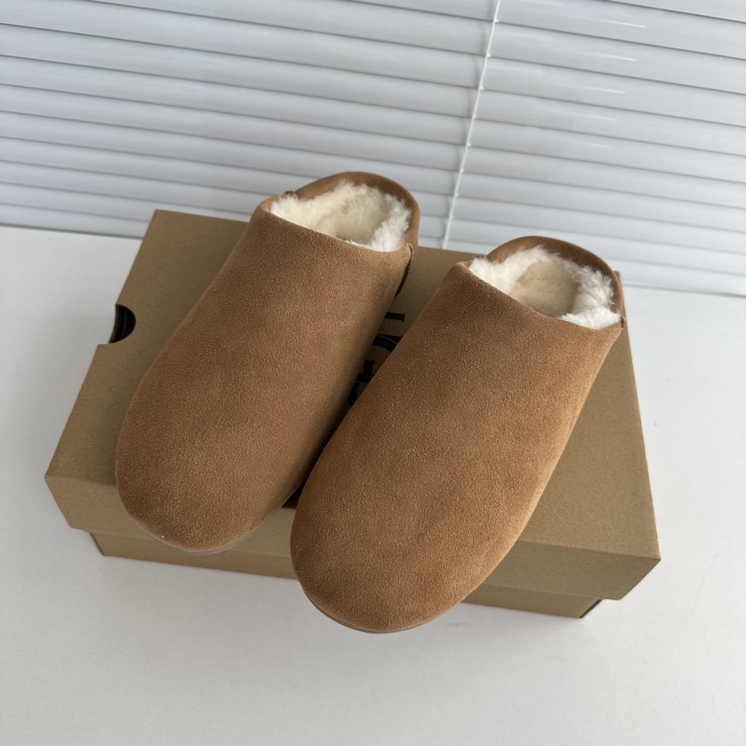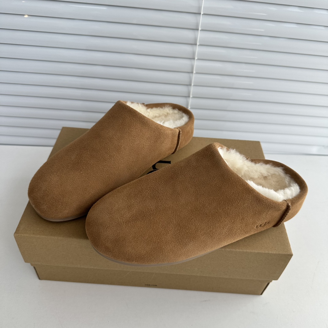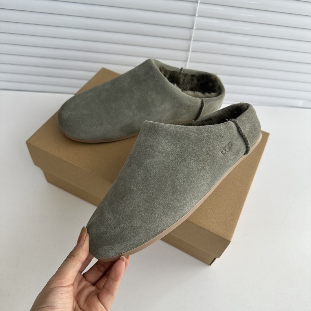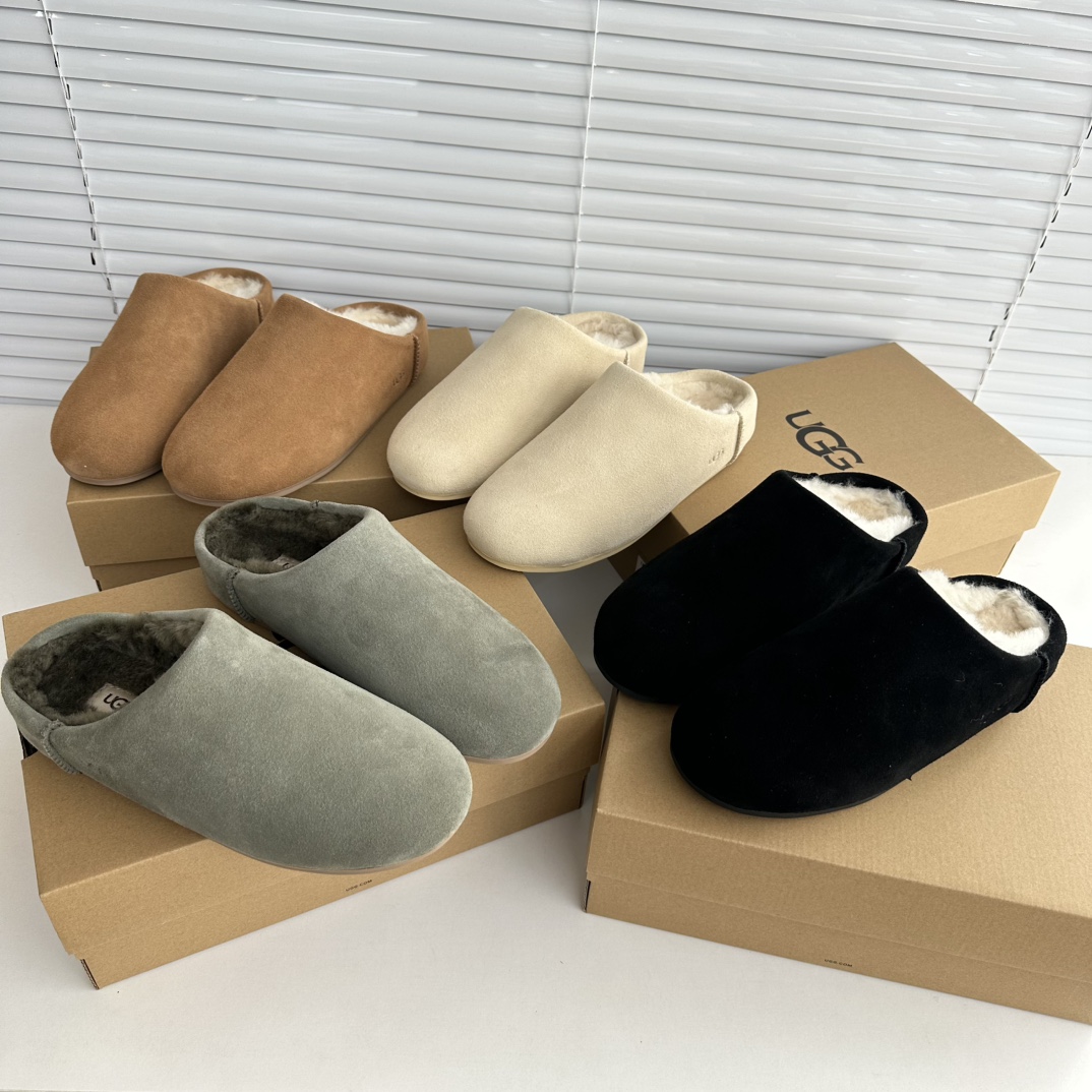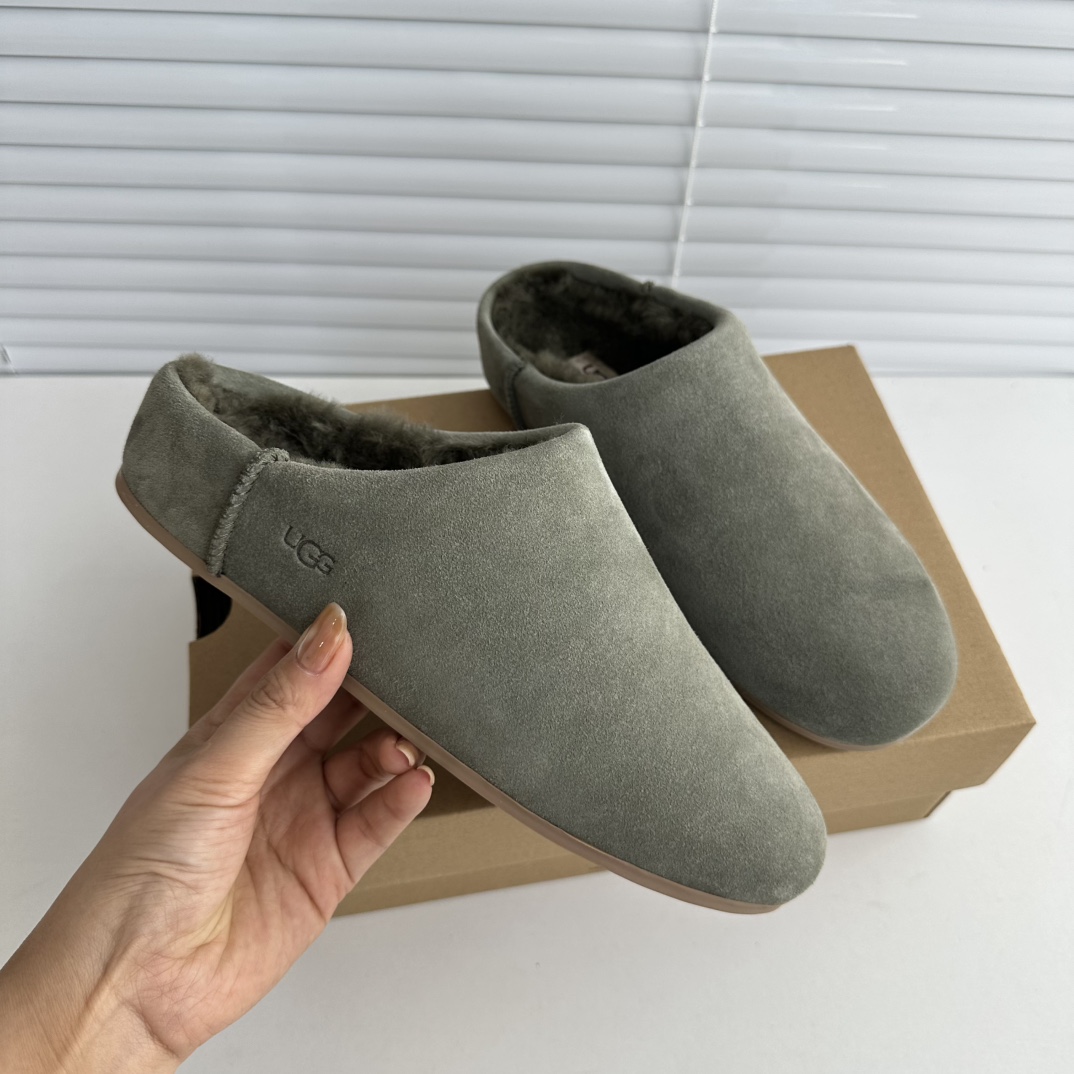 UGG 新款半拖刚到仓就被抢爆!美式复古鞋型自带滤镜,厚实牛翻毛鞋面摸上去全是质感,后跟热压花 logo 低调又显贵 内里踮脚是品牌专用隆丰羊皮毛一体!跟经典款同源的材质,软乎乎贴脚还能自然吸湿,早秋微凉天光脚穿都暖烘烘