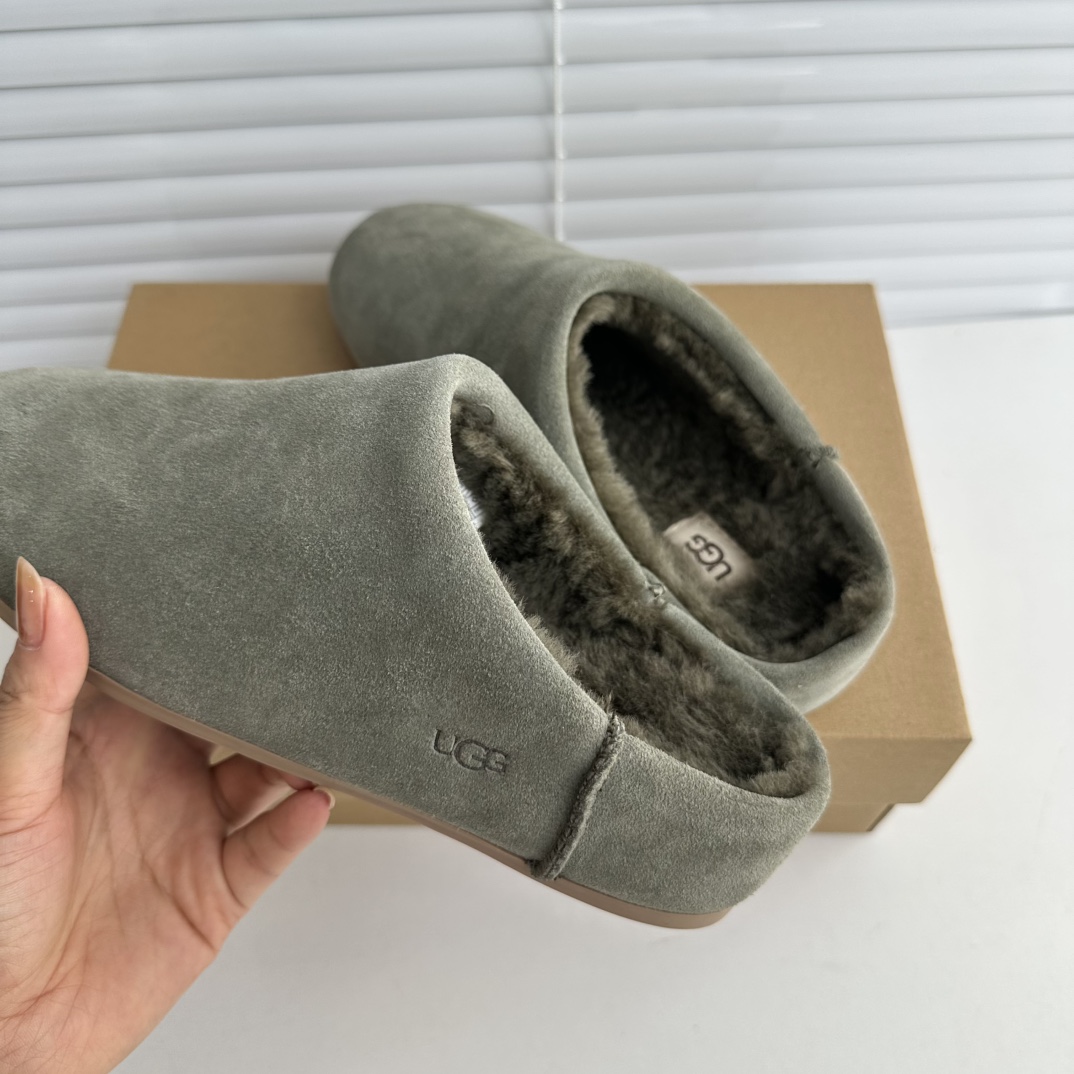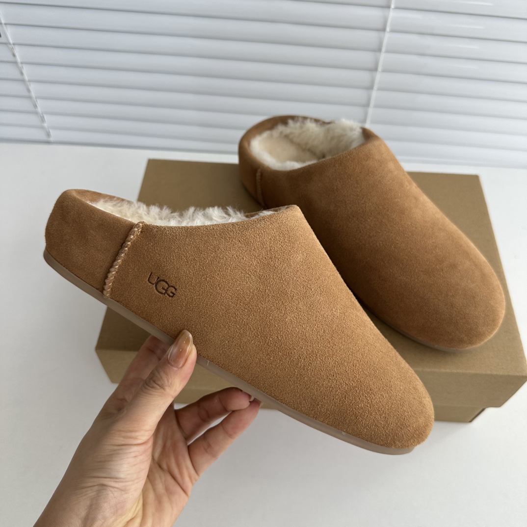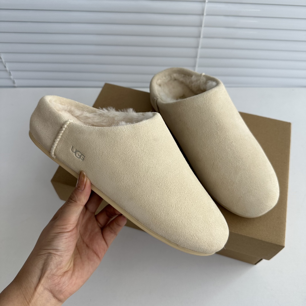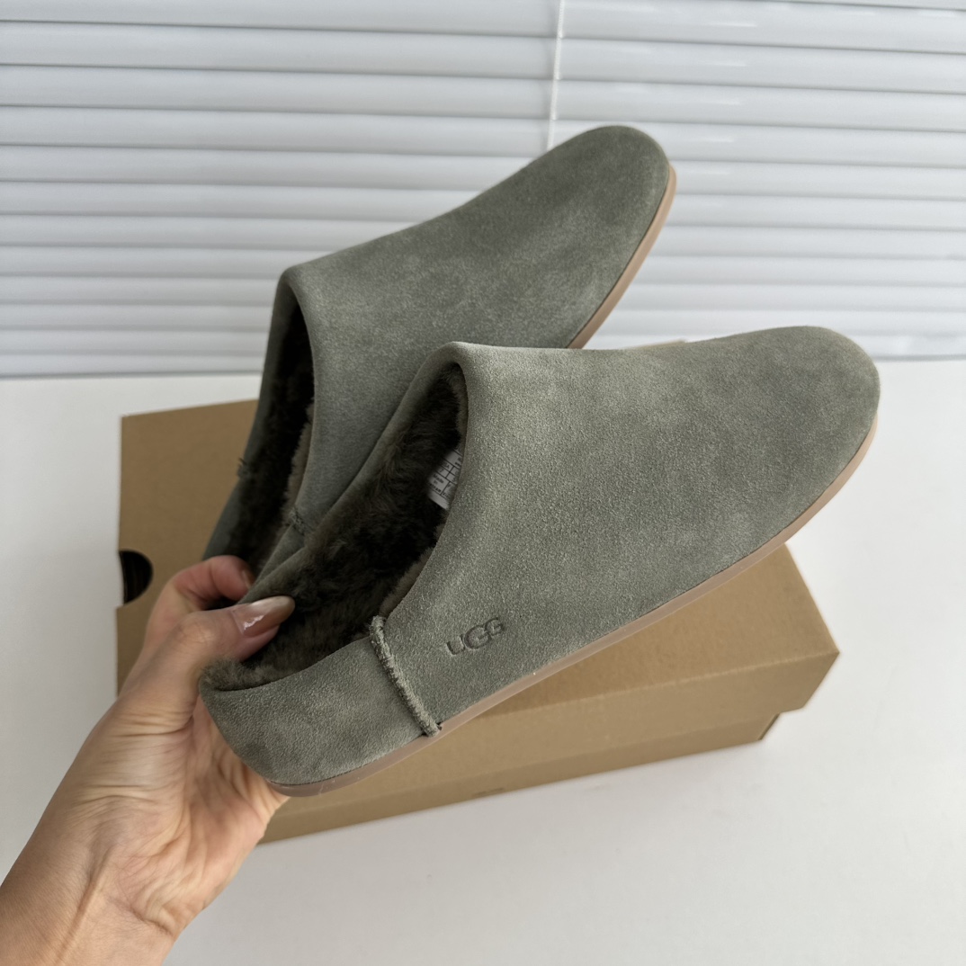 UGG 新款半拖刚到仓就被抢爆!美式复古鞋型自带滤镜,厚实牛翻毛鞋面摸上去全是质感,后跟热压花 logo 低调又显贵 内里踮脚是品牌专用隆丰羊皮毛一体!跟经典款同源的材质,软乎乎贴脚还能自然吸湿,早秋微凉天光脚穿都暖烘烘