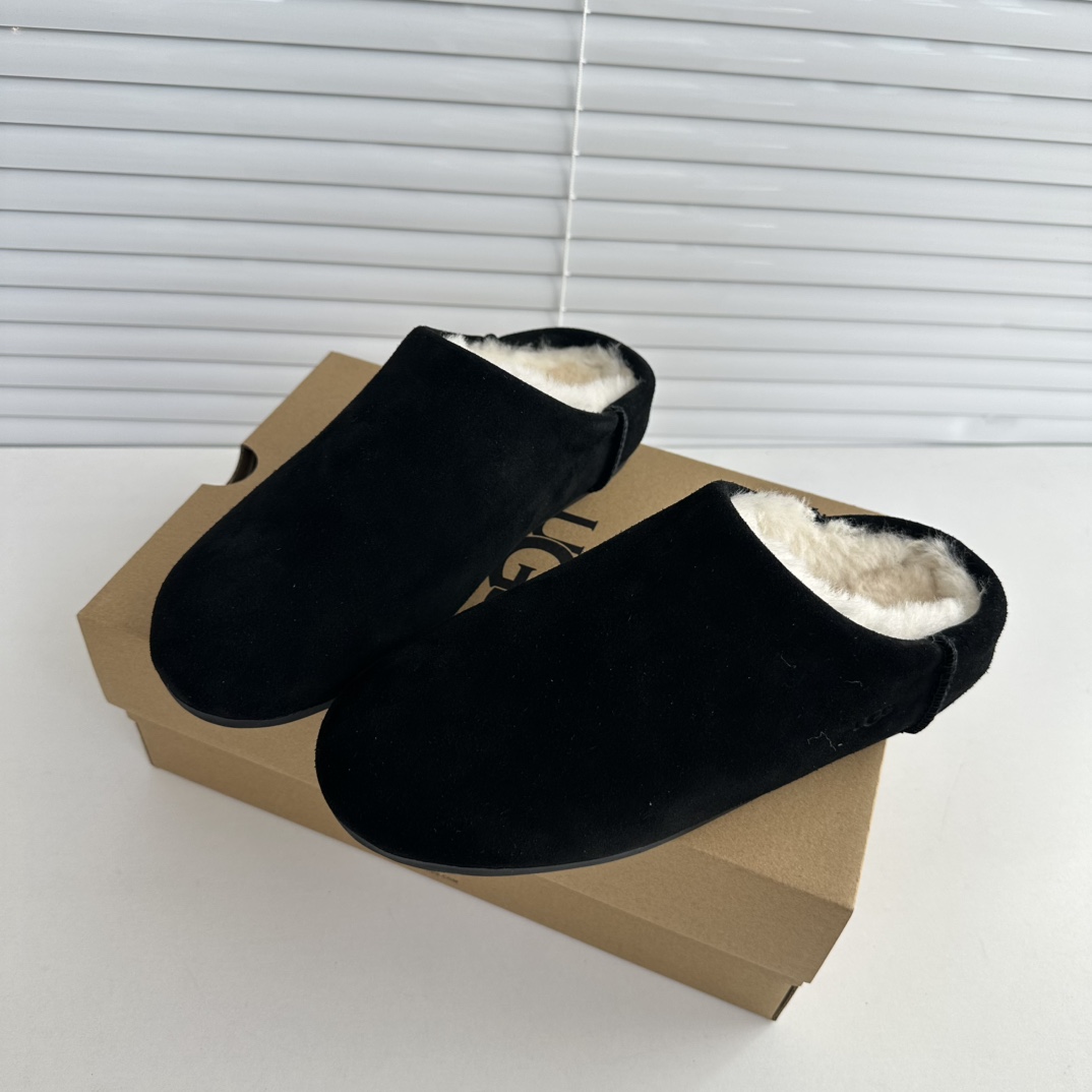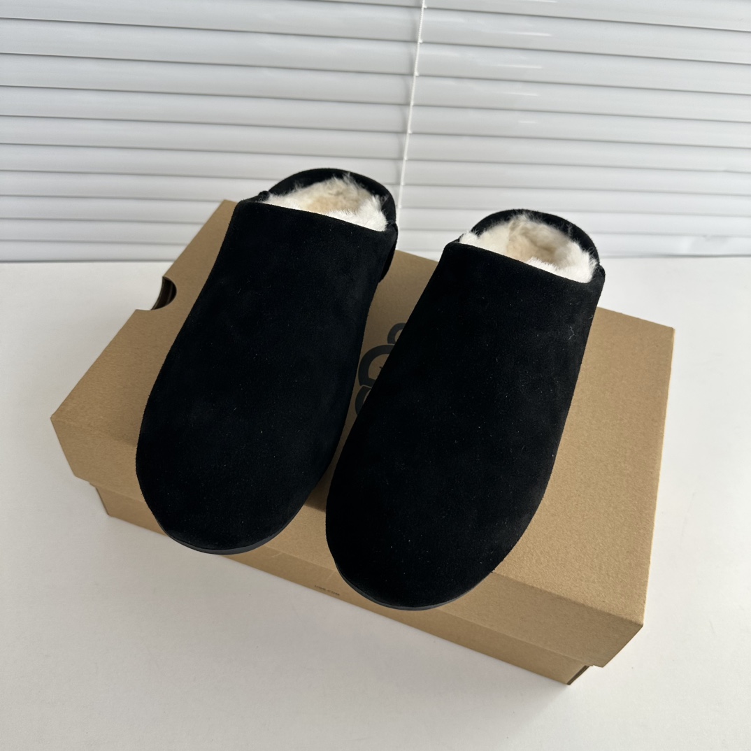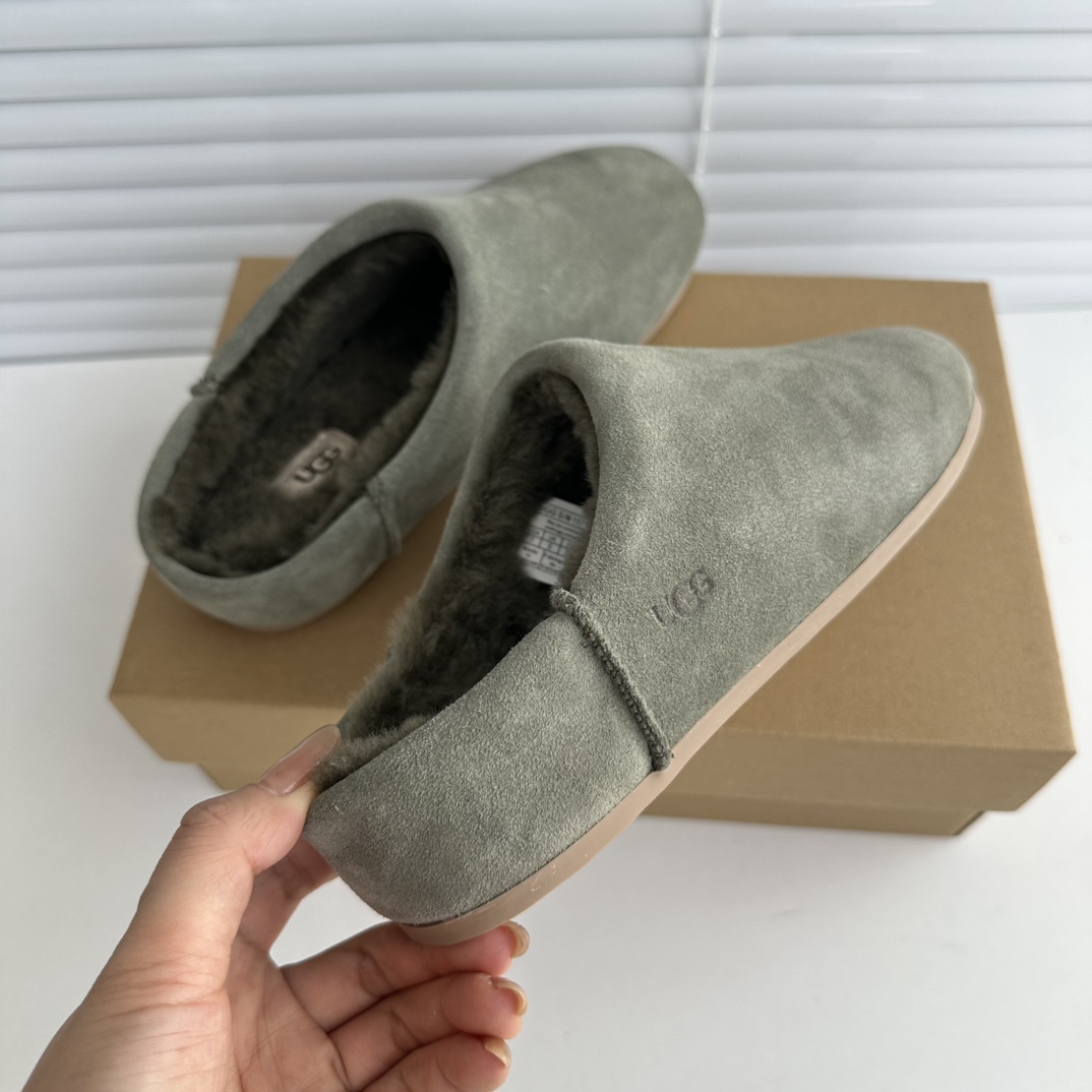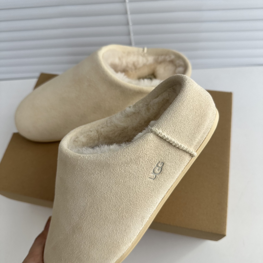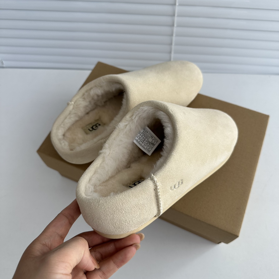 UGG 新款半拖刚到仓就被抢爆!美式复古鞋型自带滤镜,厚实牛翻毛鞋面摸上去全是质感,后跟热压花 logo 低调又显贵 内里踮脚是品牌专用隆丰羊皮毛一体!跟经典款同源的材质,软乎乎贴脚还能自然吸湿,早秋微凉天光脚穿都暖烘烘