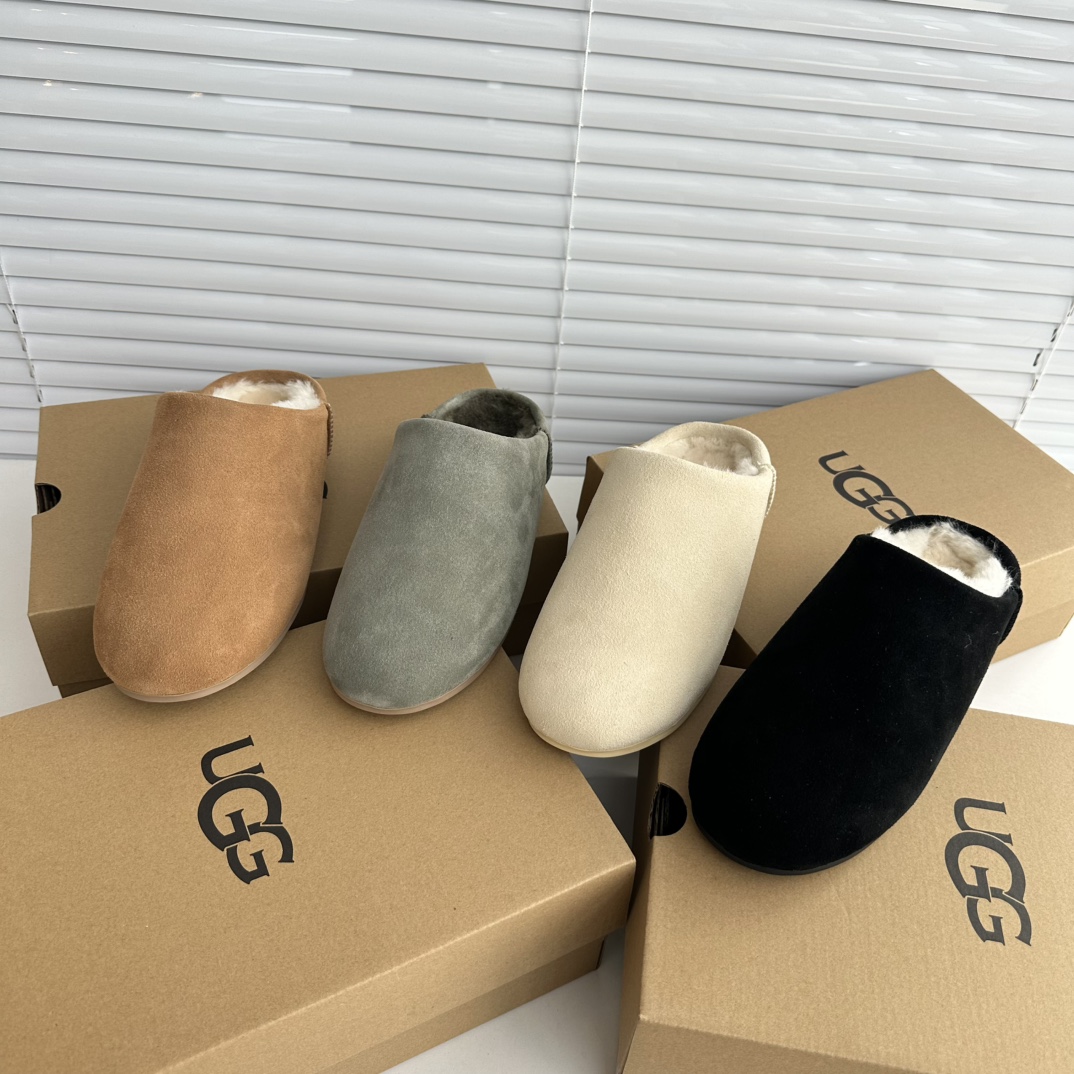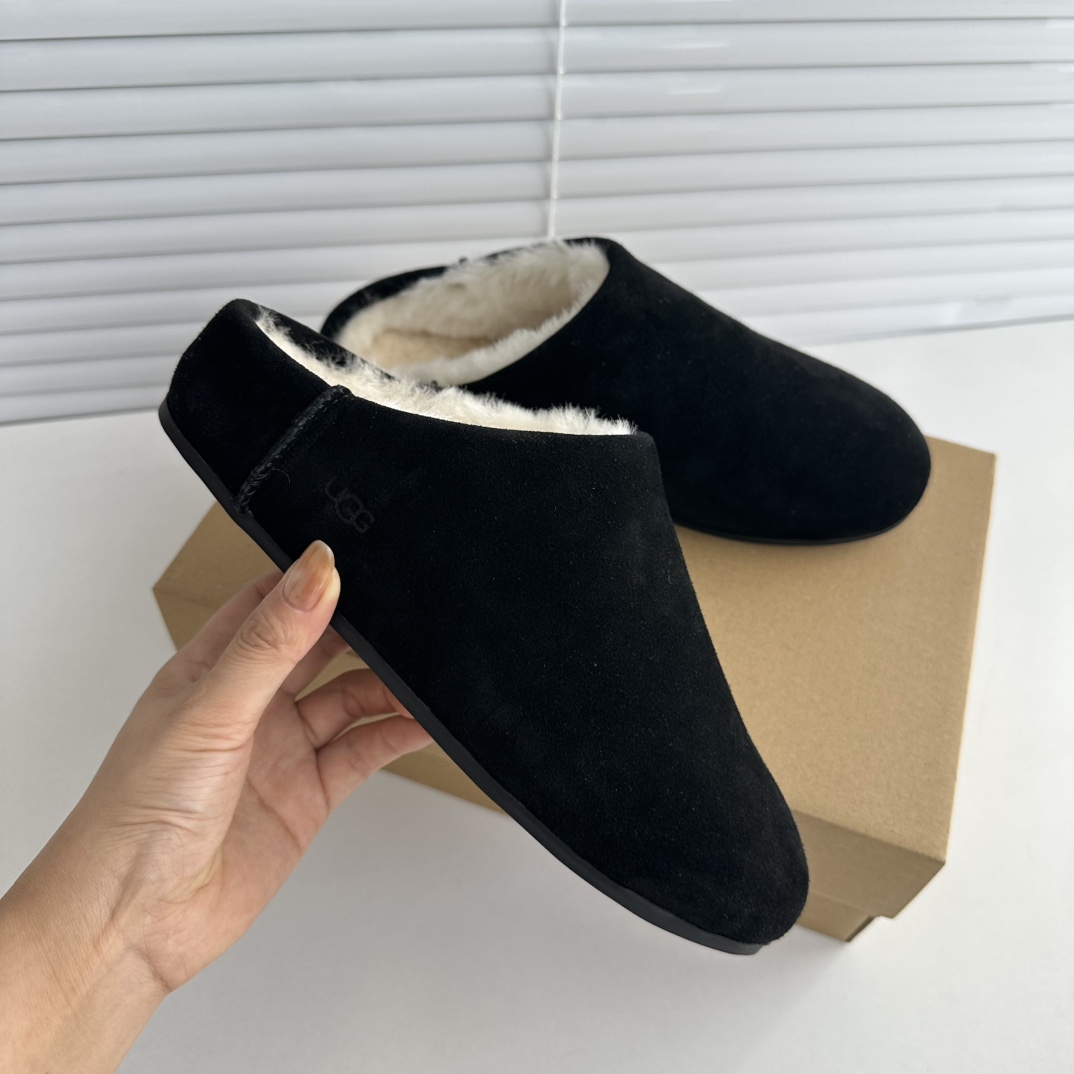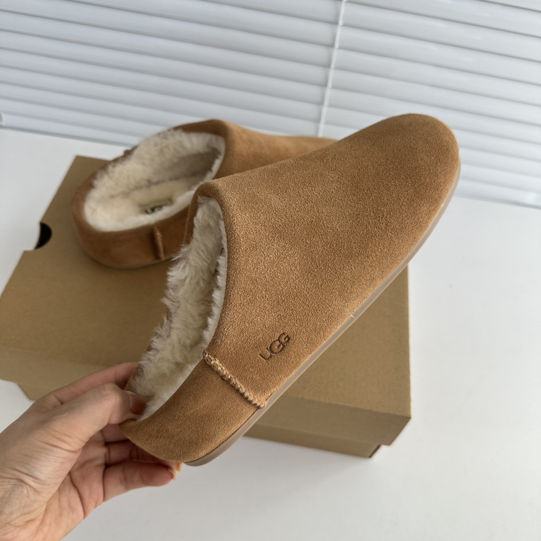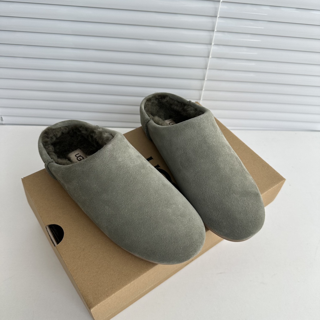 UGG 新款半拖刚到仓就被抢爆!美式复古鞋型自带滤镜,厚实牛翻毛鞋面摸上去全是质感,后跟热压花 logo 低调又显贵 内里踮脚是品牌专用隆丰羊皮毛一体!跟经典款同源的材质,软乎乎贴脚还能自然吸湿,早秋微凉天光脚穿都暖烘烘